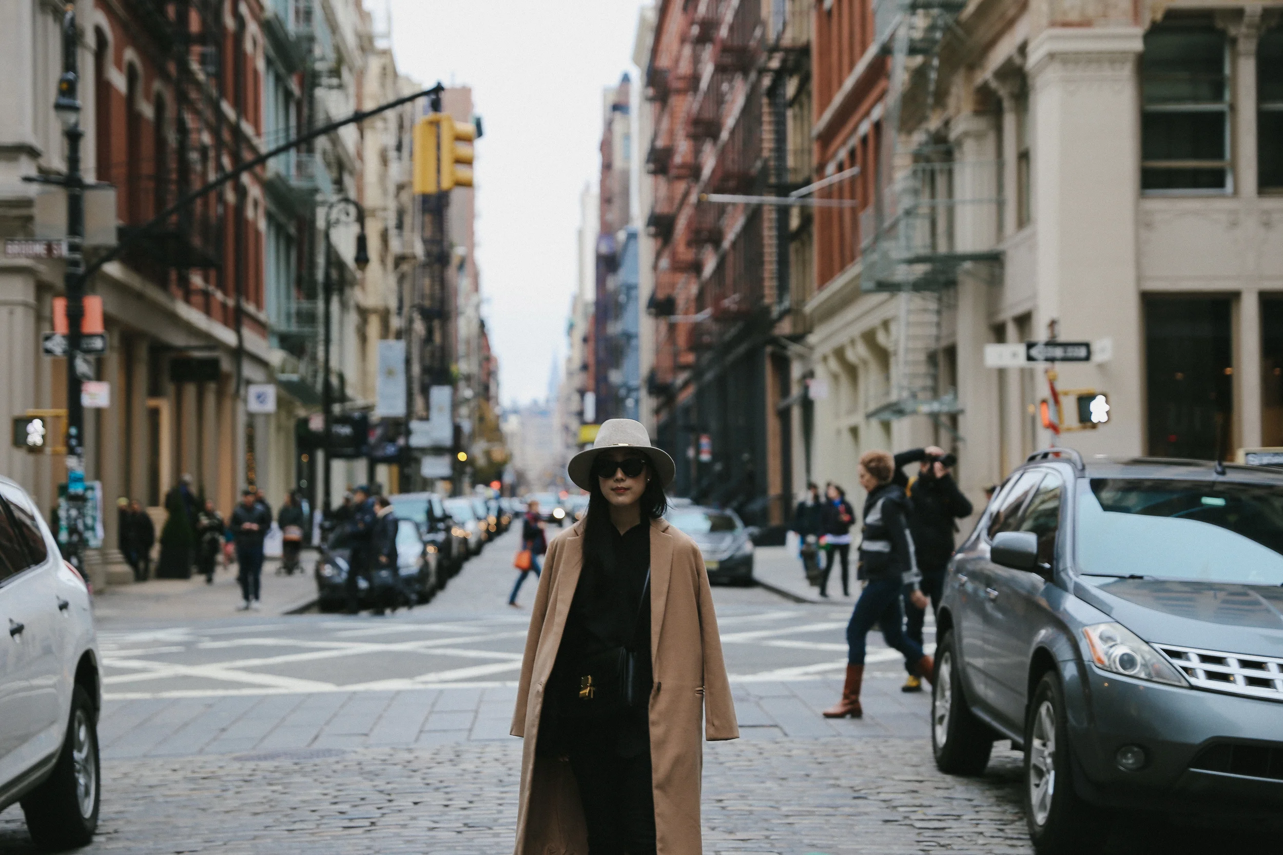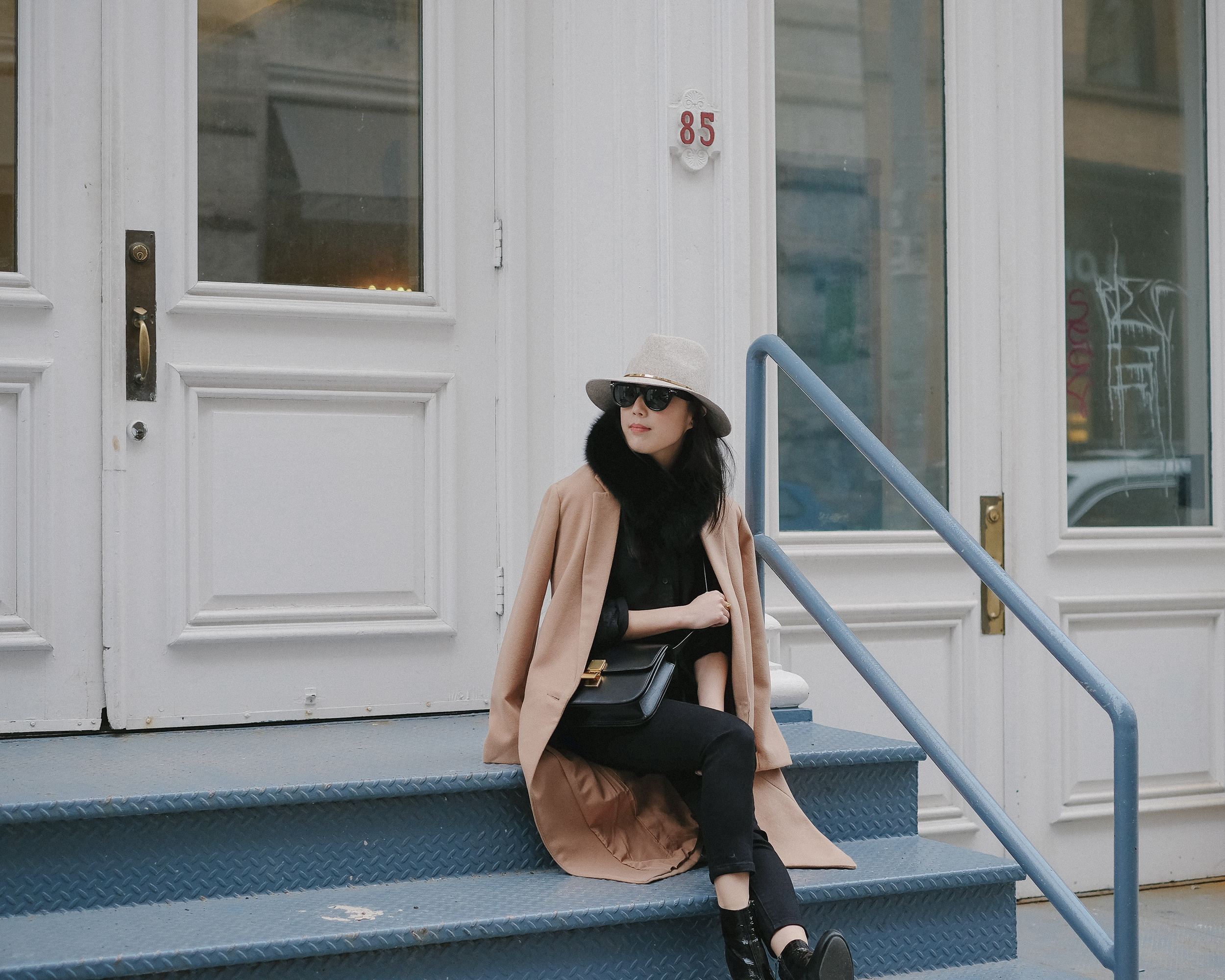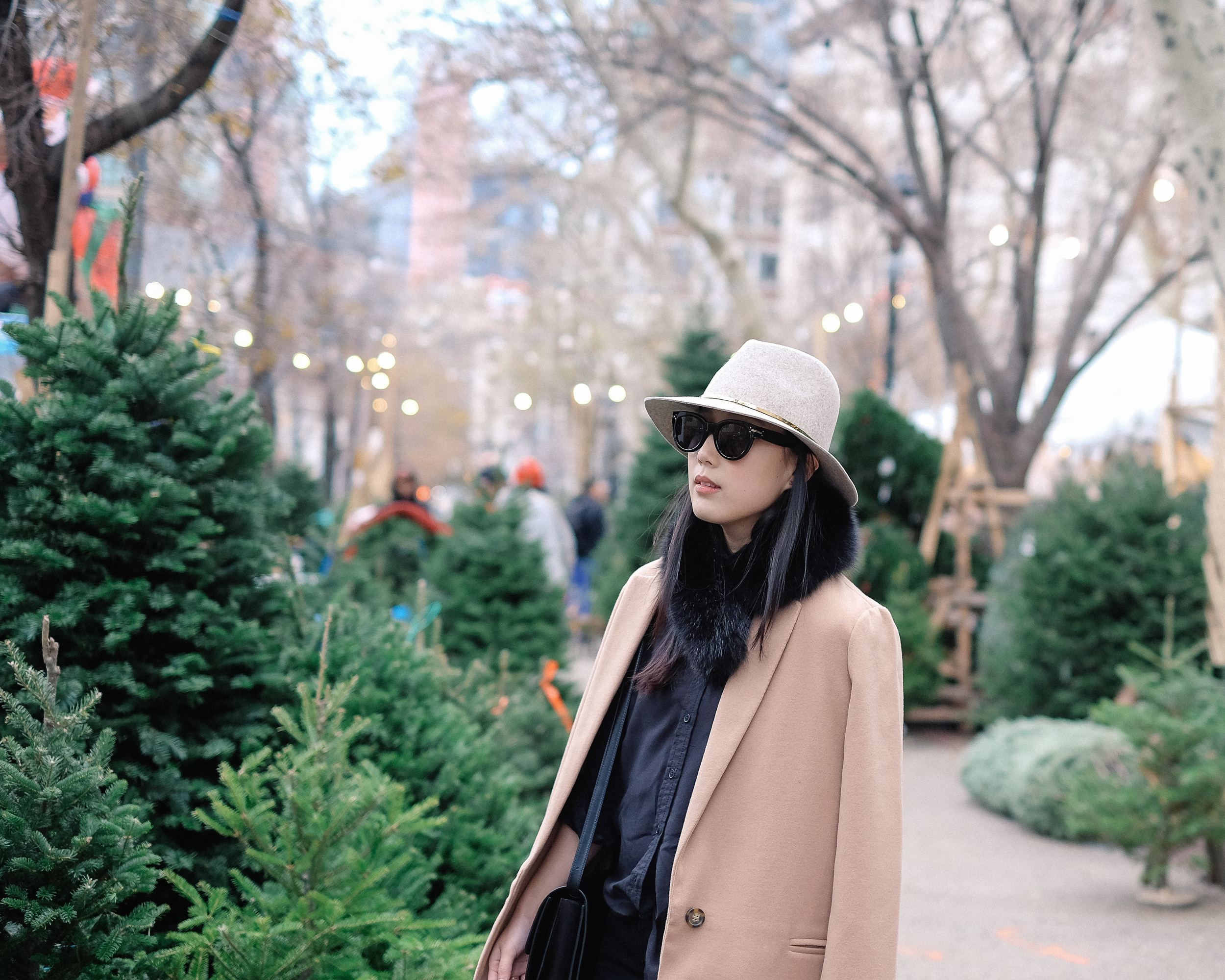 Warming up all these cold overcast days by Christmas tree shopping in SoHo with a soft woolen taupe overcoat. It's nice to give my black counterparts a little breather.