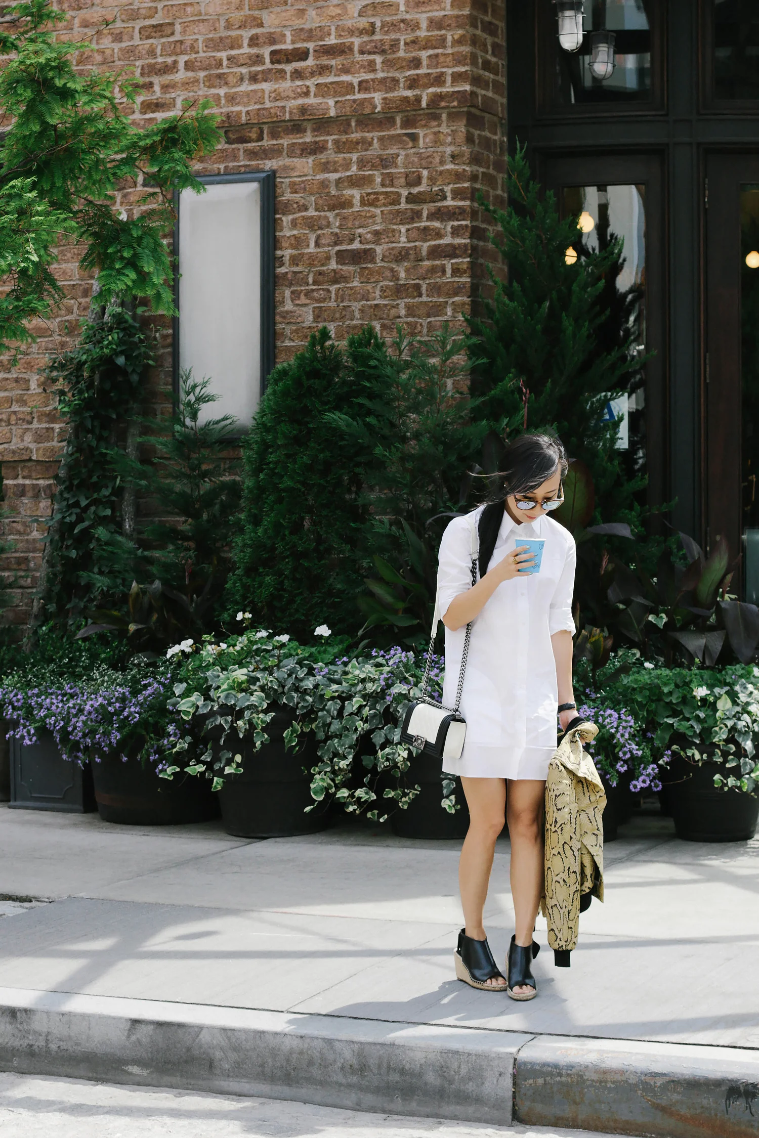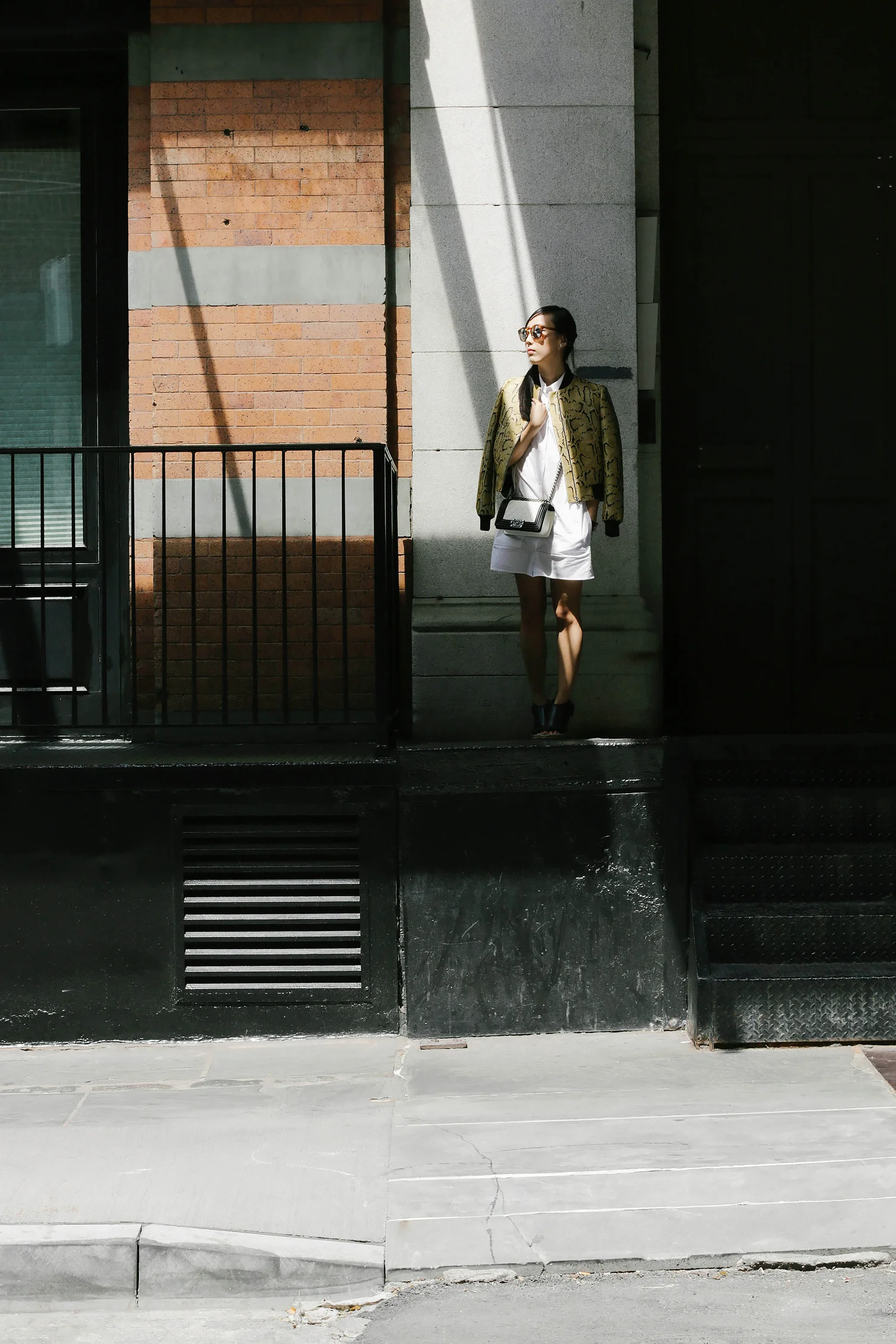 TriBeCa has such beautiful streets and alleyways, and we couldn't help but shoot a few pictures after a meal at one of my favorite restaurants, Locanda Verde. All the structures of the buildings in this neighborhood cast such delightful light. Due to the slightly unusually cooler weather we've been having in Mid-August, I've been able to wear my long sleeve Acne Tunic Shirt (with the sleeves rolled up) and Stella jacket I've been craving to wear all summer long.