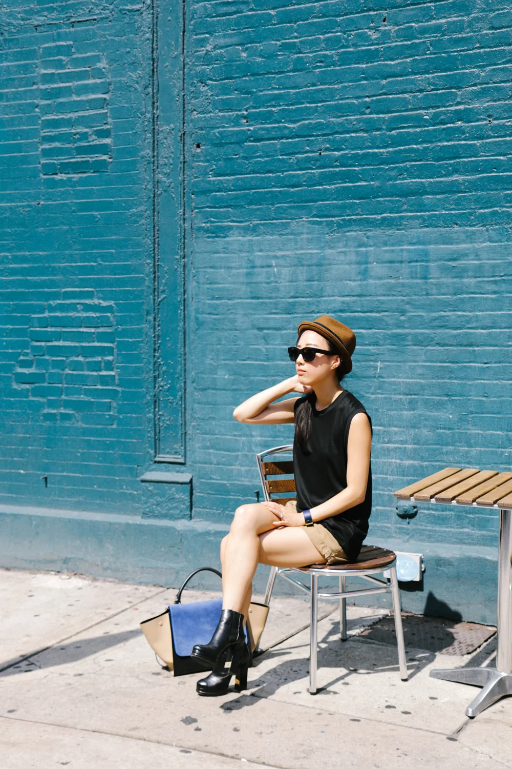Acne Studios Top, Topshop Shorts, Chanel Shoes, Céline Bag, Rag & Bone Hat (Similar), Hermes Bracelet, AVEC New York Ring