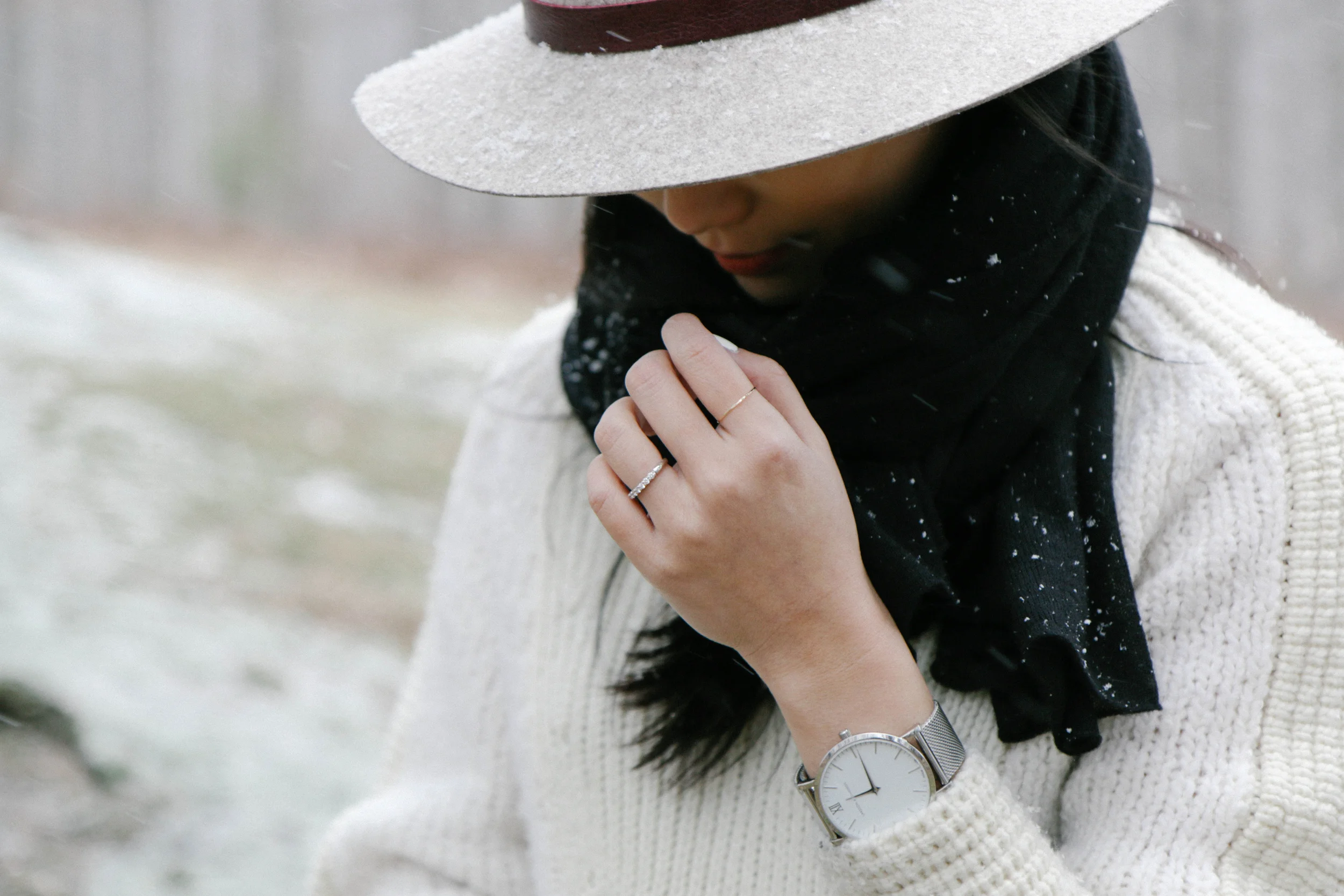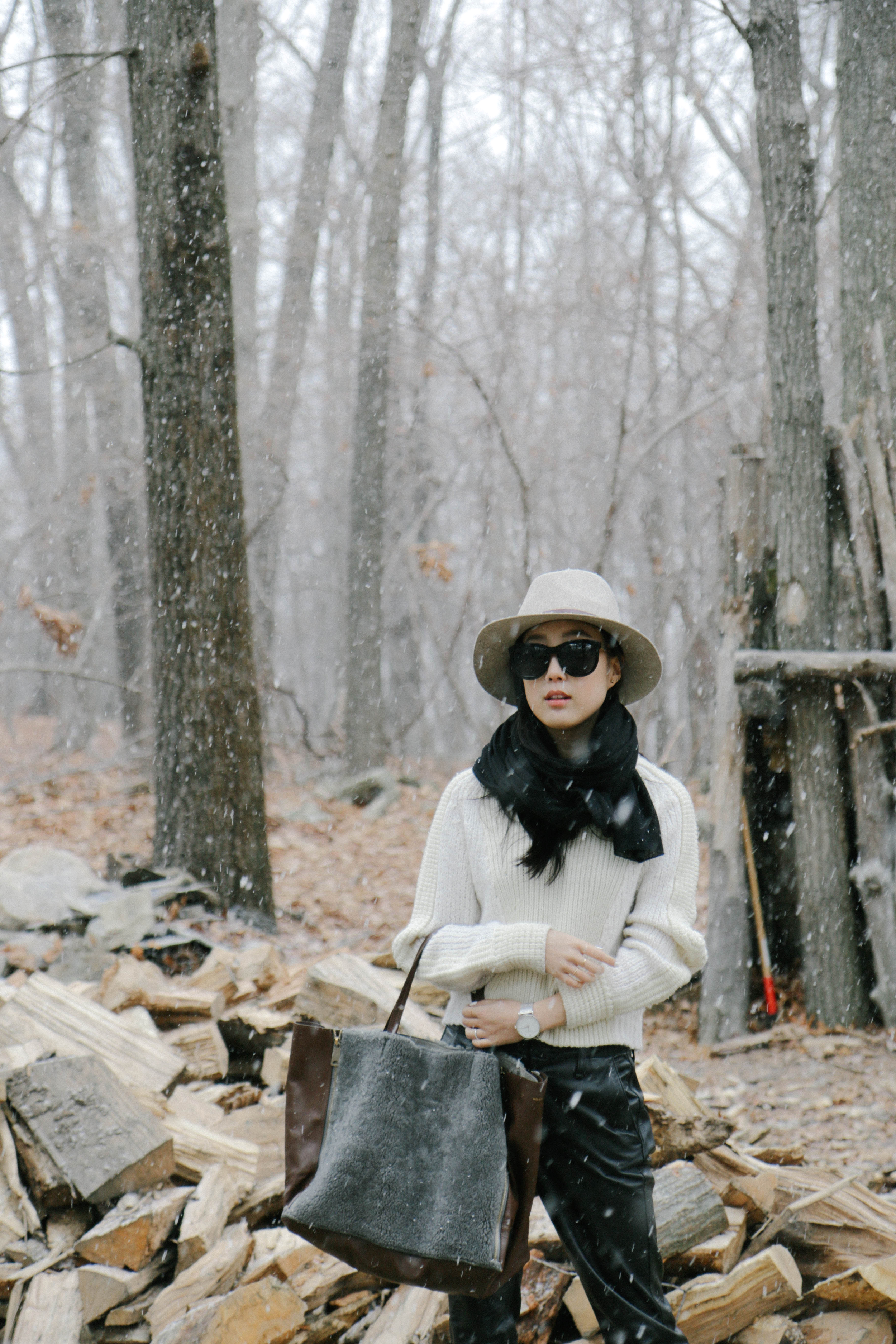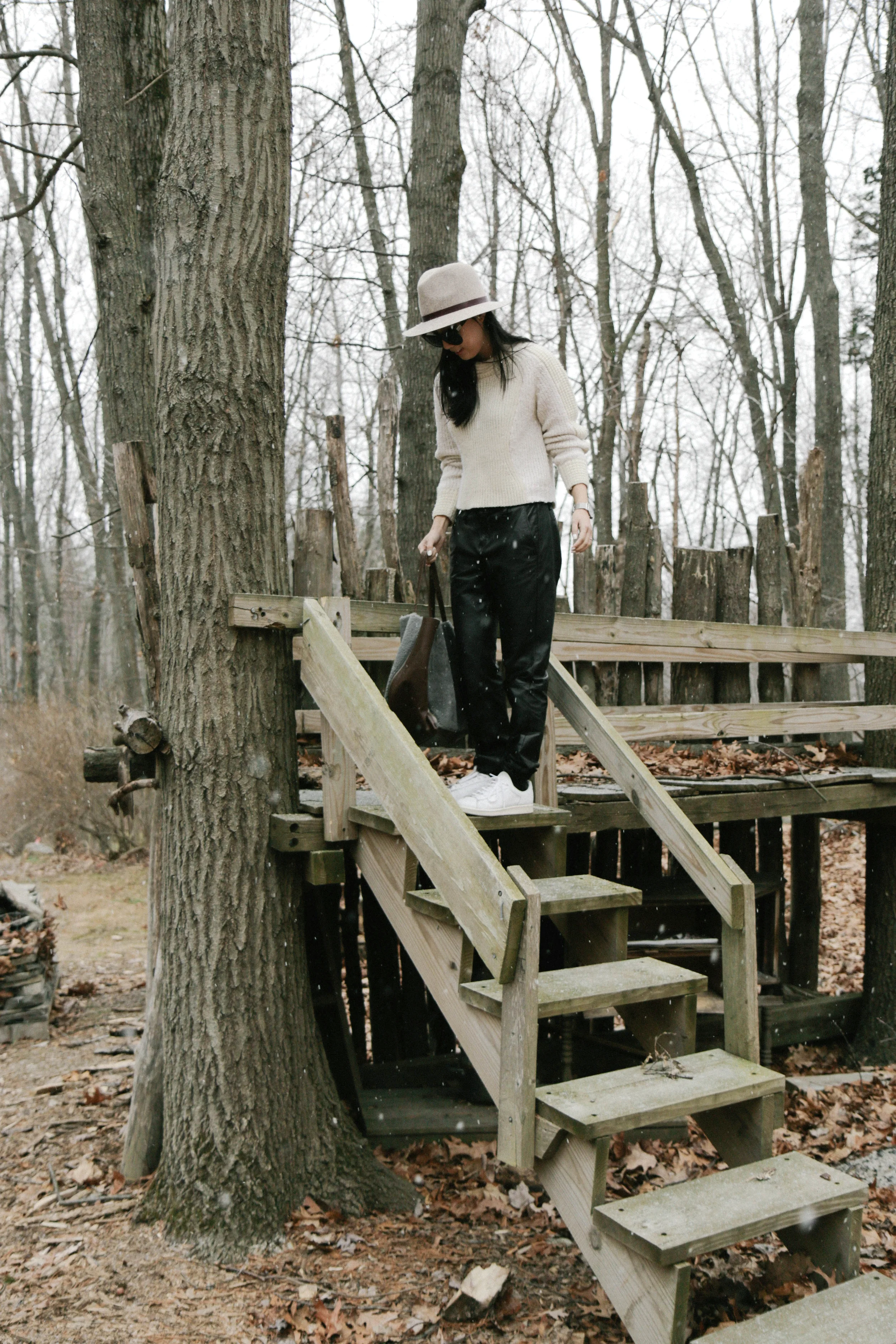 3.1 Phillip Lim Sweater, Rag & Bone Pants, Club Monaco Scarf, Adidas Sneakers, Céline Bag, Janessa Leone Hat, The Row Sunglasses, Larsson and Jennings Watch, Catbird Ring