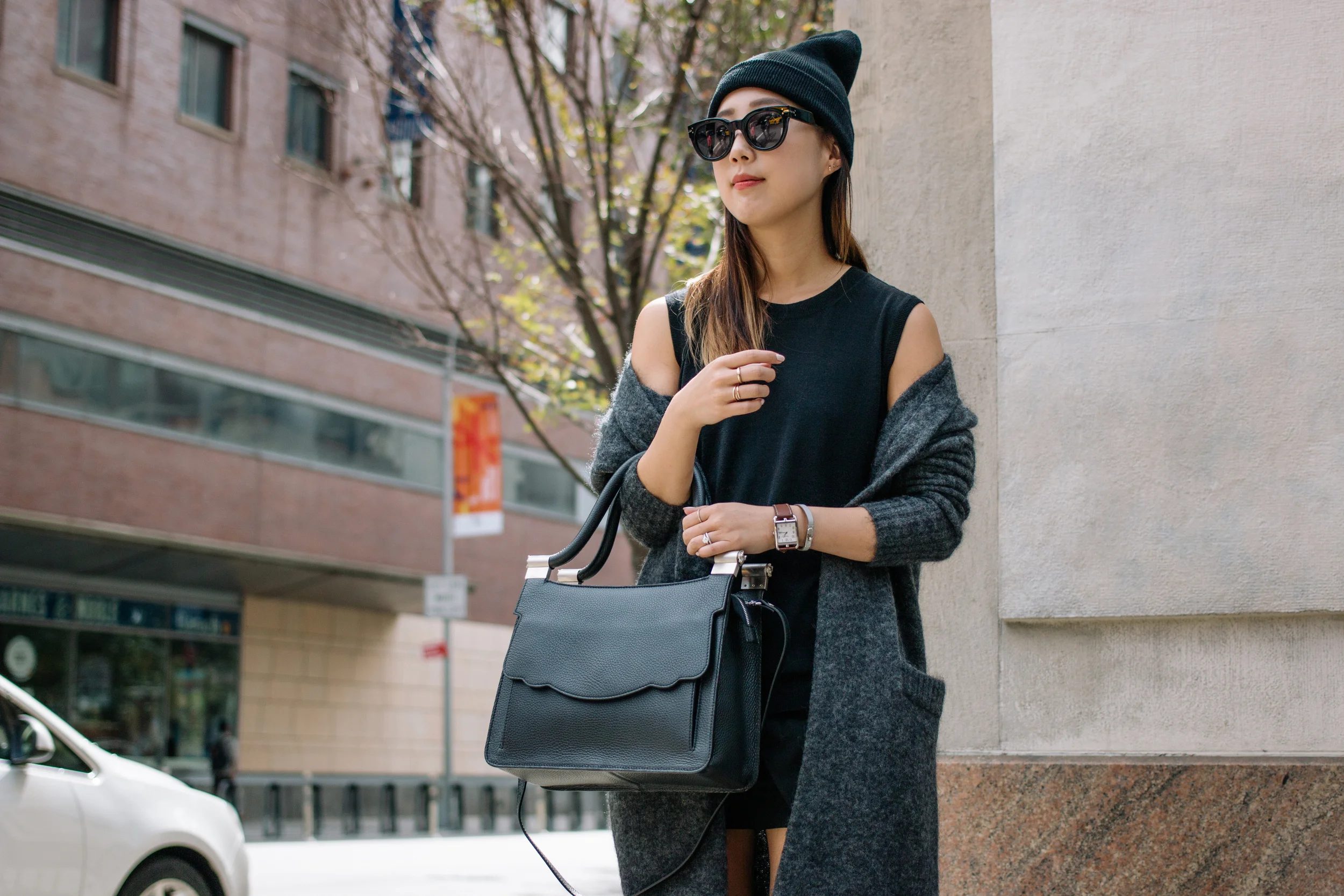 Acne Cardigan, Everlane Top, Isabel Marant Skirt and Boots, Thale Blanc Bag, Opening Ceremony Beanie, Céline Sunglasses, Hermes Watch, Euna Joyce Jewelry