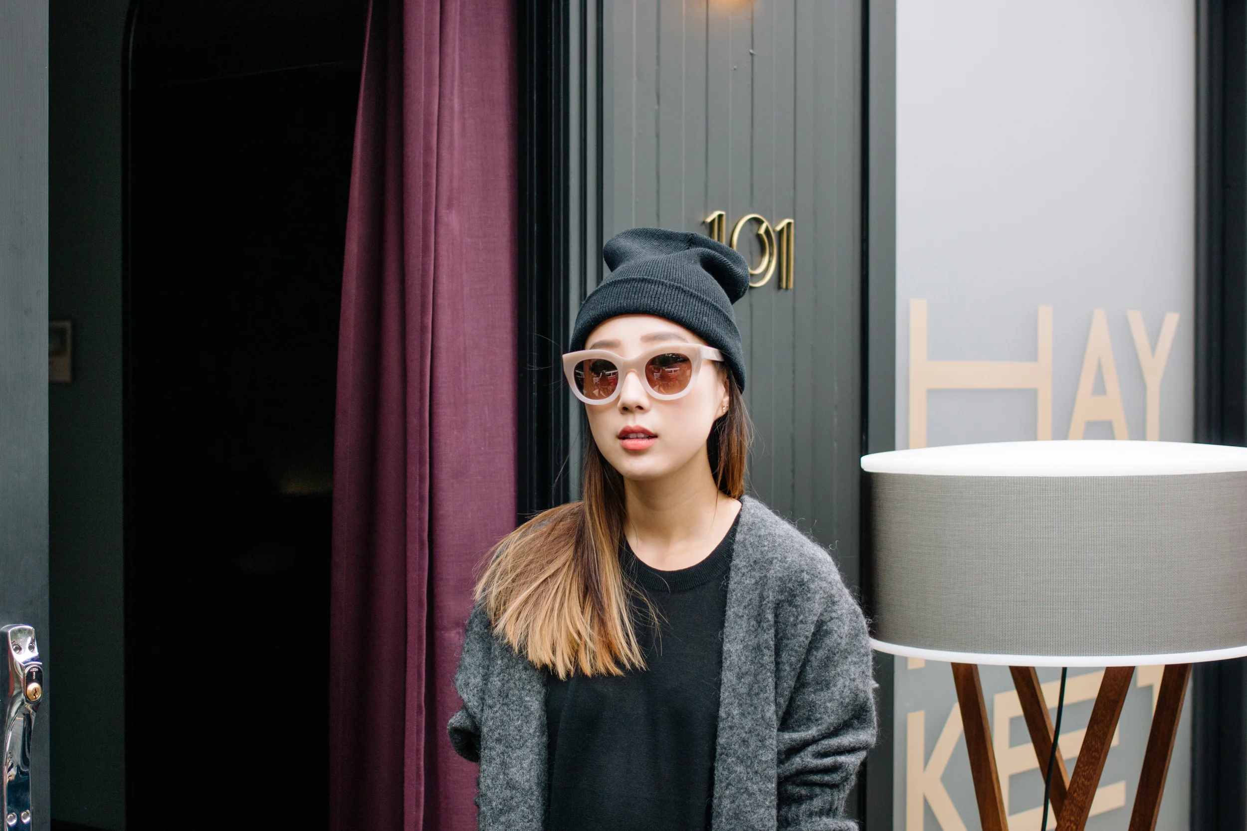 Acne Cardigan, Everlane Top, Isabel Marant Skirt, Senso Boots, Opening Ceremony Beanie
