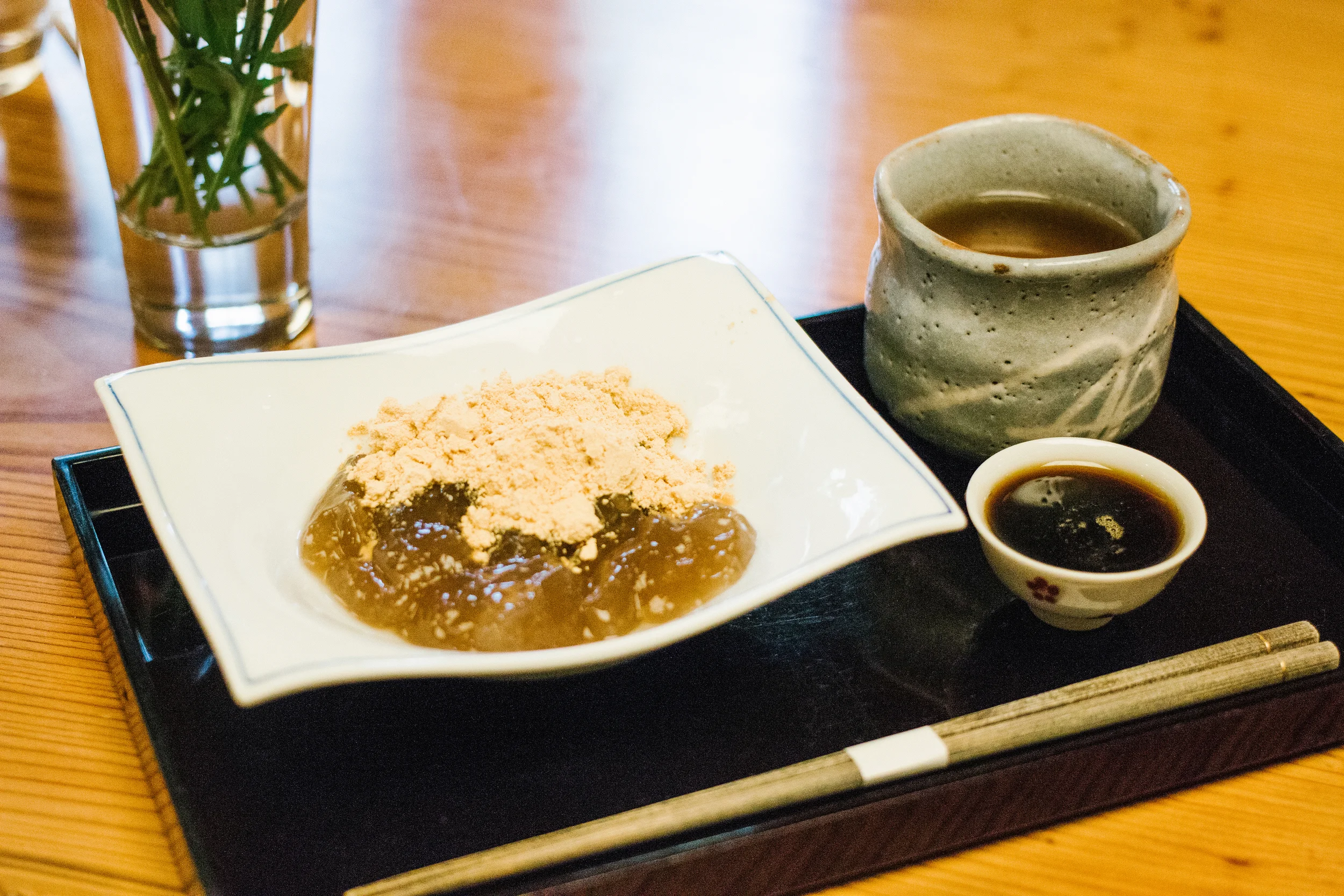 One of the best dessert shops つぼみ with a serene garden and pond in the back