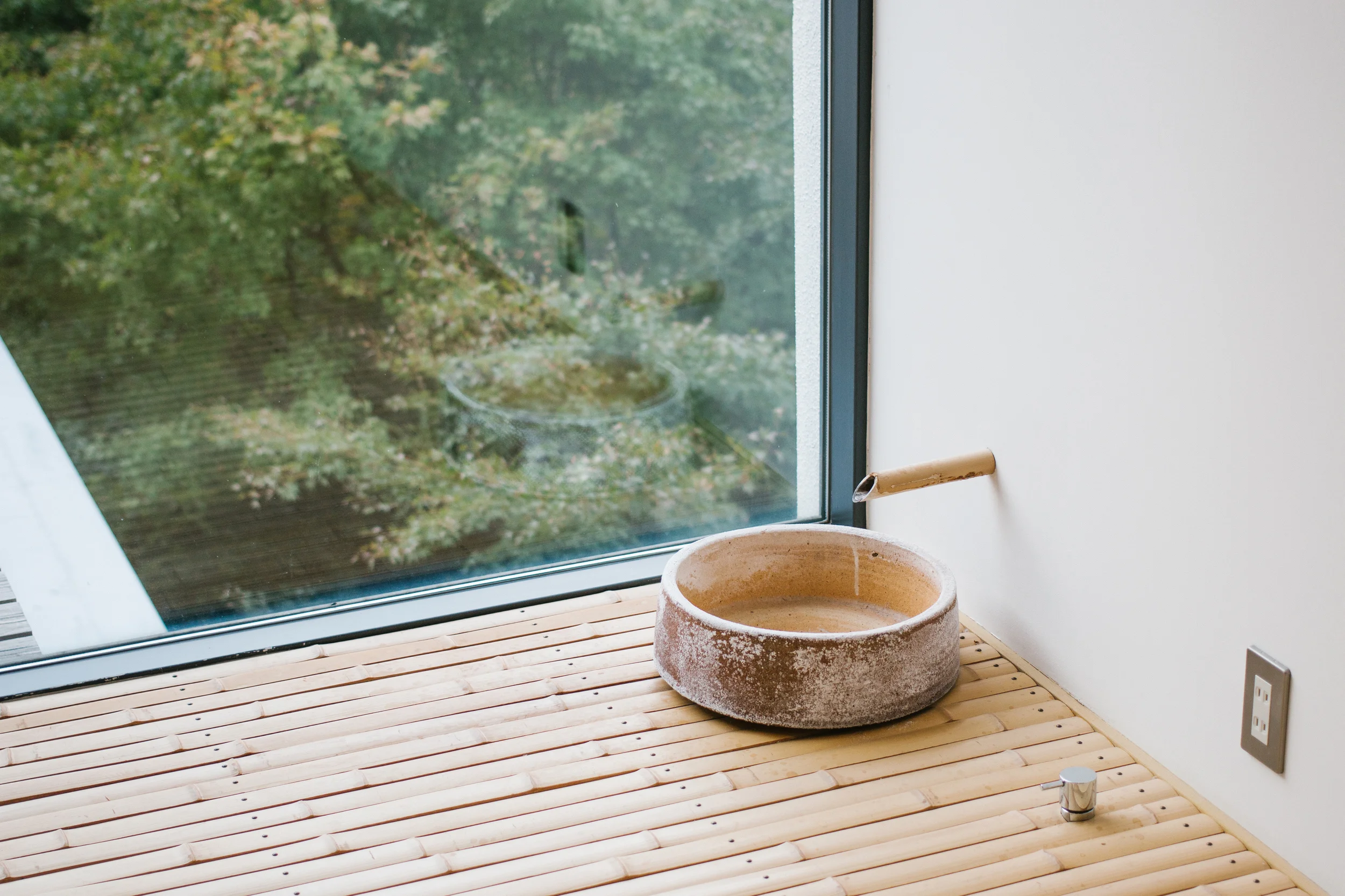Morning dip in our private open-air onsen (hot spring bath)