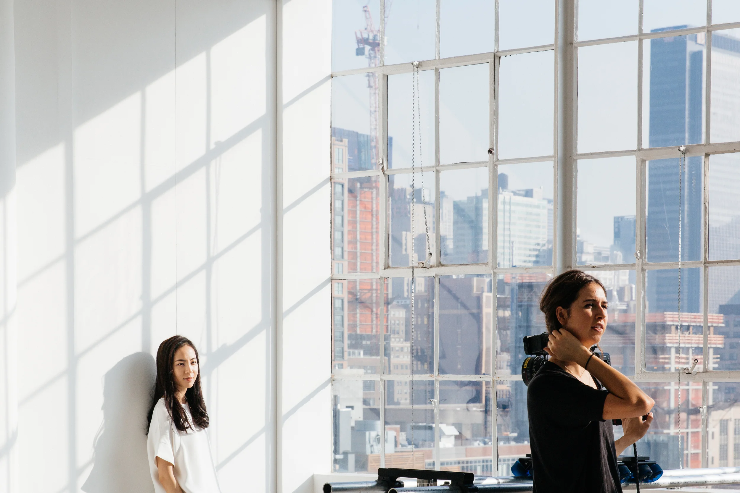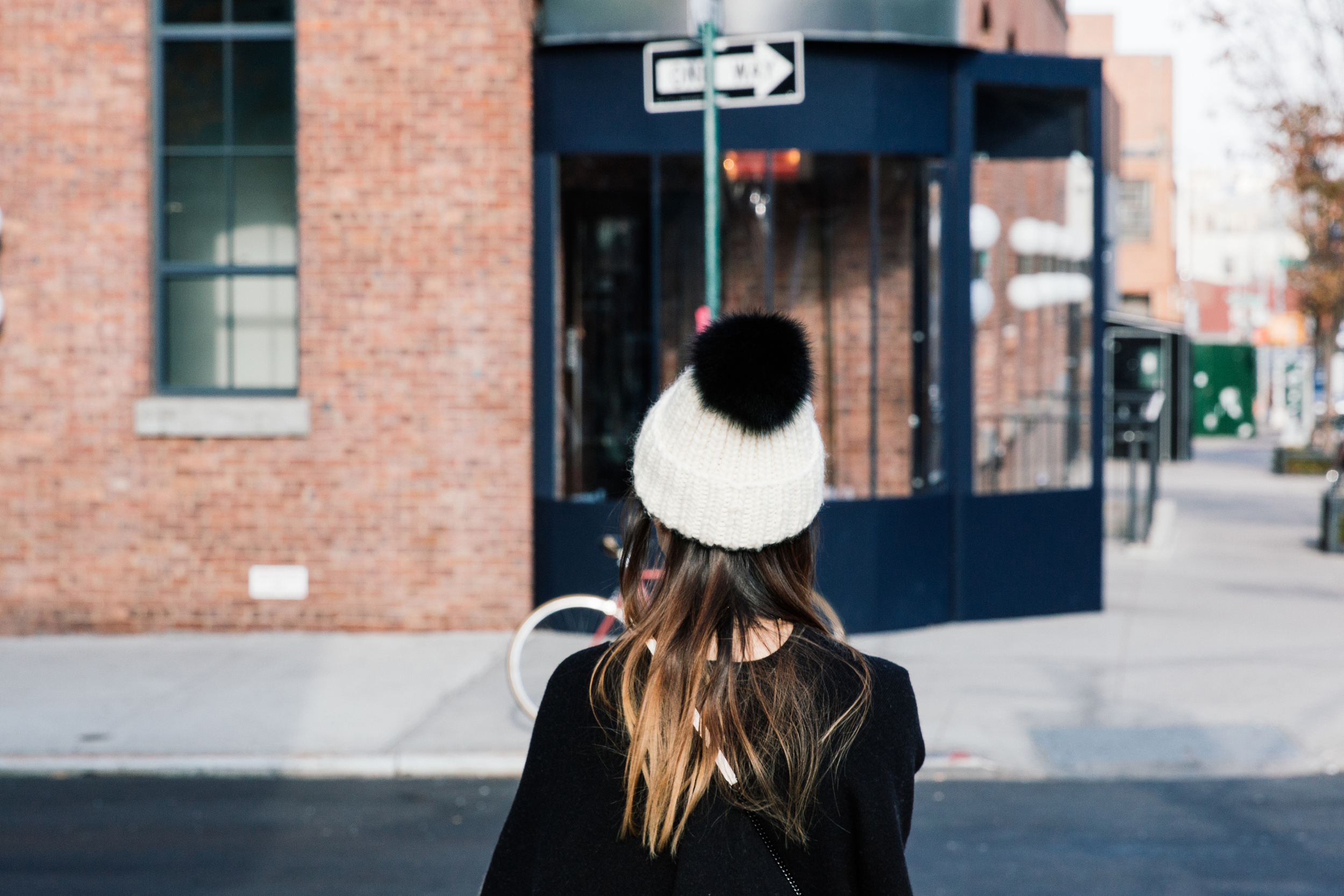 Acne Studios Jacket, COS Shorts, Chanel Boots, Eugenia Kim Beanie, Milk Bar Scarf
