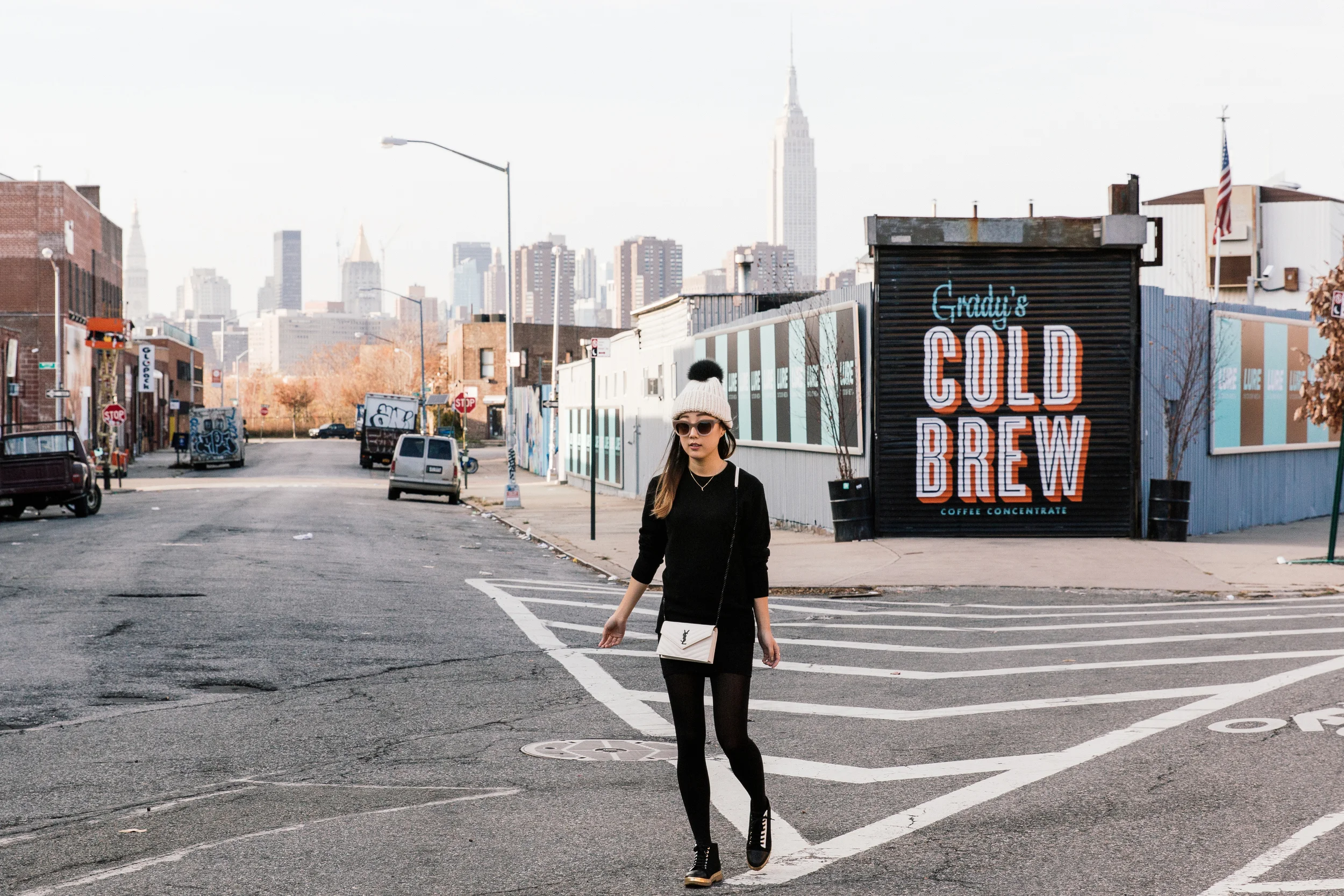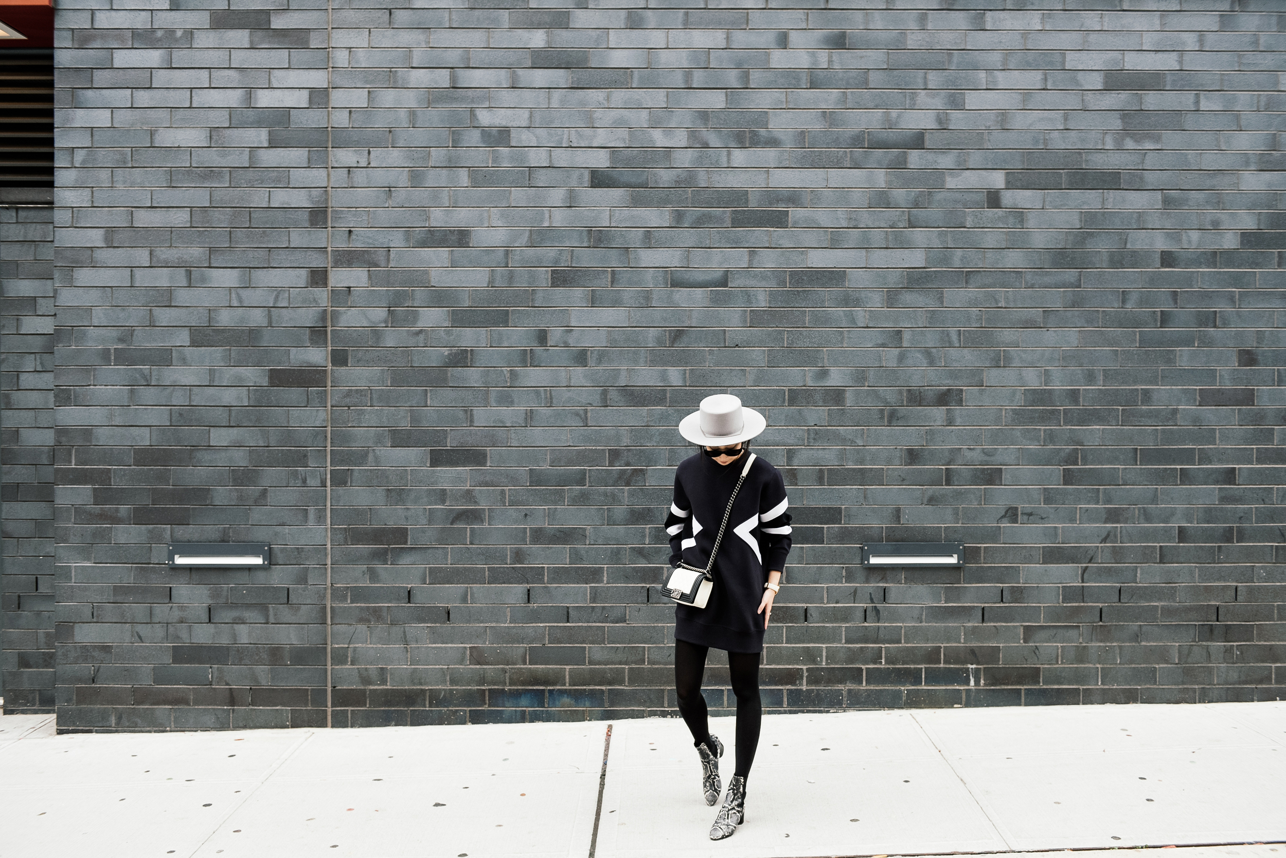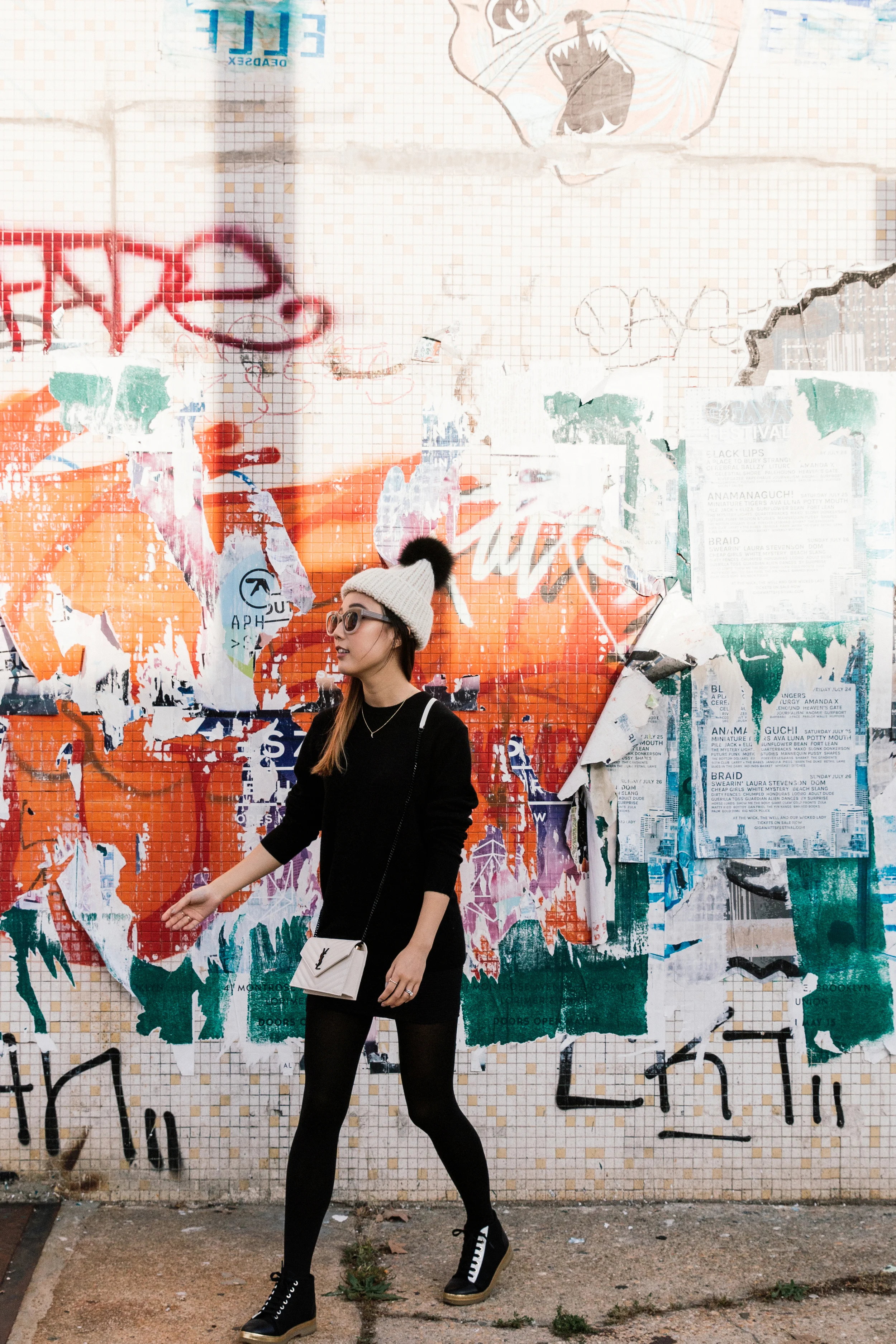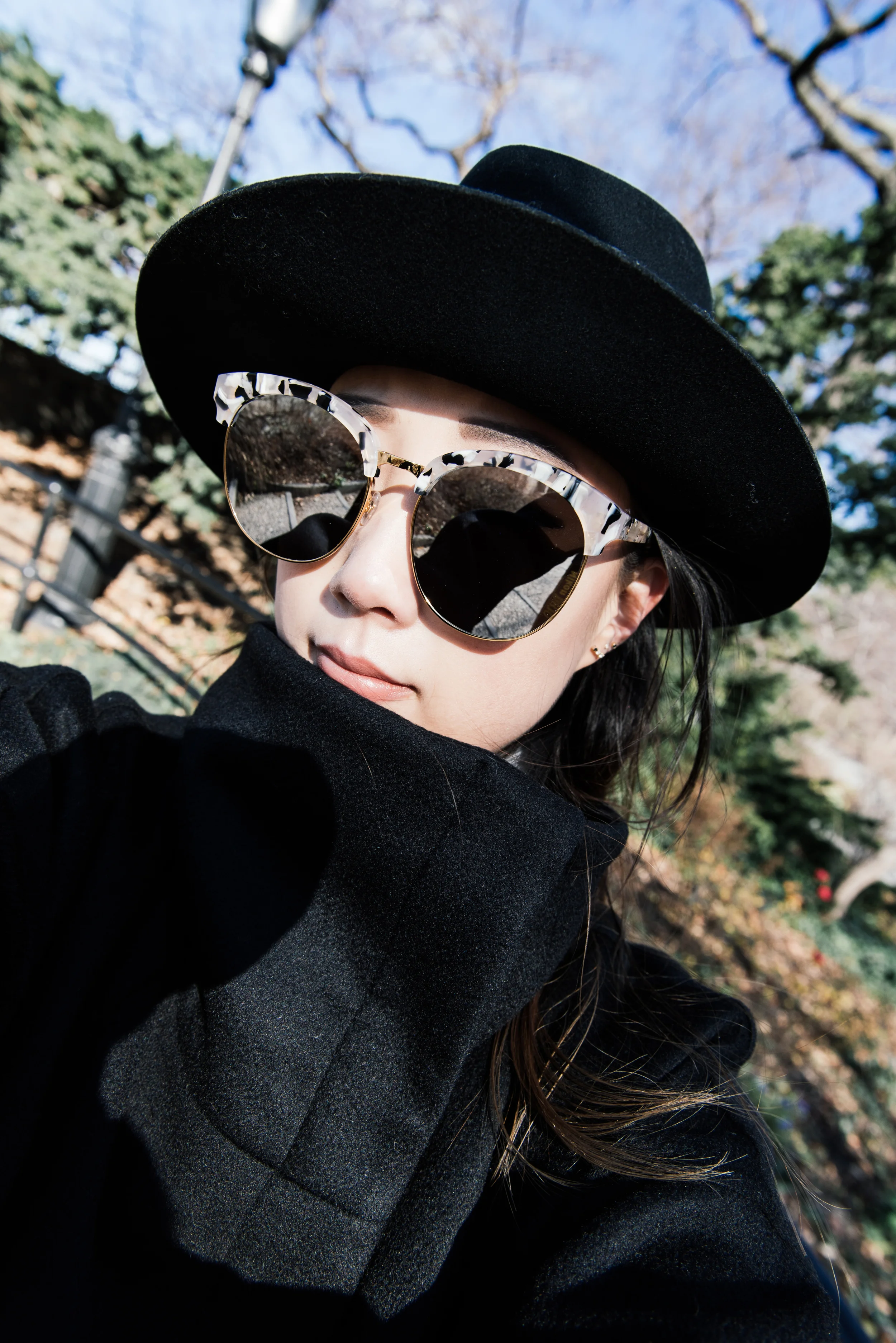 Everlane Sweater, Topshop Skirt, Chanel Shoes, Saint Laurent Bag, Thierry Lasry Sunglasses, Eugenia Kim Beanie