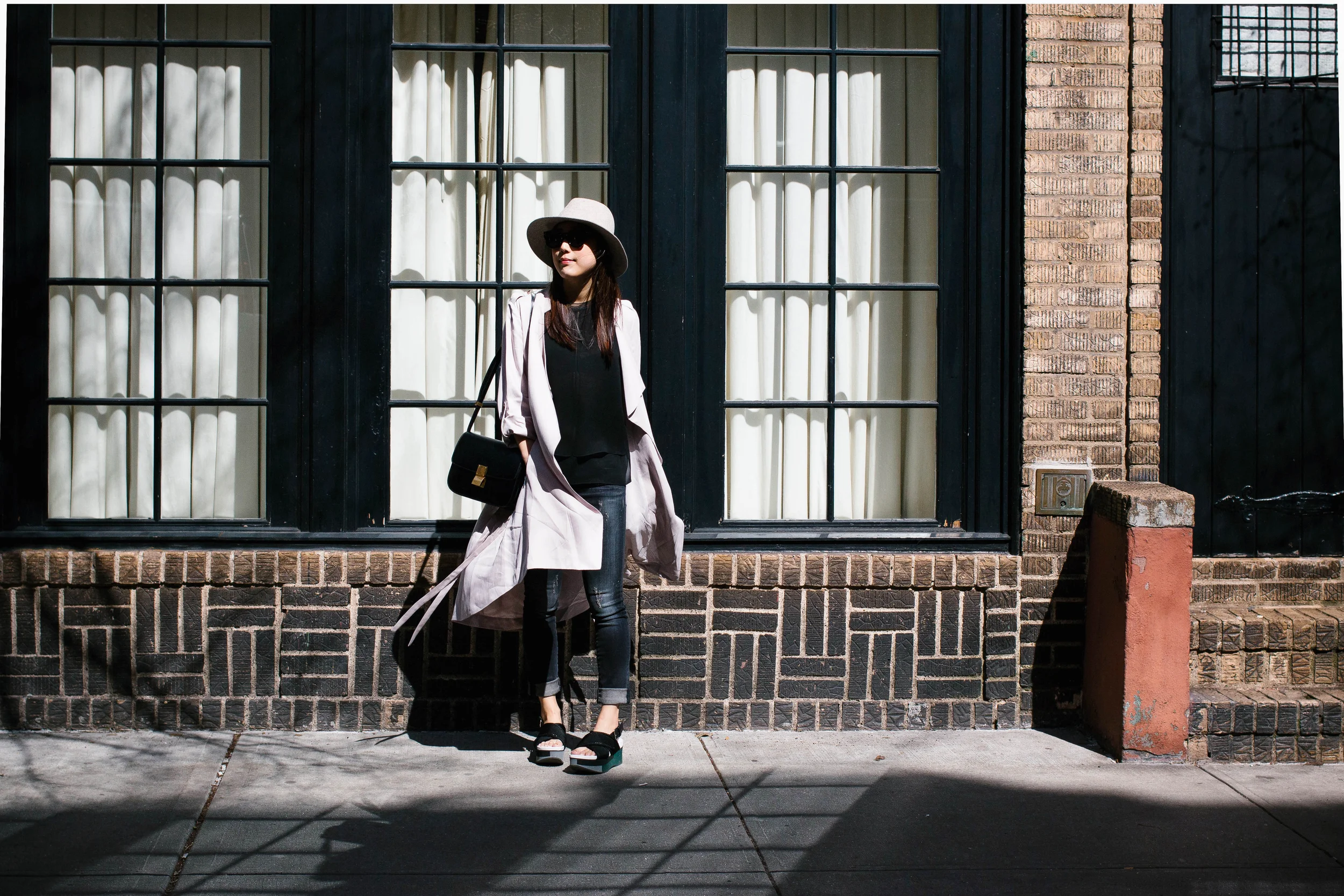 Found the perfect flowy trench for the spring! It drapes beautifully and something I've been reaching for whenever the temperatures are a bit chilly that day. Really been into pale pinks lately (like my Acne Jacket I've purchased recently), and this is a perfect addition to my collection!