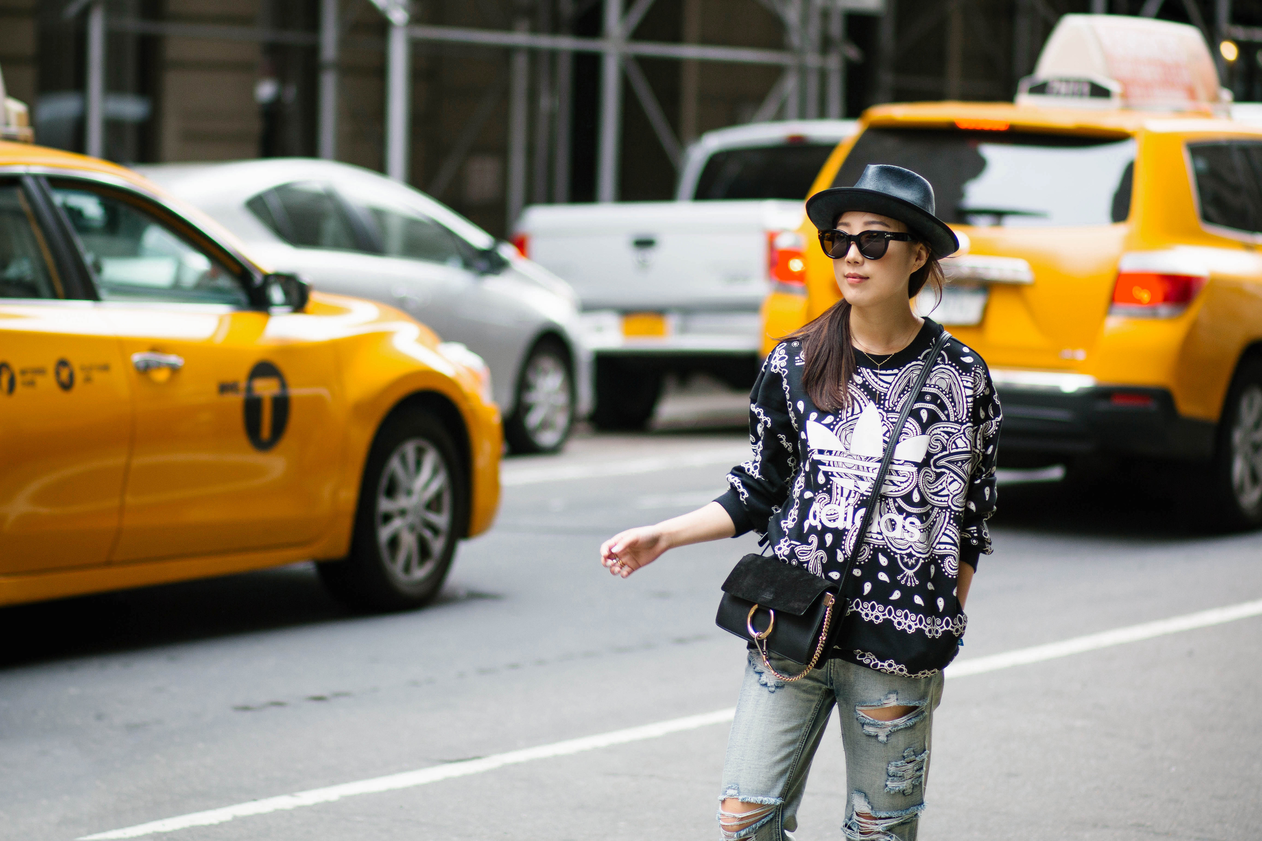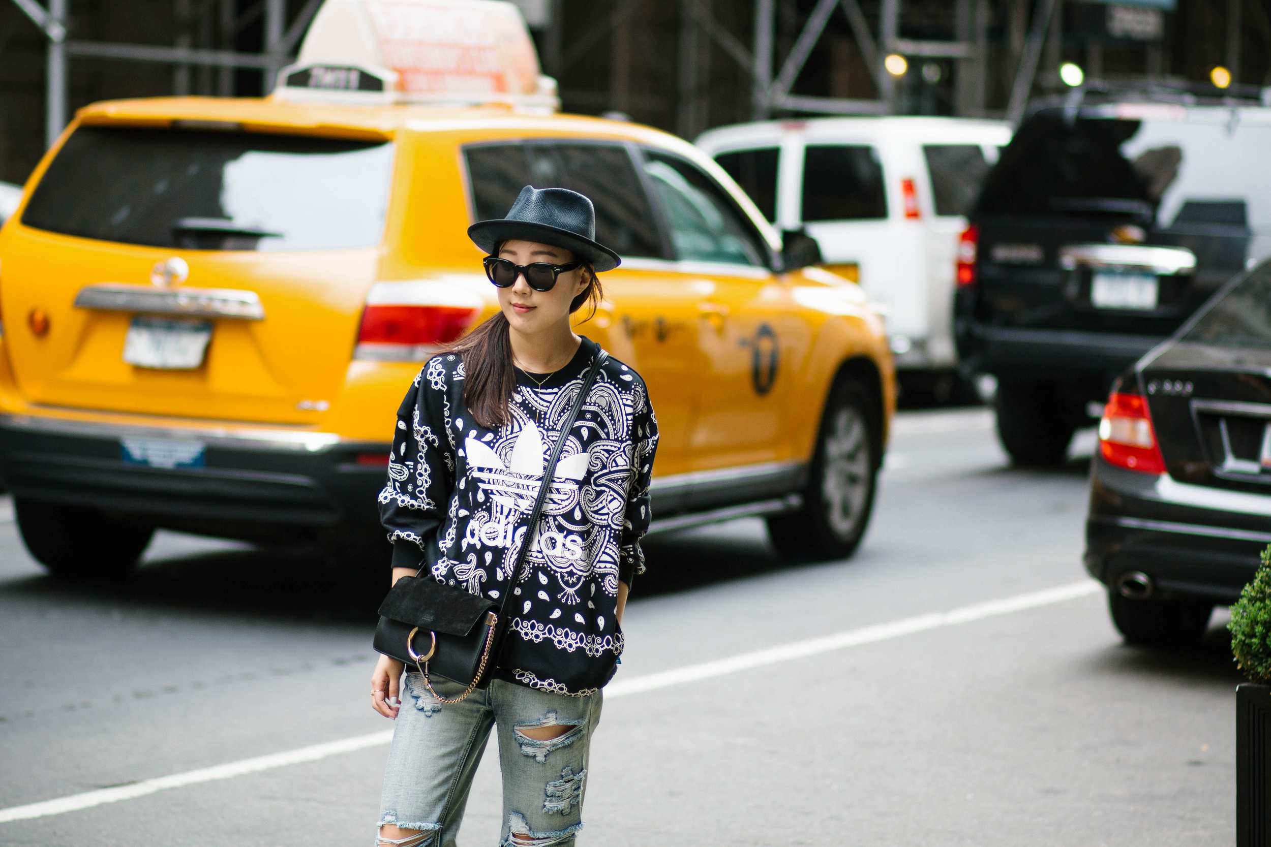 Adidas Originals Top, One Teaspoon Jeans, Chloé Bag, Rag & Bone Hat, Céline Sunglasses