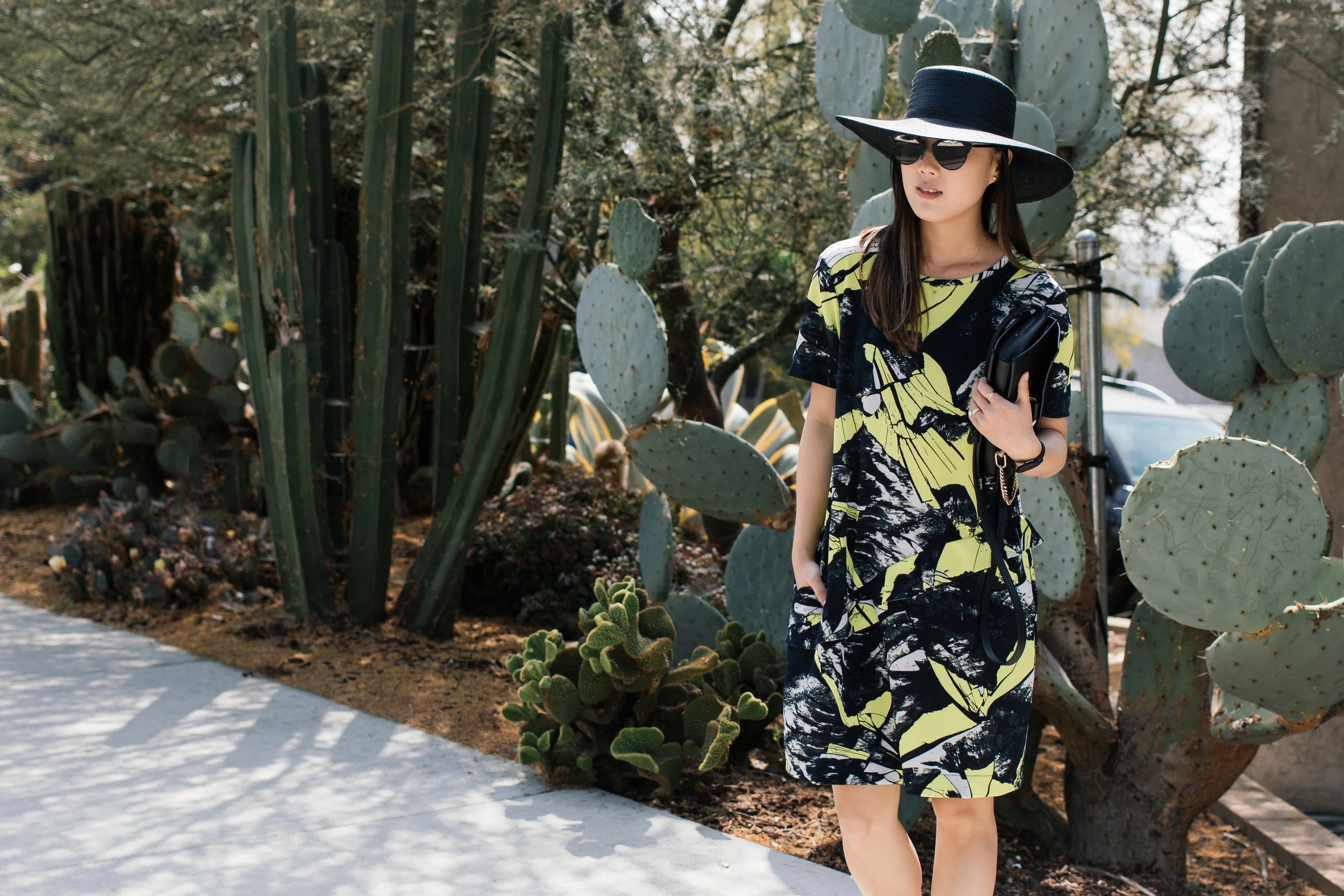 Kenzo Dress, Marni Sandals, Chloé Bag, Dior Sunglasses, Janessa Leone Hat
