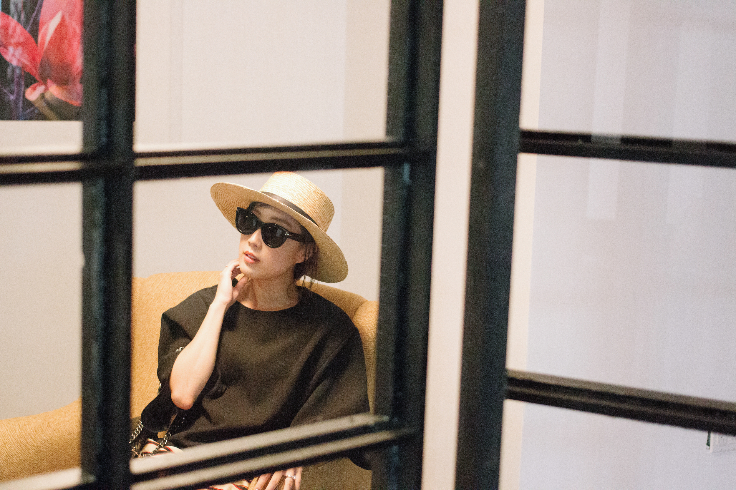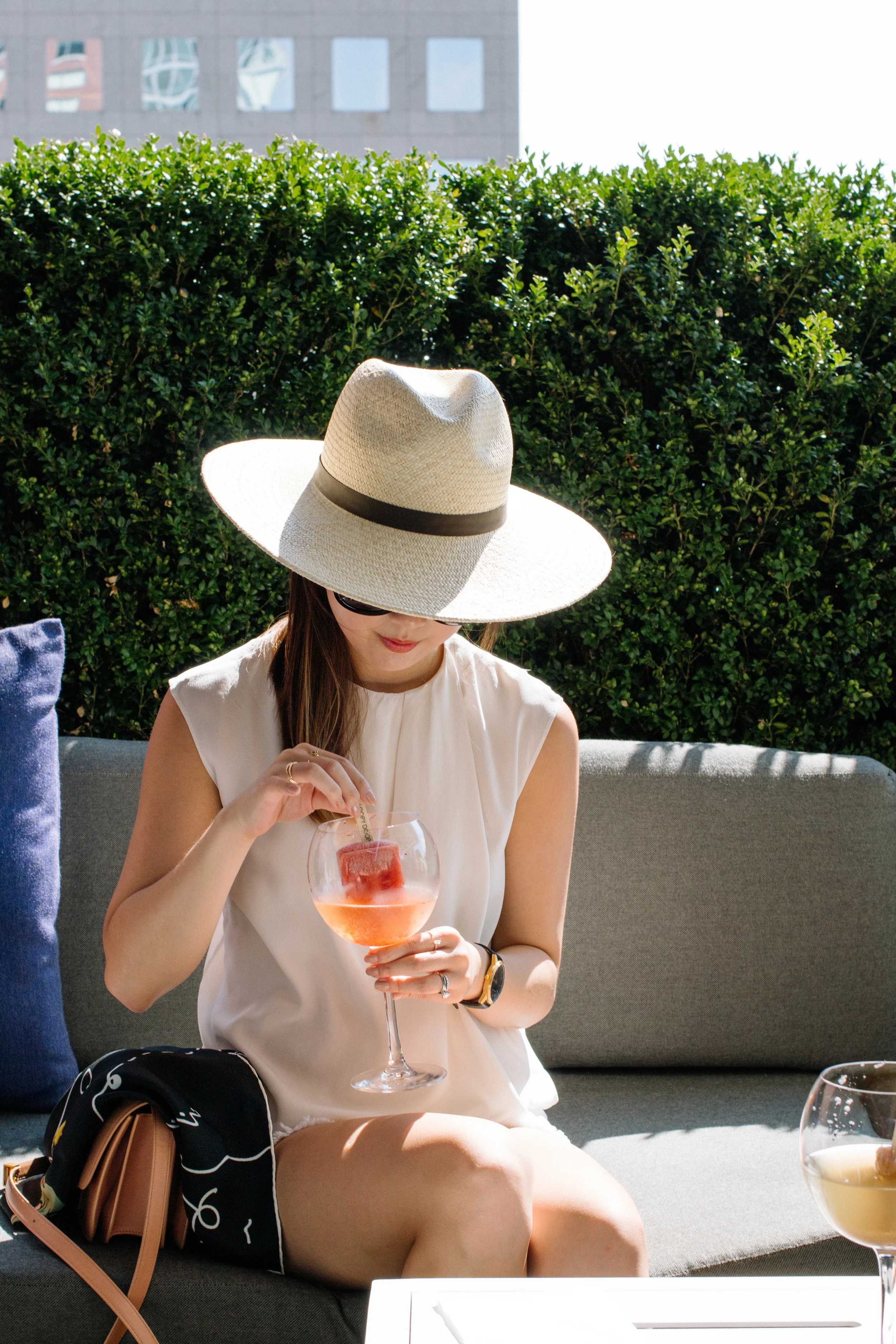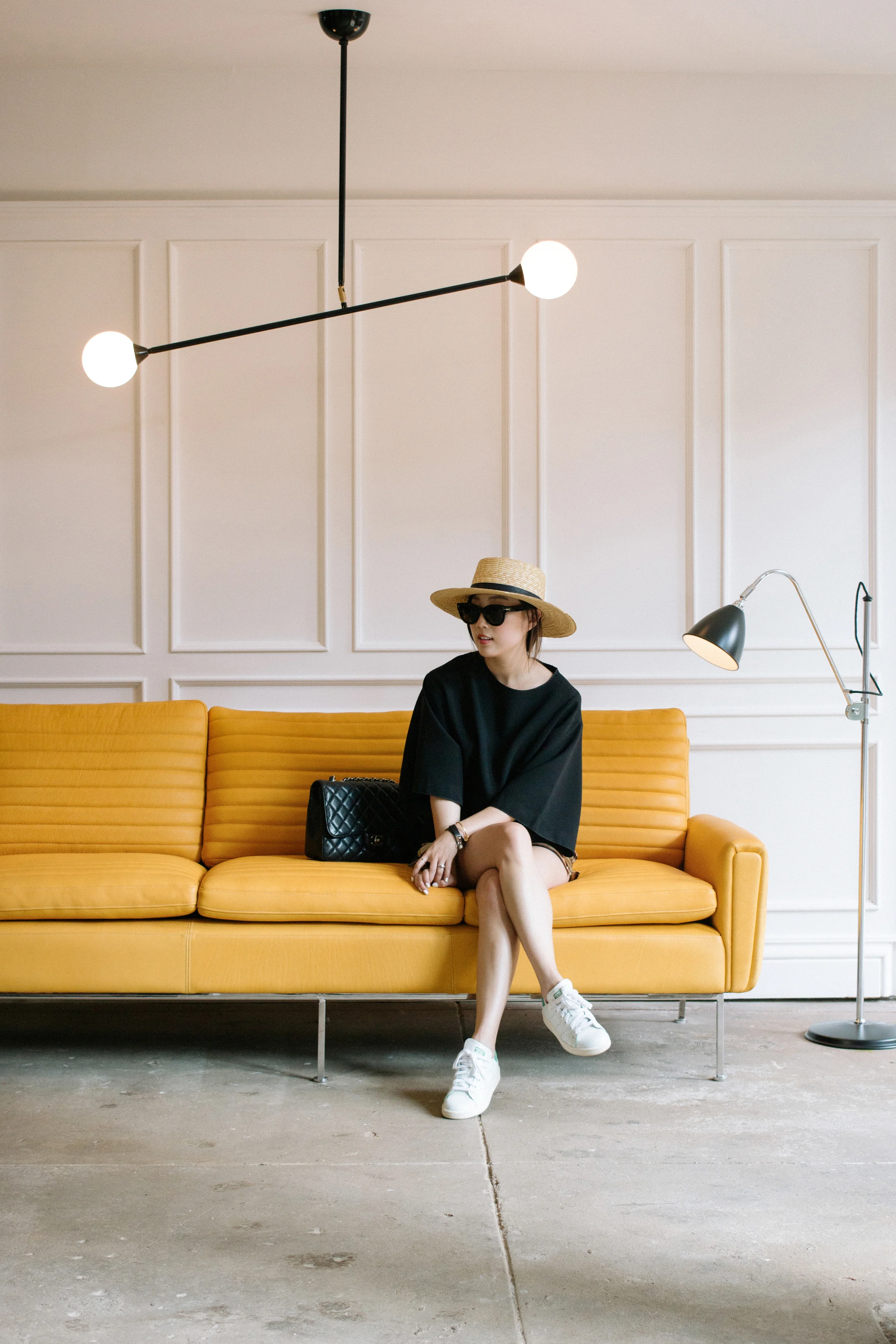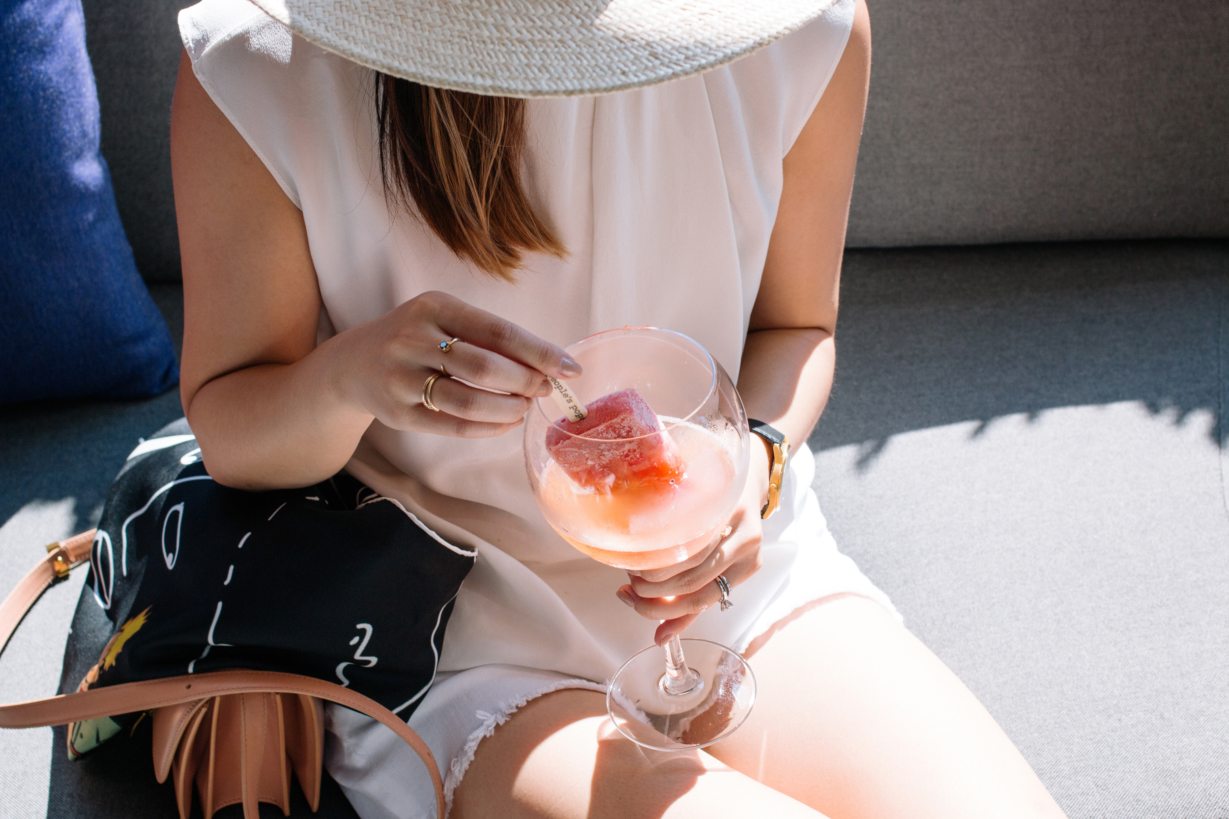COS Top, J Brand Shorts, Céline Bag, Janessa Leone Hat, The Row Sunglasses, Larsson & Jennings Watch, Euna Joyce Rings, AVEC New York Ring