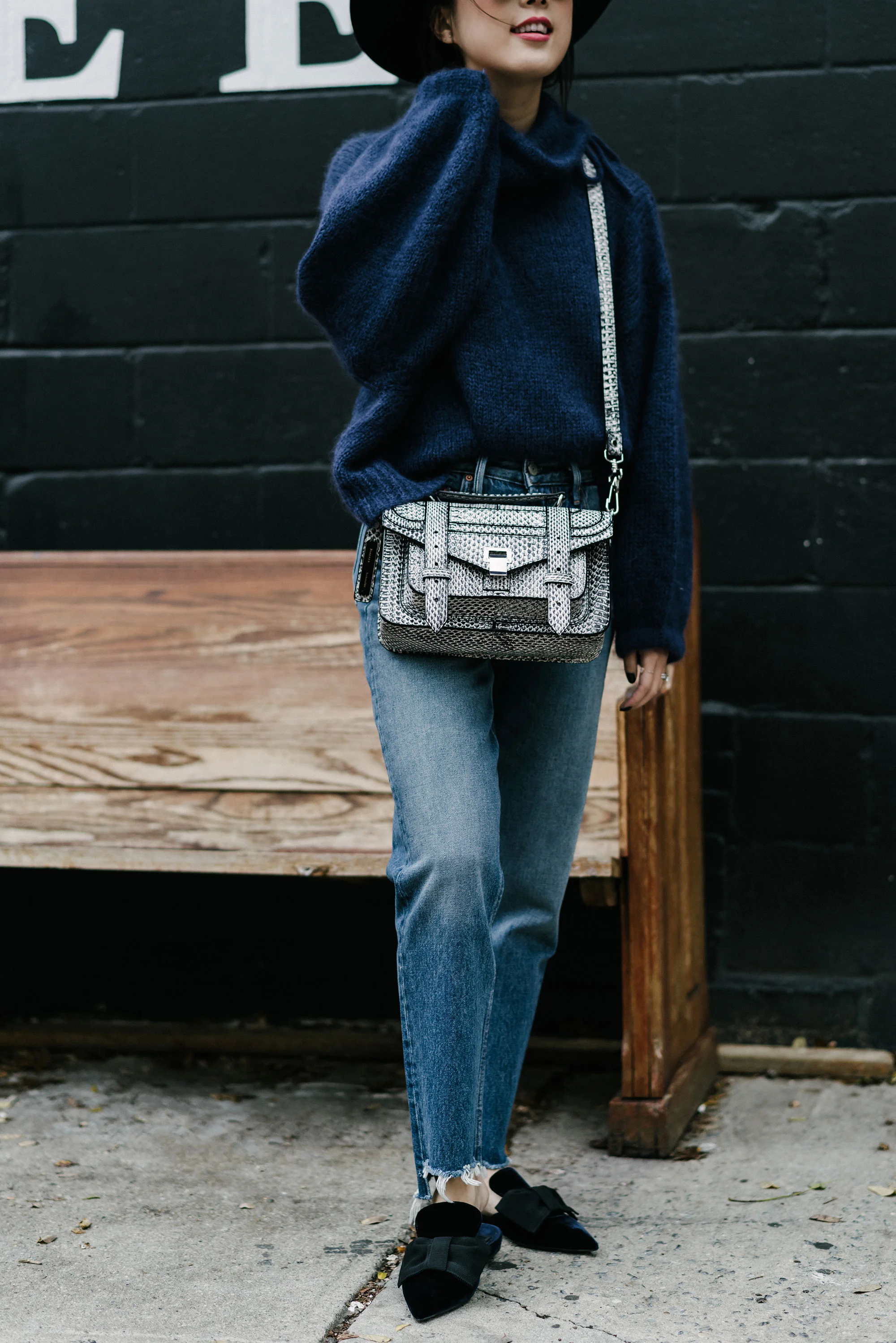 Tabula Rasa Sweater, GRLFRND Denim, Prada Shoes, Proenza Schouler Bag