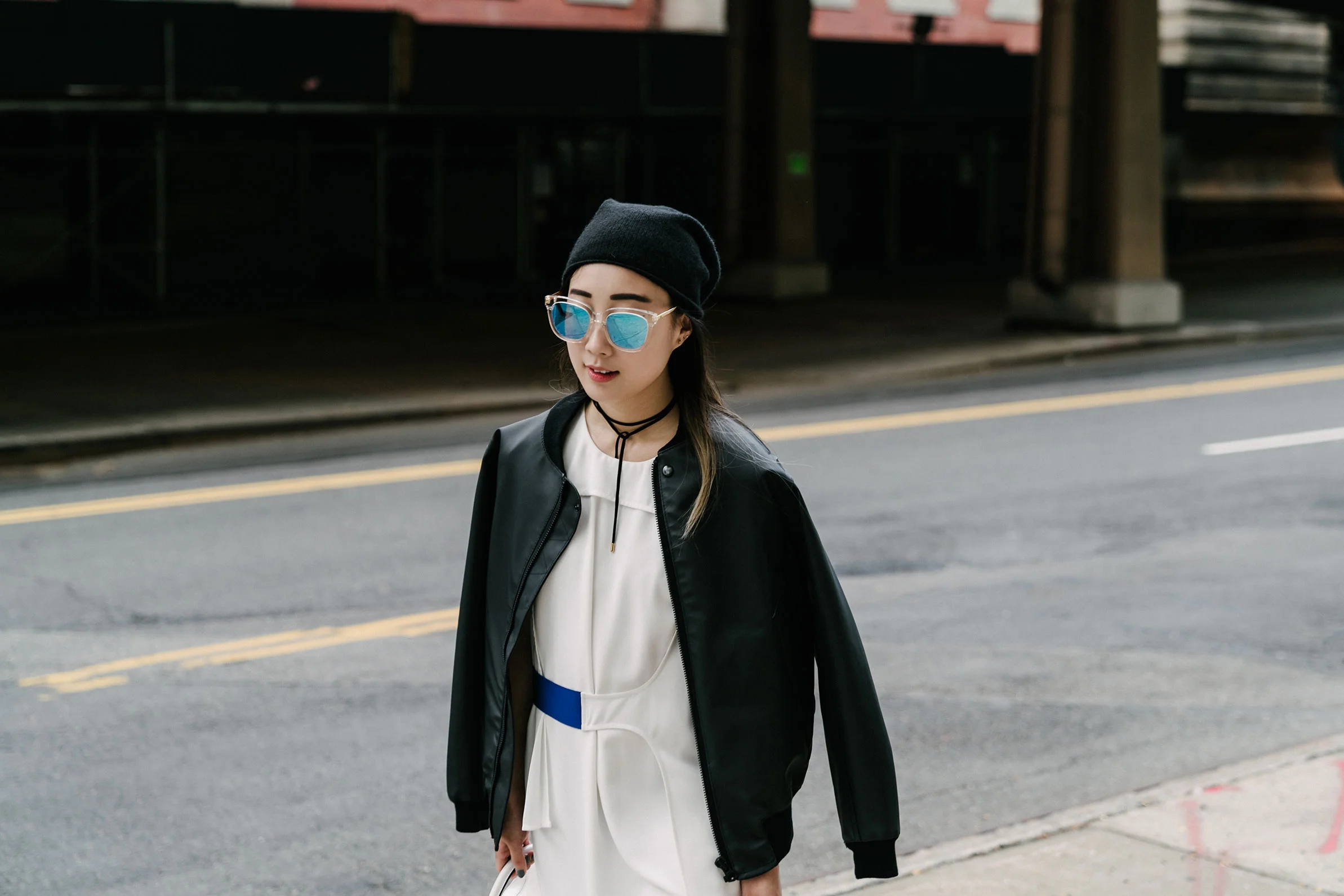 Stutterheim Jacket, PH5 Dress, Gentle Monster Sunglasses, COS Beanie
