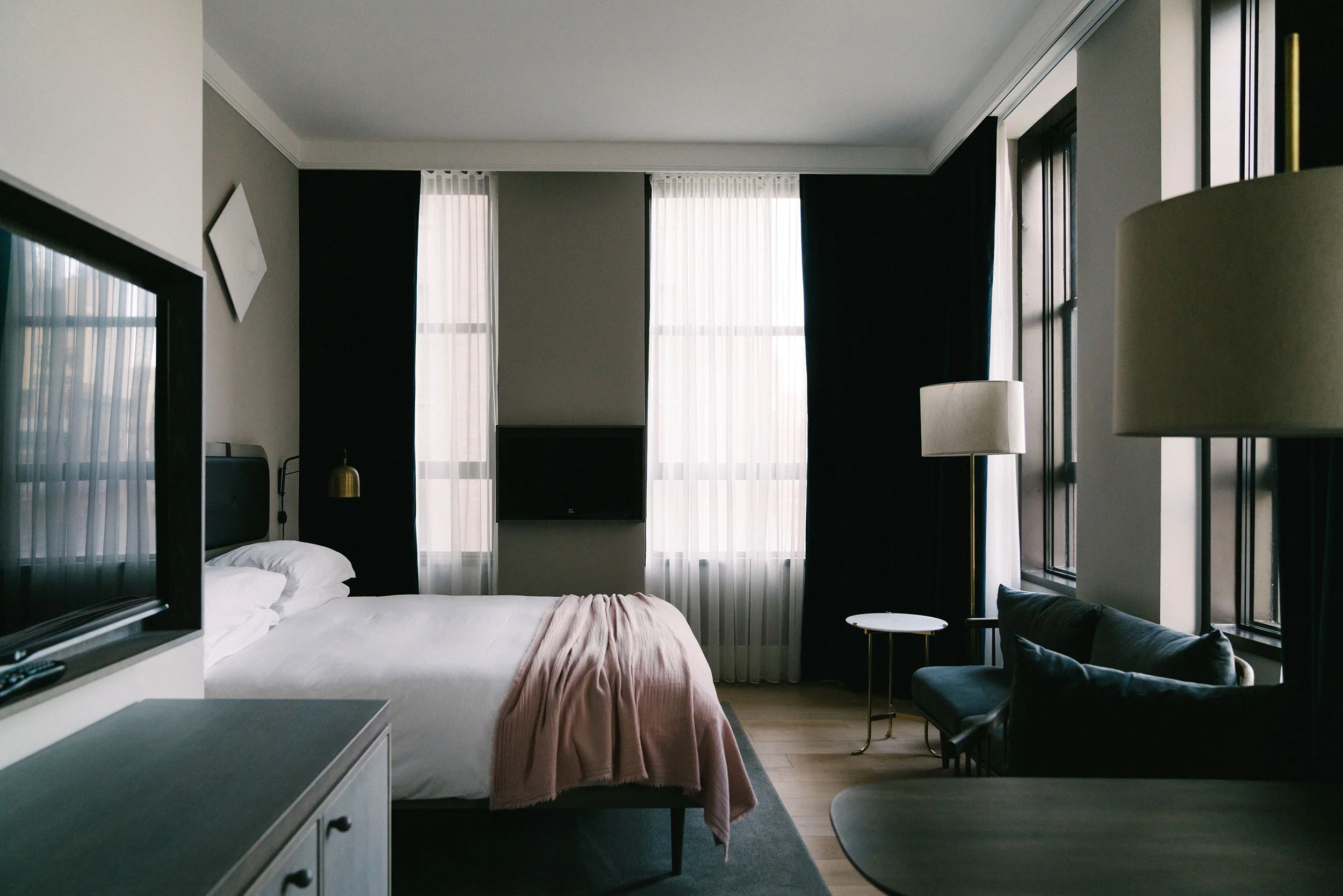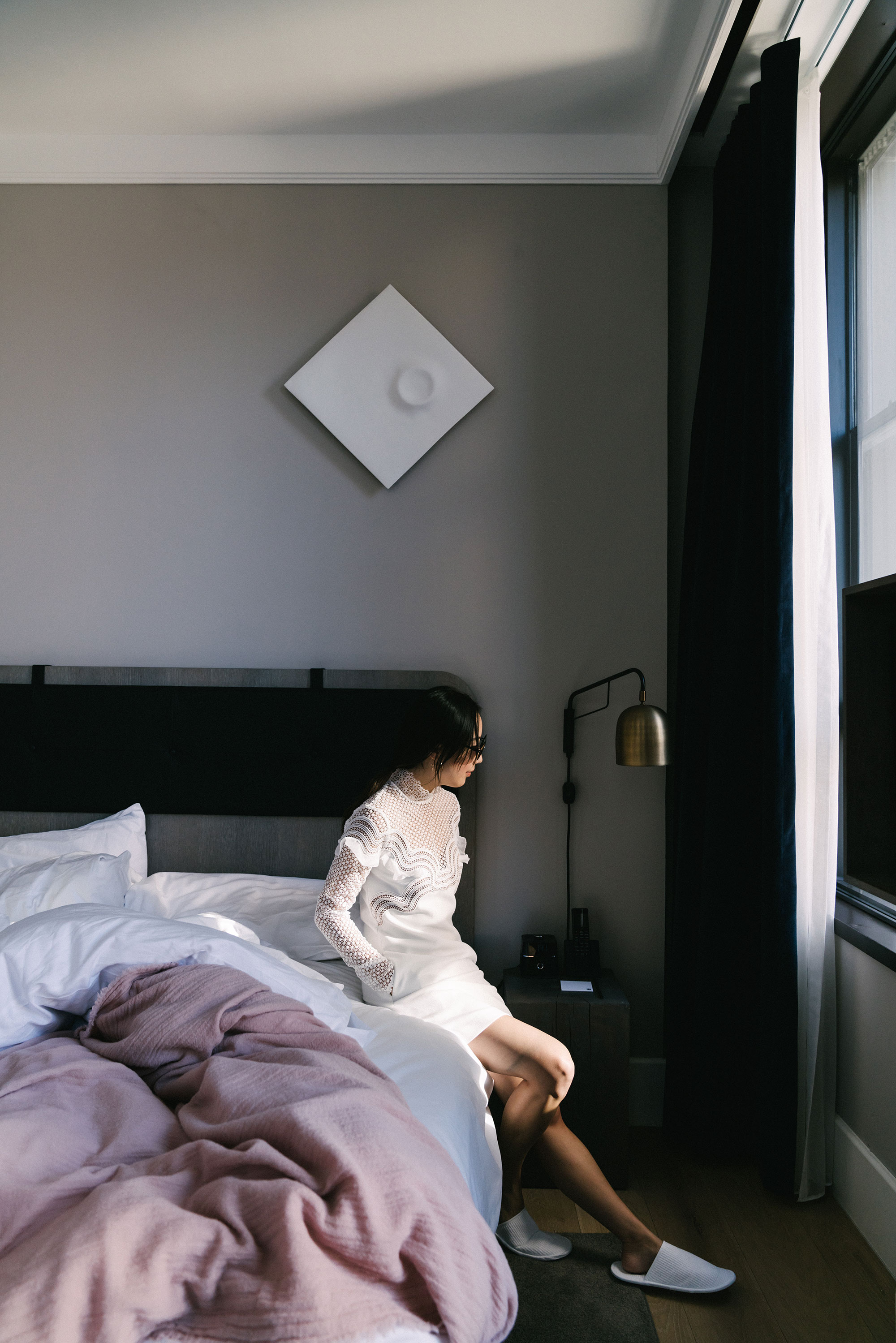 Everlane Dress, Gentle Monster Sunglasses, Janessa Leone Hat at The Nomad Hotel