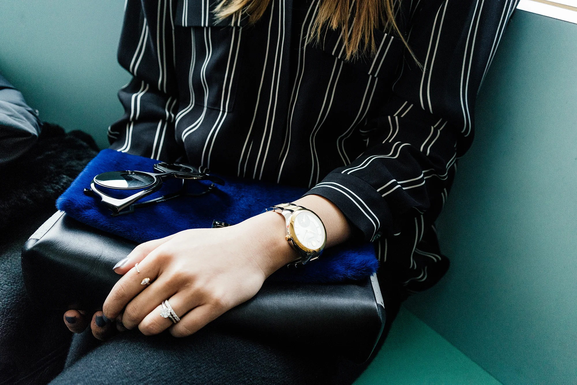 Movado Watch, Tomorrowland Shirt, Candy & Caviar Pants, Isabel Marant Boots, Proenza Schouler Clutch, Fendi Sunglasses, KAT KIM Ring