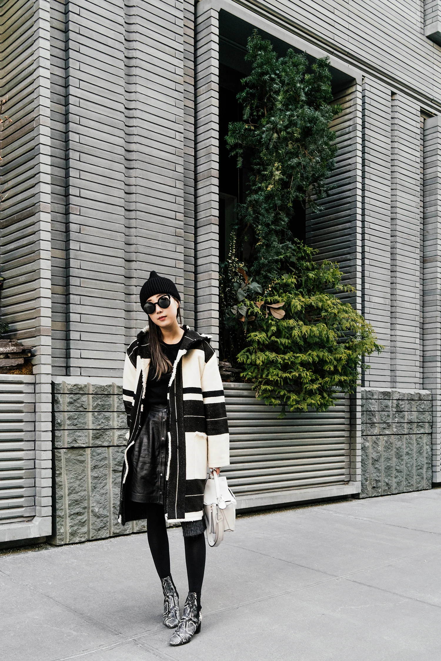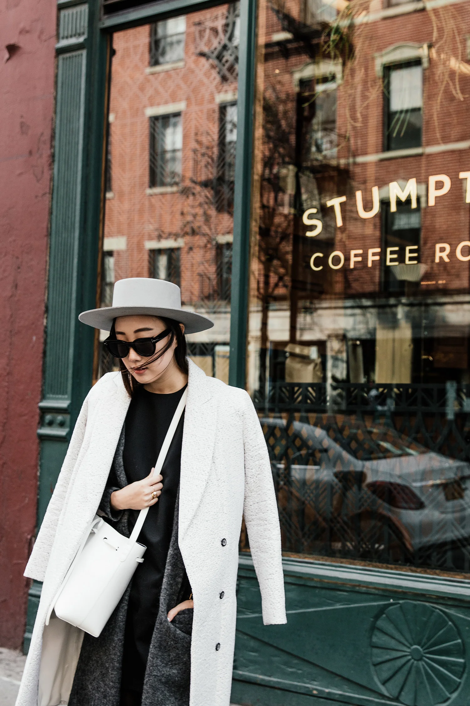 Kuho Coat, Lemaire x Uniqlo Dress, Isabel Marant Shoes, Janessa Leone Hat