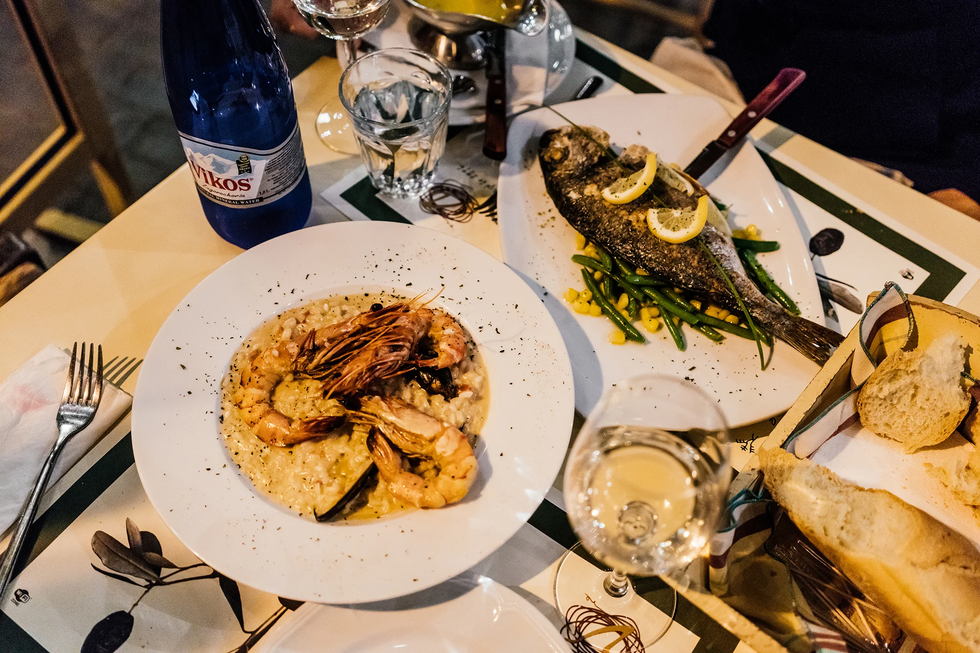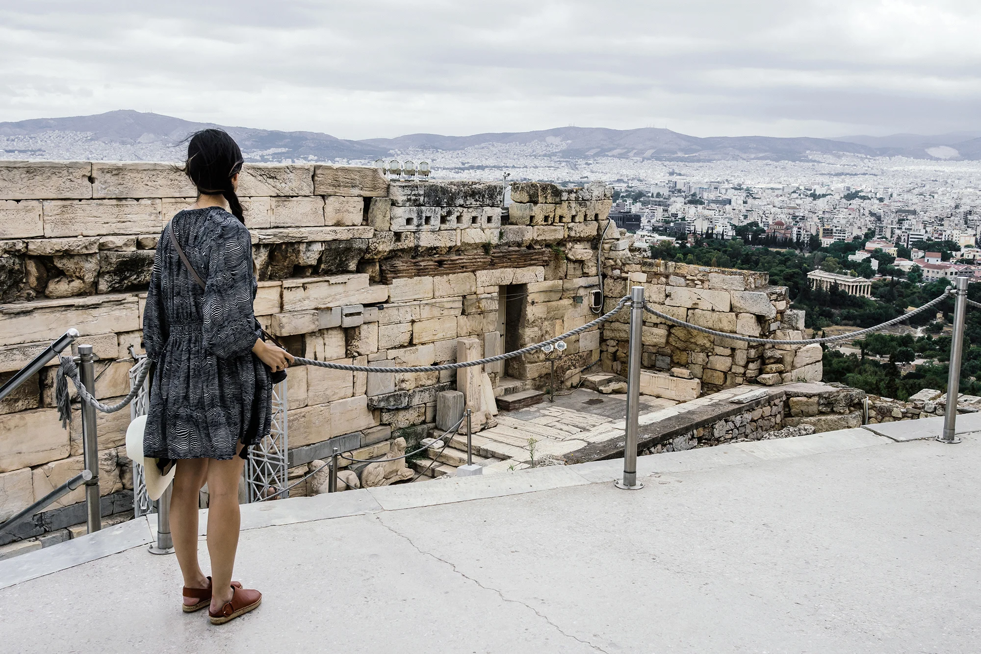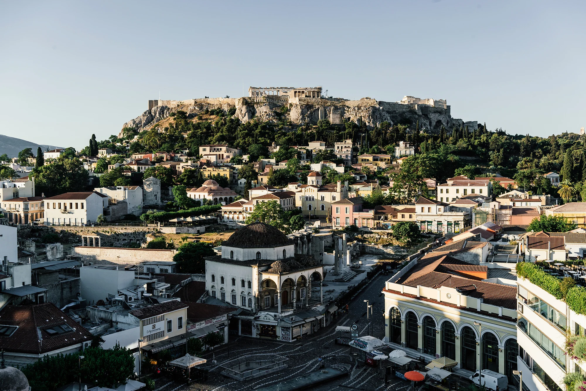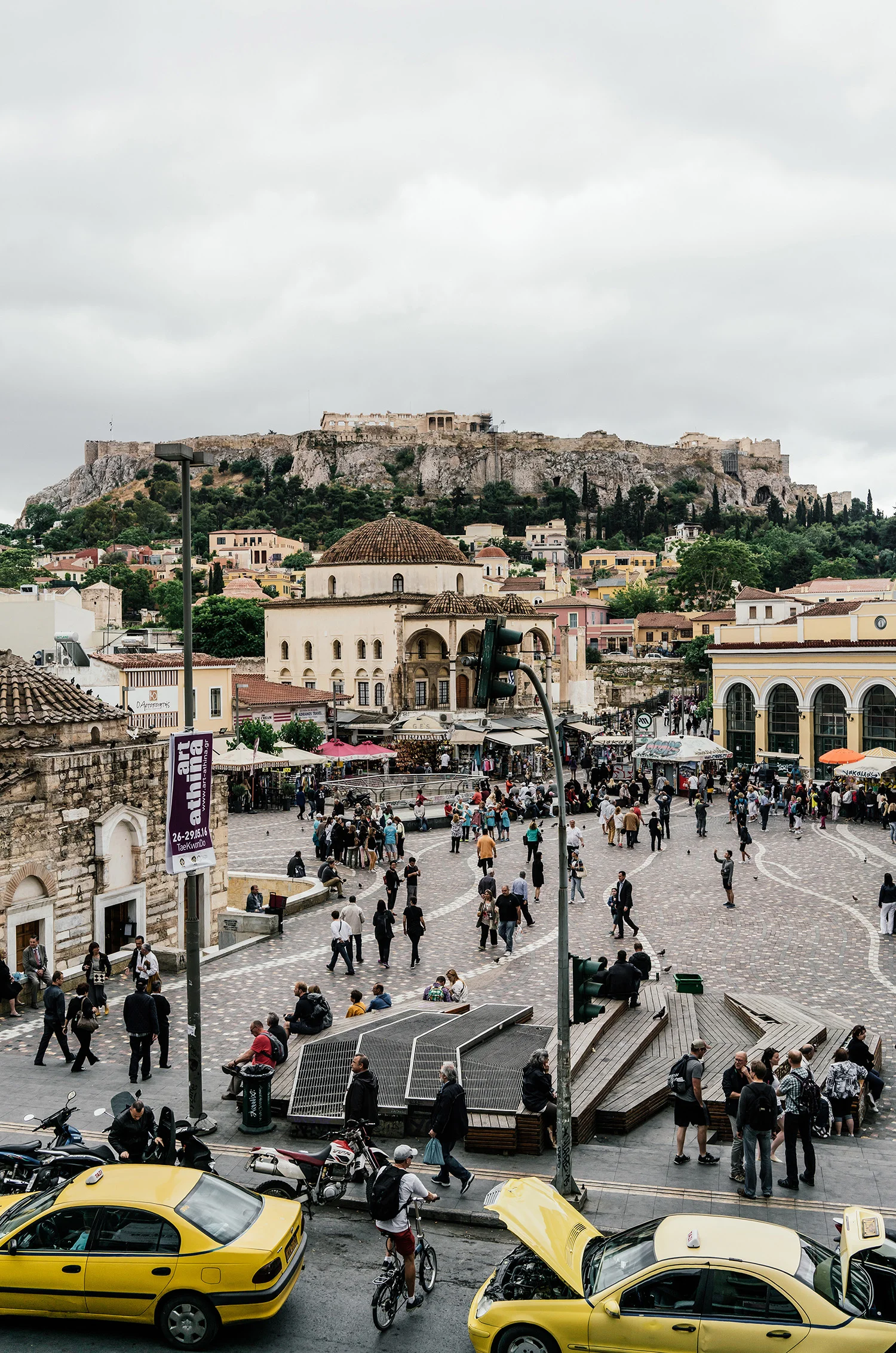 Landed in Athens and kicked off the first day of our Grecian trip right in the capital. Due to the strikes occurring that weekend, all modes of transportation were put on pause except taxis. We dropped off our things at our hotel A For Athens before heading out to get a bite to eat and explore the historical ancient remains. The views from our room as well as the roof(bar) were really amazing – it allowed us to get a complete view of the city center and the Acropolis, and it was really interesting to see Monastiraki Square changing throughout the day.