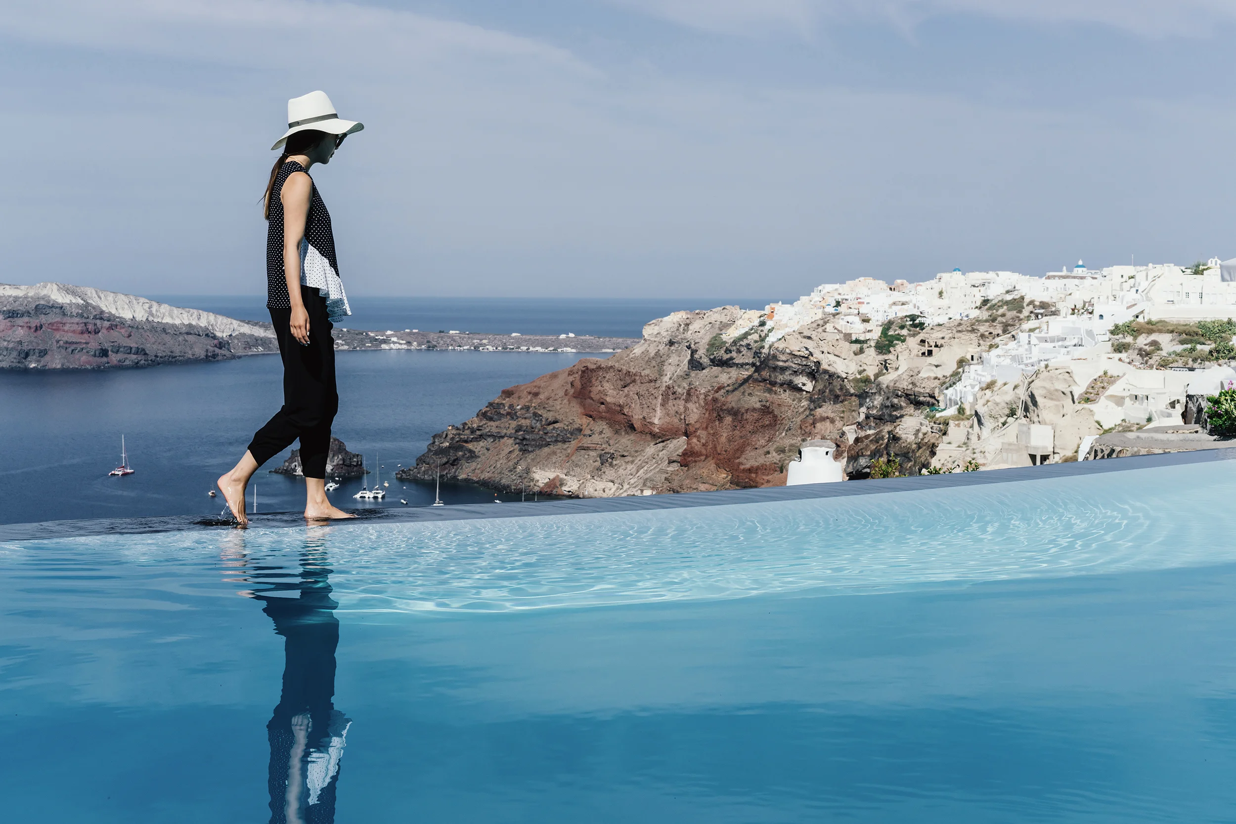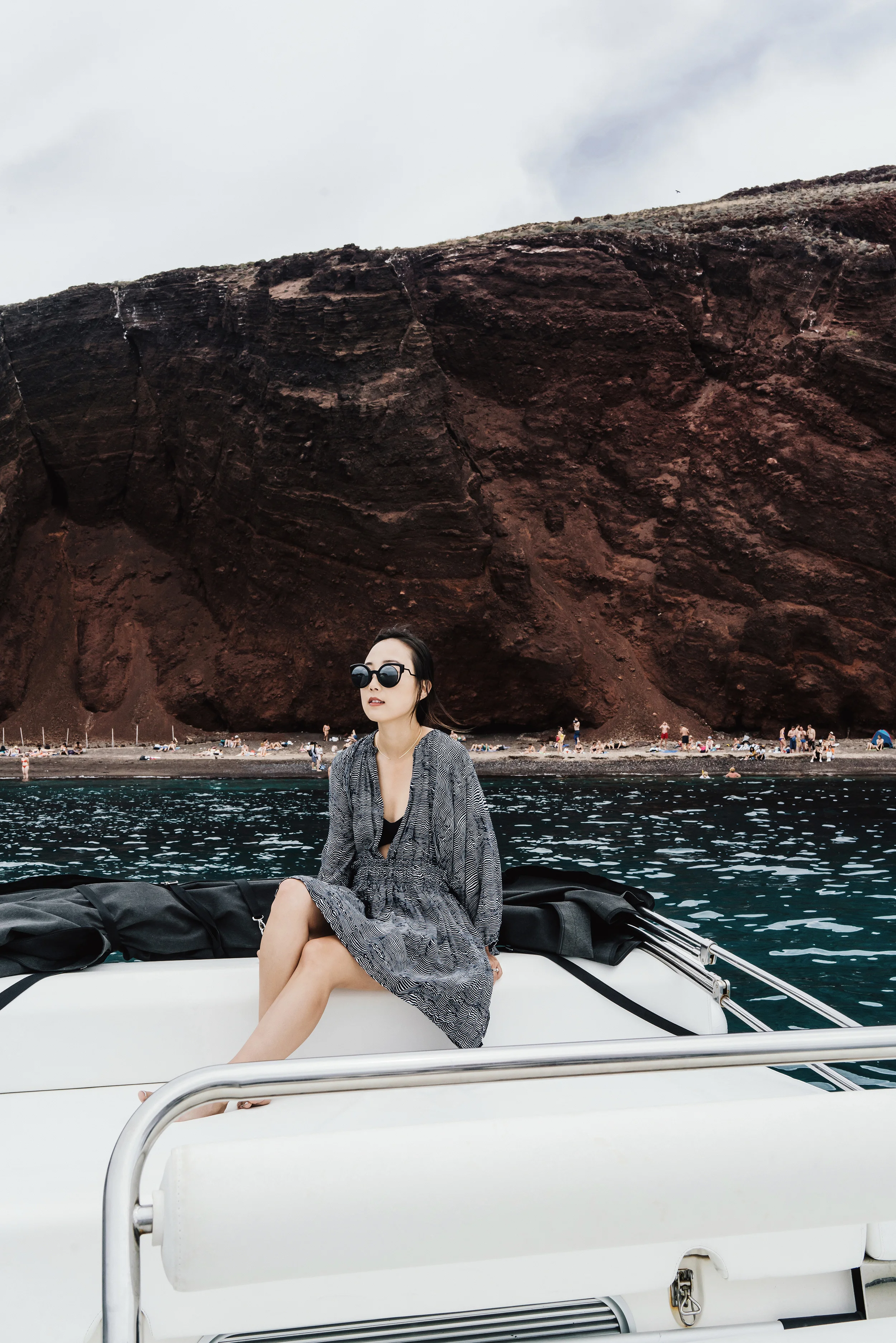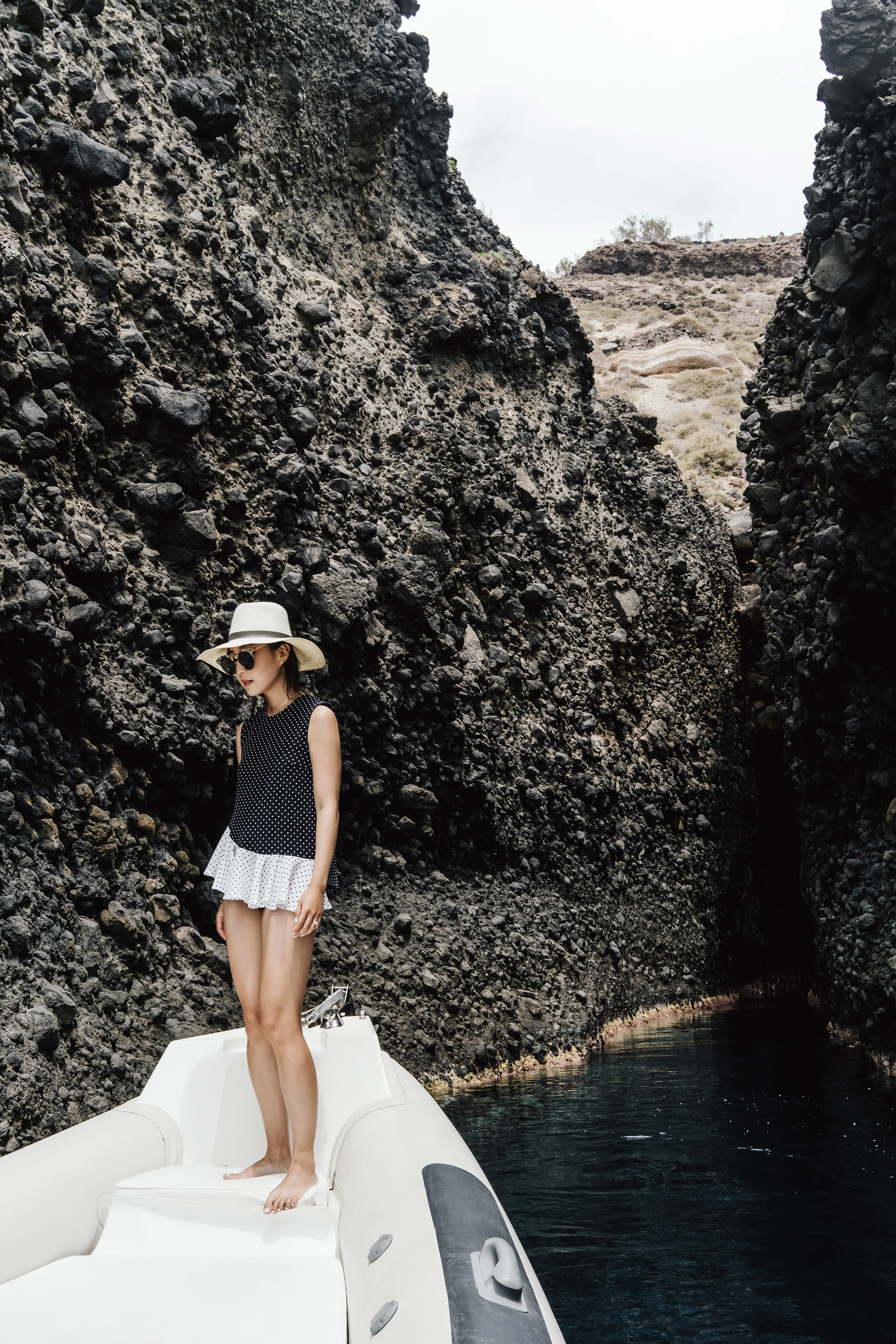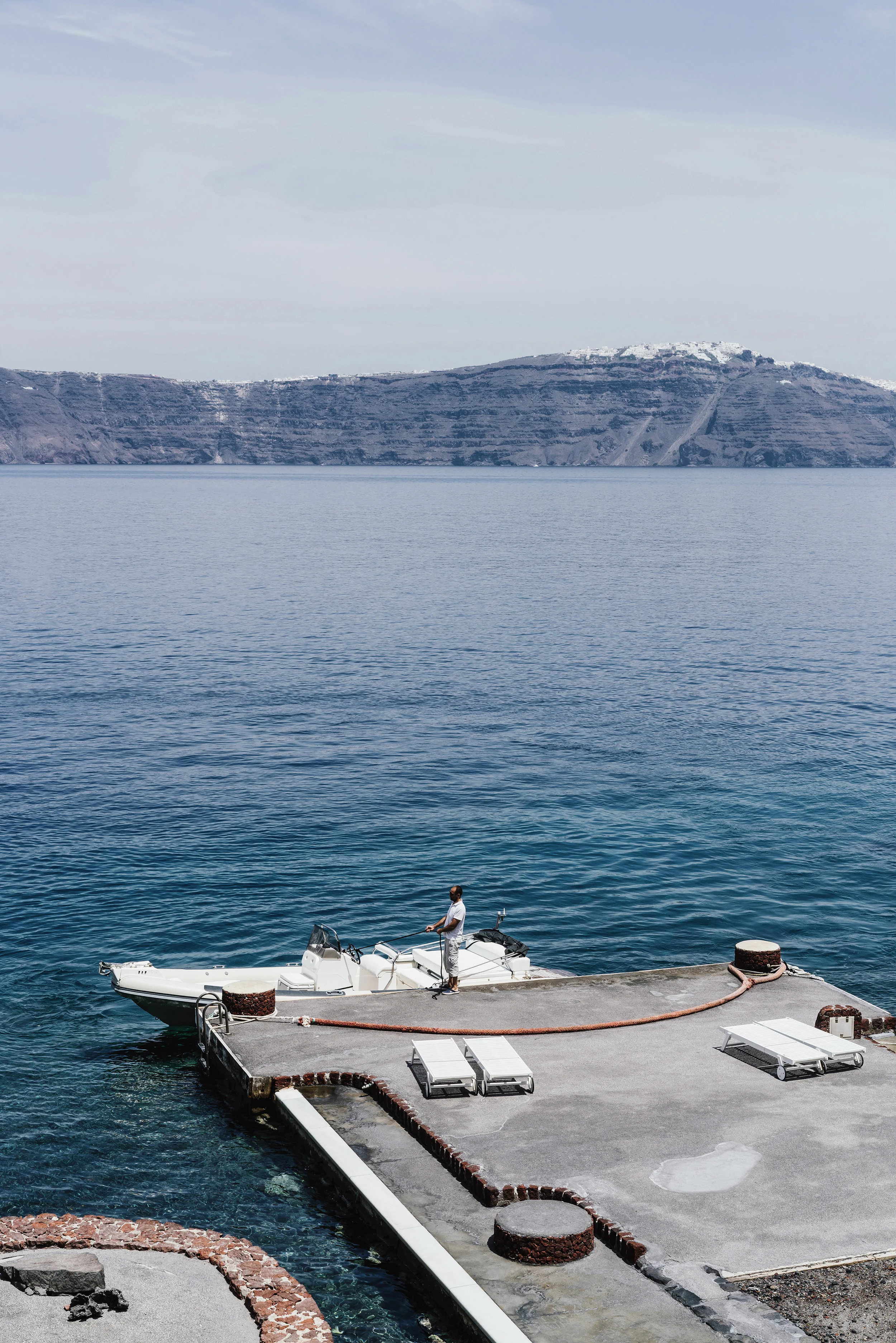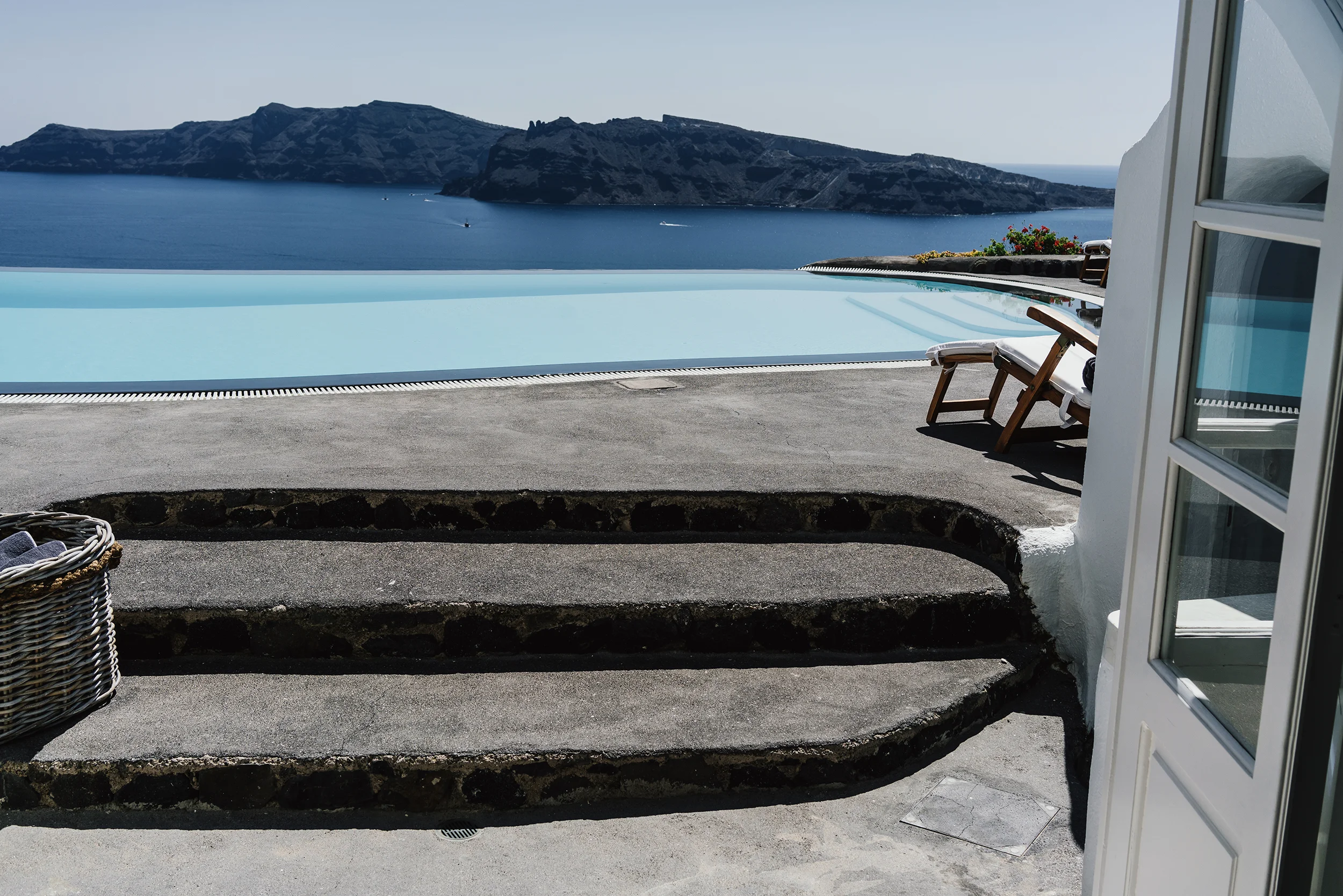 We took a private boat tour one day which was very informational on the island of Santorini and the volcanic history of it, and were able to touch on locations that aren't so accessible by land. We were surprised by an incredible treat though when they took us to visit their Perivolas Hideaway, a camouflaged private villa situated right across from the Perivolas Hotel on the island of Thirassia, but is only accessible by sea. The thrill of taking a dip in the sea water pool while facing the Caldera was an experience like none other.