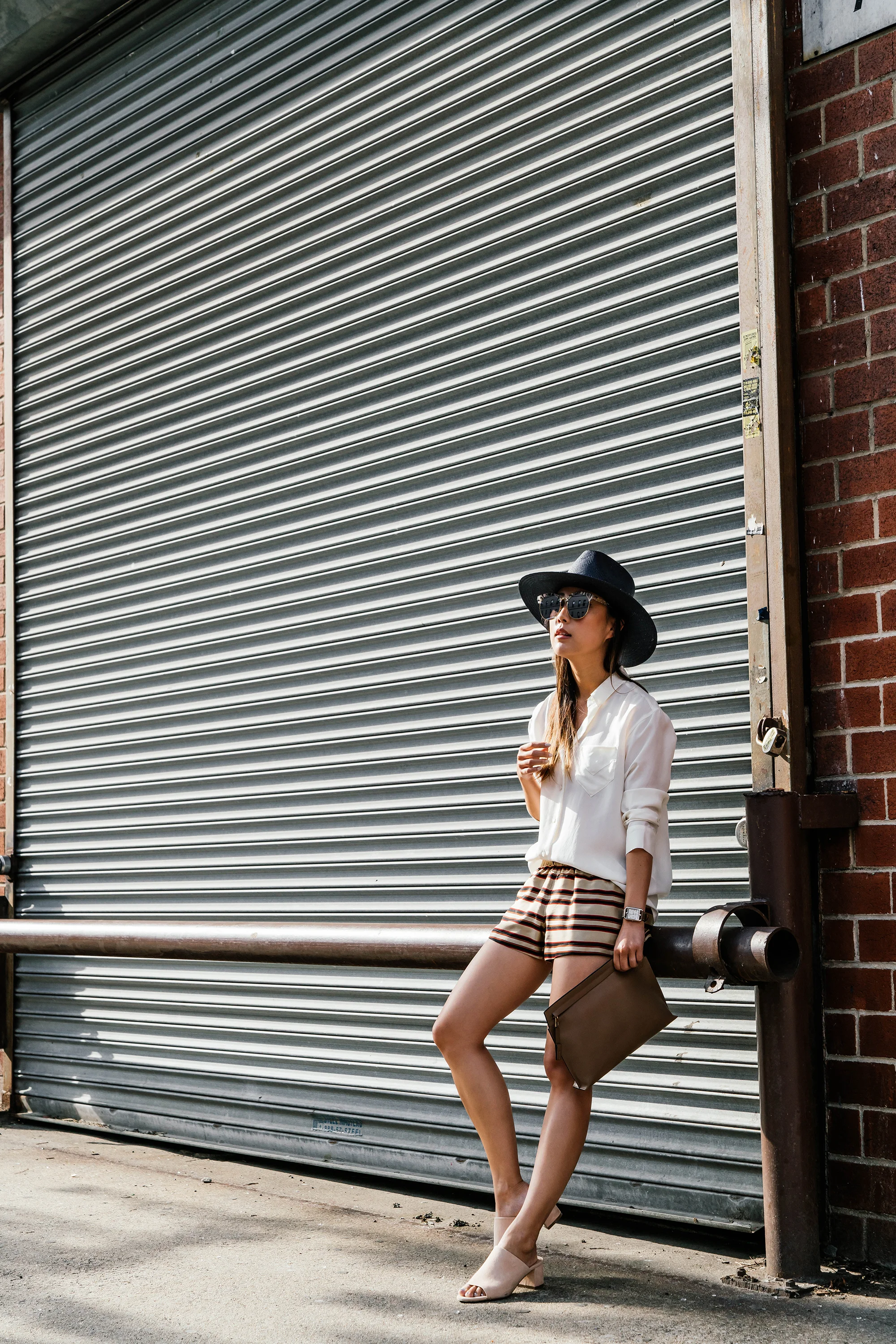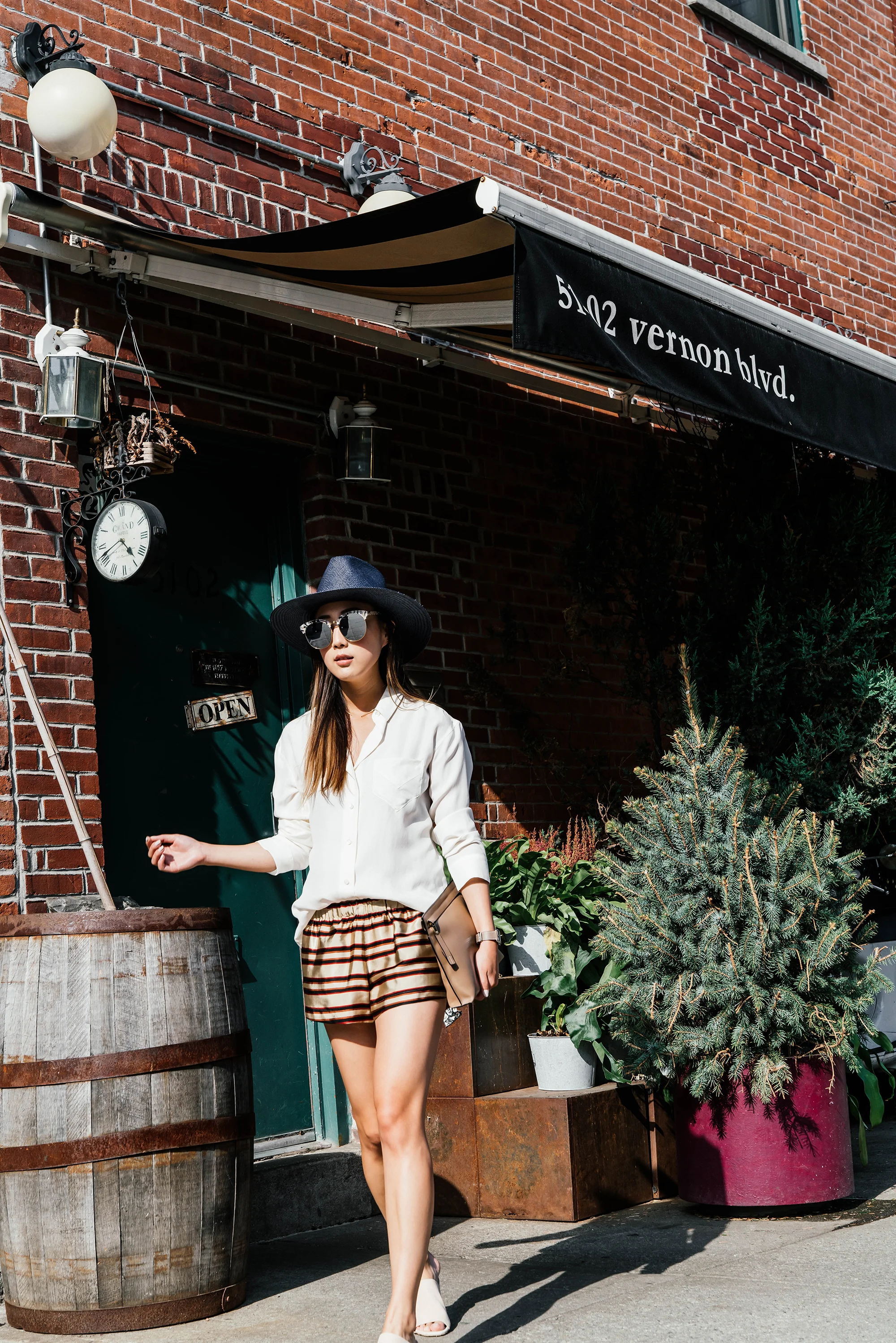 Equipment Top, Dries Van Noten Shorts, Loewe Bag, Janessa Leone Hat, Gentle Monster Sunglasses, Hermes Watch