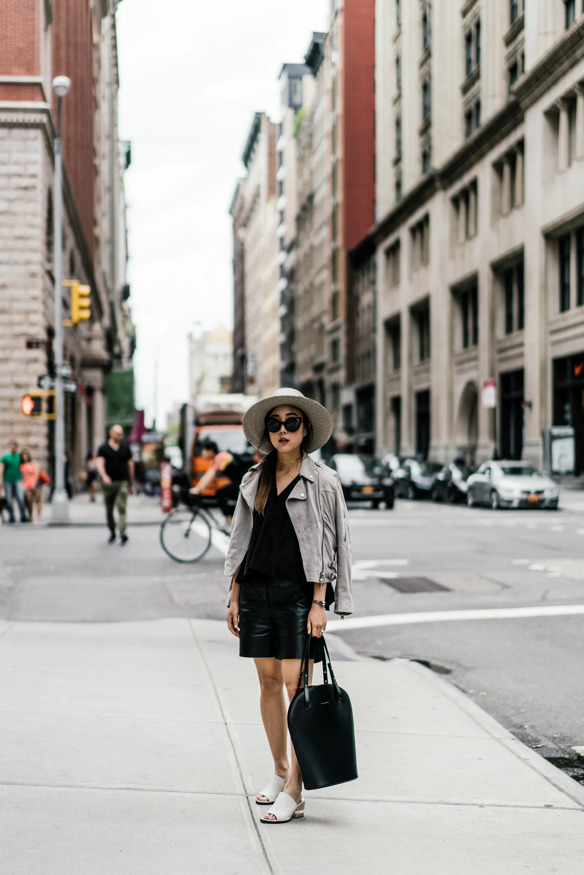 AllSaints Jacket, Simon Miller Top, COS Pants, Céline Shoes, Loewe Bag, Fendi Sunglasses