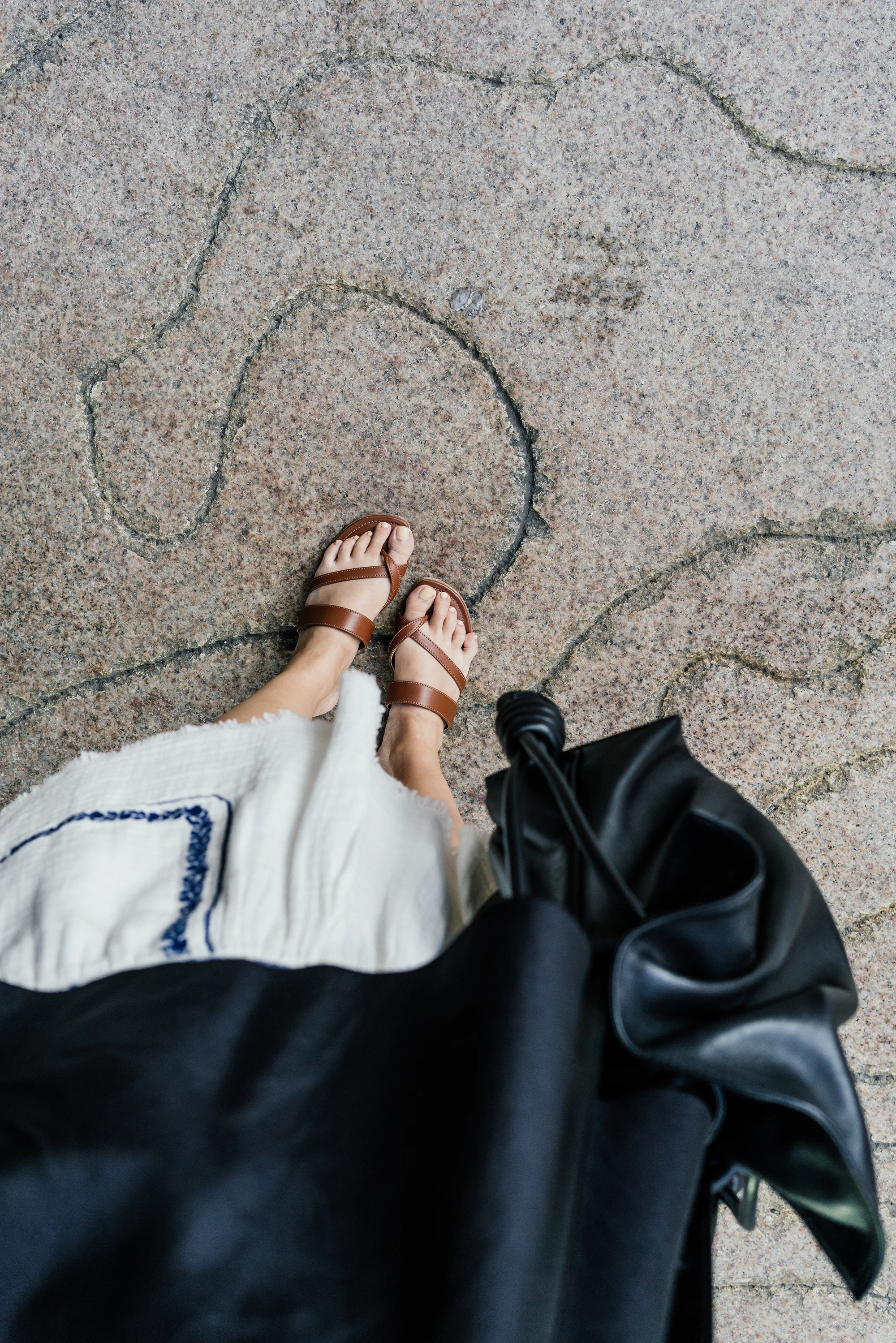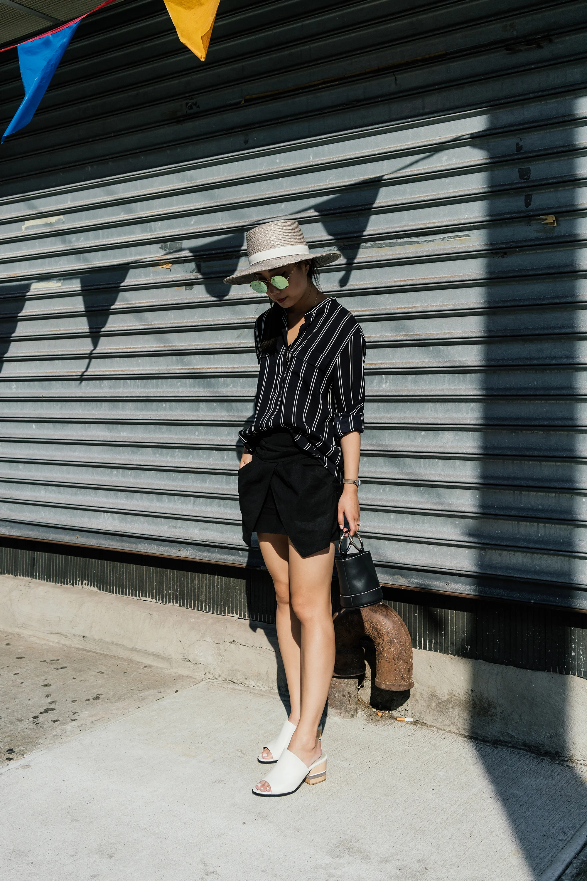 Tomorrowland Top, Isabel Marant Skirt, Dear Frances Sandals, Simon Miller Bag, Gentle Monster Sunglasses, Janessa Leone Hat