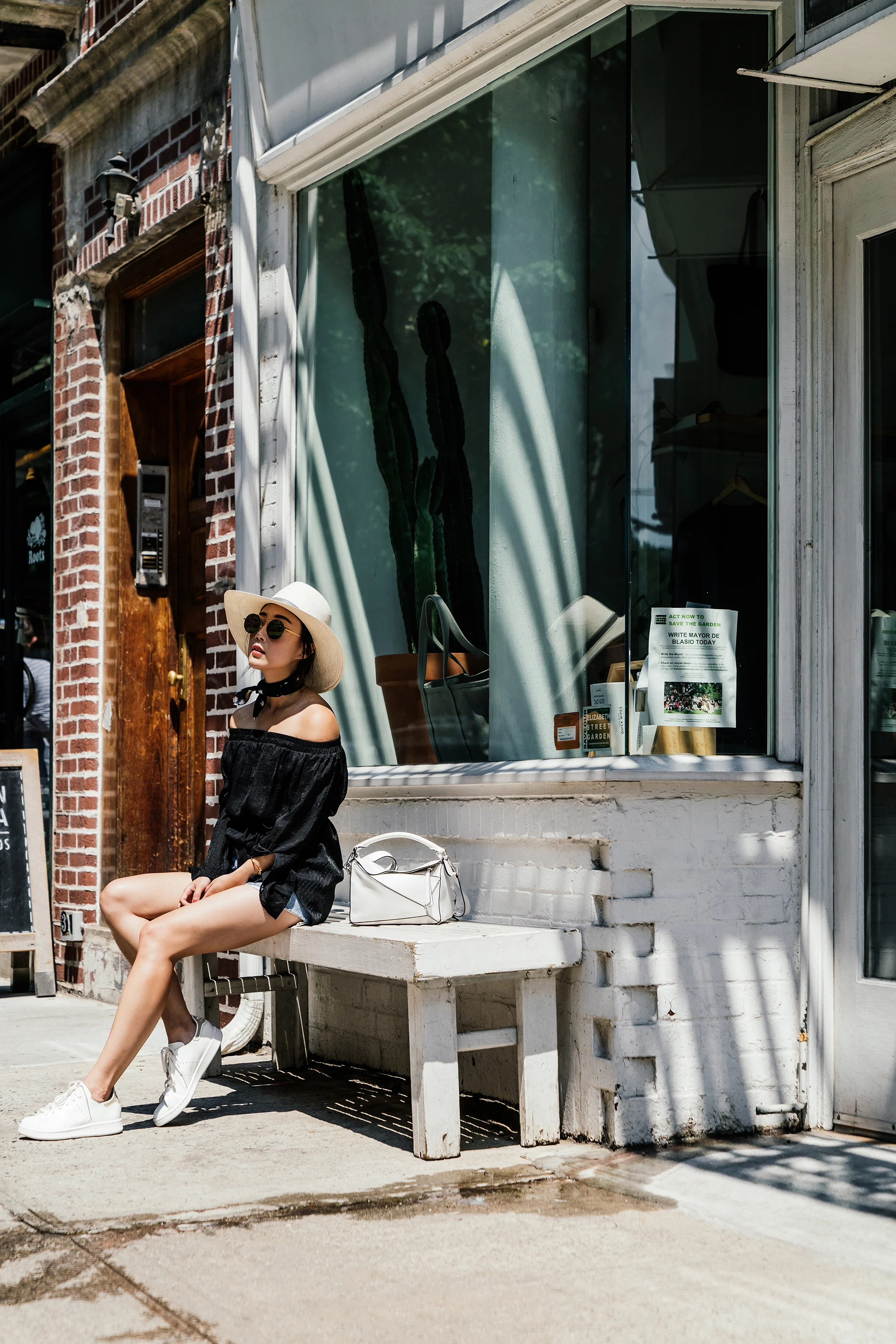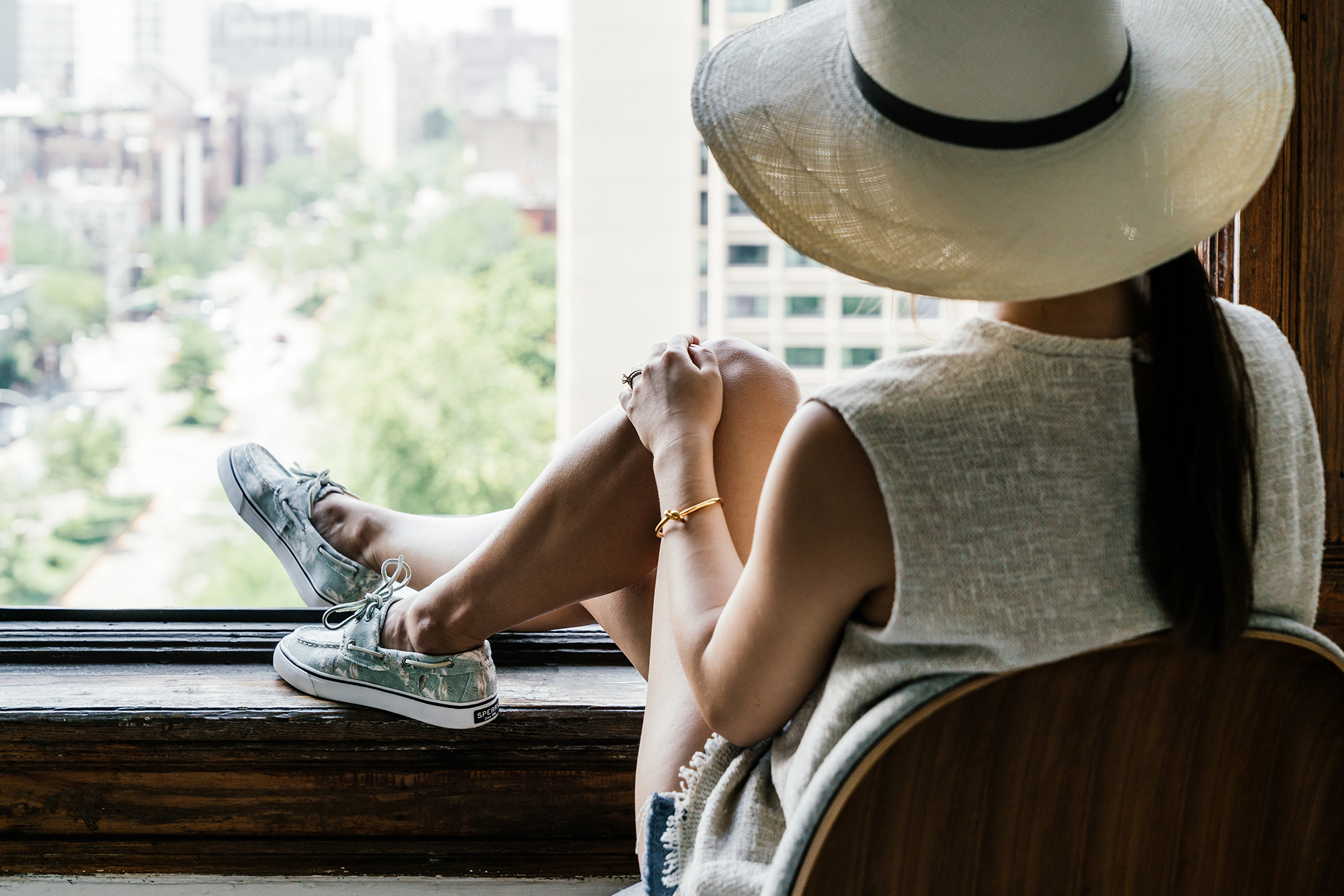 Simon Miller Top, Re/Done Denim, Sperry Shoes, Janessa Leone Hat, Céline Cuff