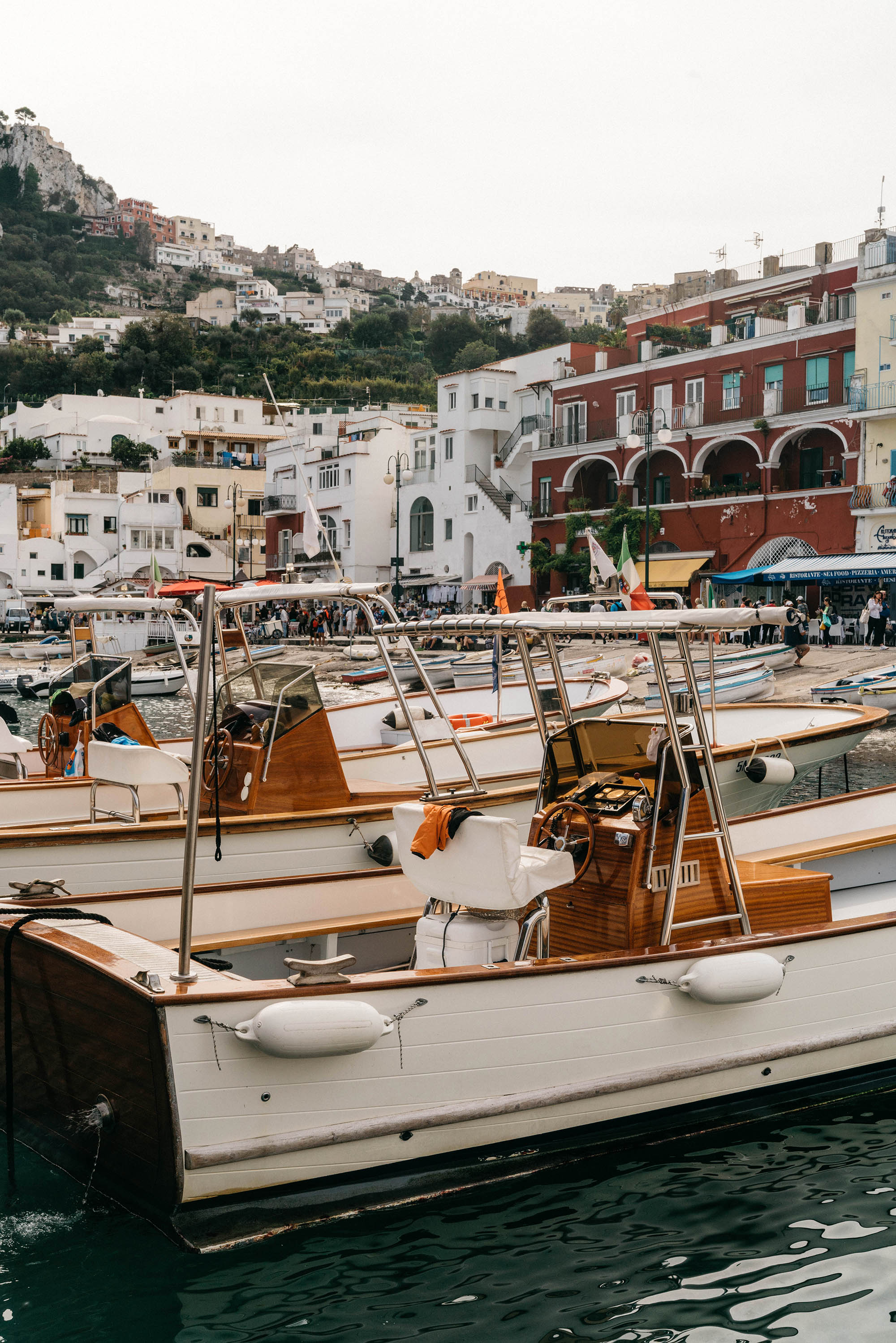 Capri was a special little island that we visited our last day on the Amalfi Coast. We took a ferry in from Positano (about a 30 minute ride) and spent a few hours exploring. I have to say it was a bit more touristy than what I was expecting, but it was fun walking around nonetheless. Capri worked our calf muscles, too, but there were also these open-top taxis, as well as the anacapri (railway) that could take you up or down the island. The first thing we did when we arrived though, was take a 2-hour boat ride around the island. It's a little confusing how to buy tickets, but I think essentially you can buy them from any of the vendors selling them by the dock, that is the same ticket for the same tour. I also thought 2-hours was a short ride, but by the end, I was definitely ready to get off (haha). The Blue Grotto, a sea cave where the water looks electric blue due to the sunlight passing through an underwater cave, was really cool and different from anything I've seen before.