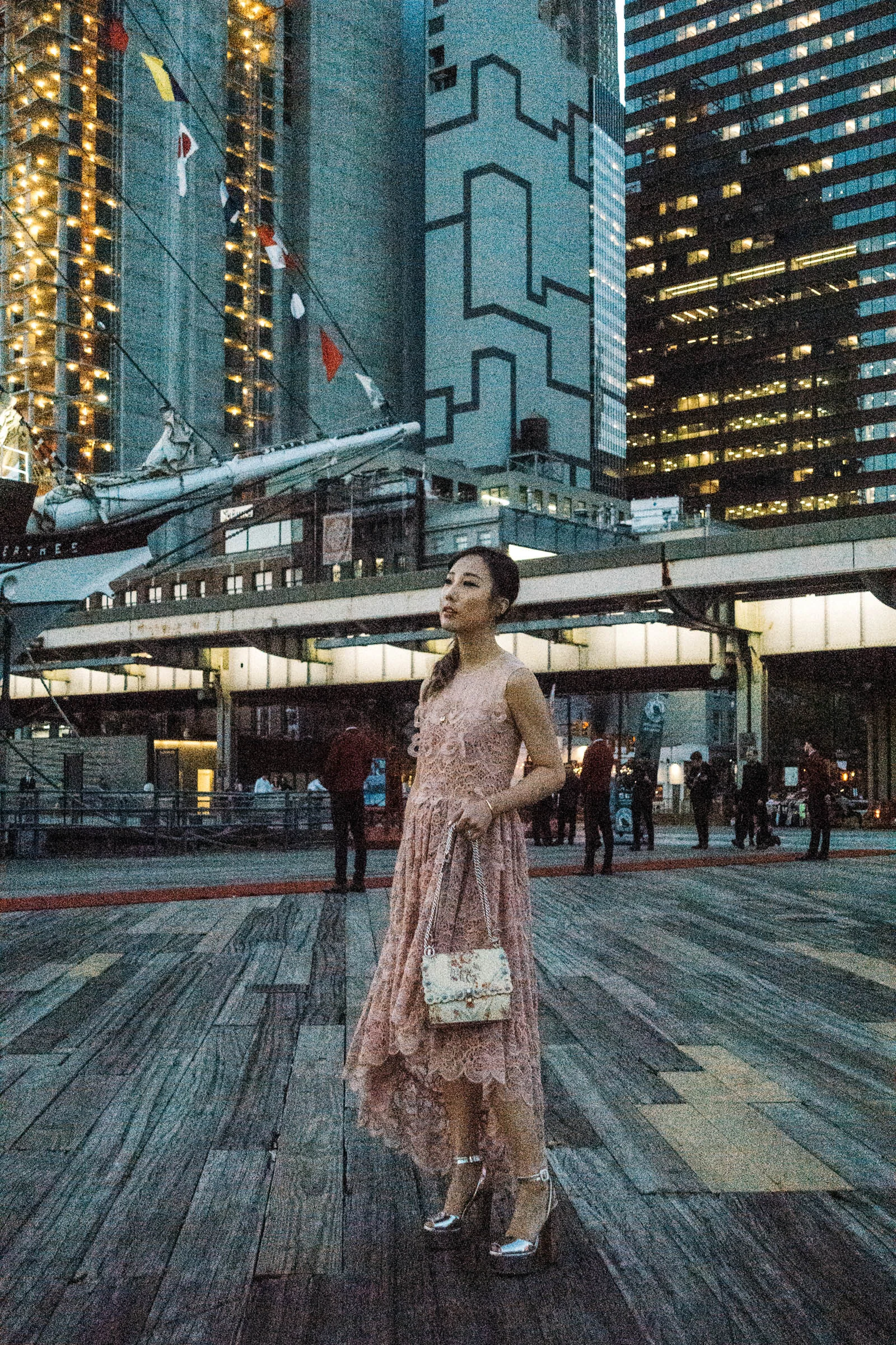 Sezane Dress, Chanel Bag, Everlane Boots, CVC Stones Necklace
