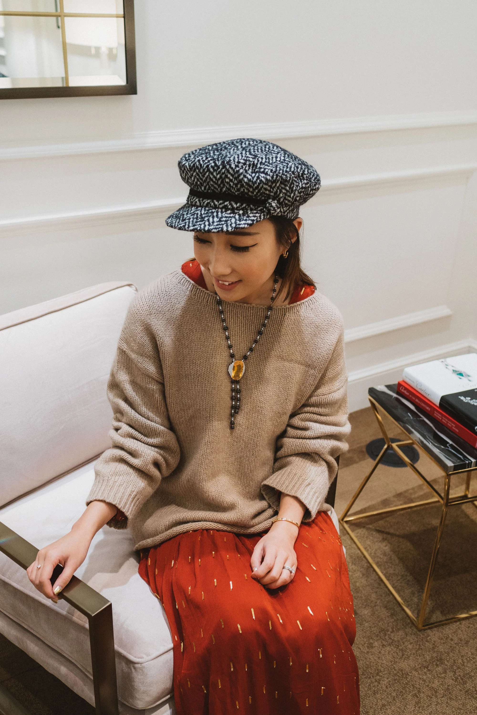 Eugenia Kim Hat, Yvonne Kone Heels, Carl Aubock Egg, Bobbi Brown Palette, Vita Fede Earrings