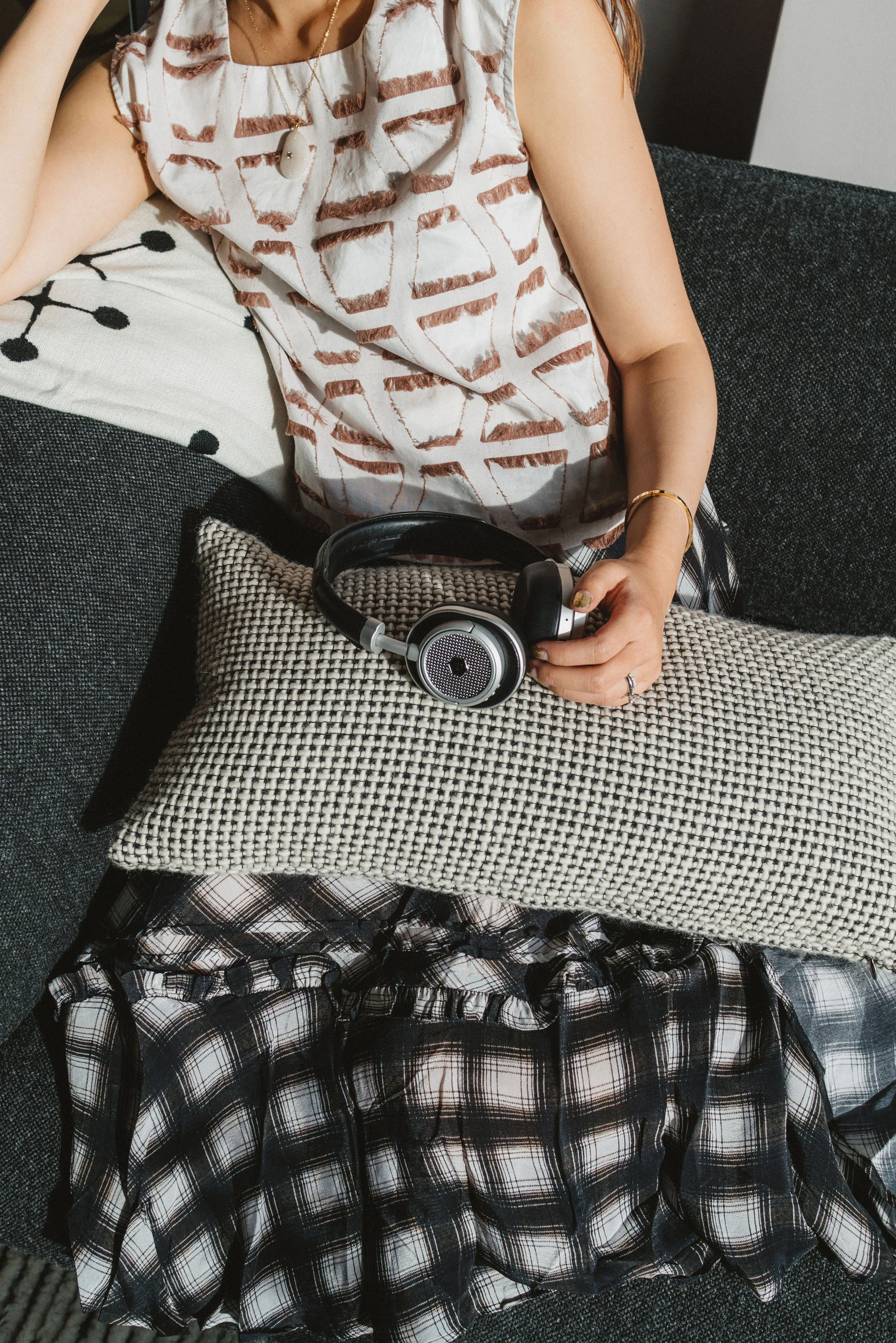 Where Mountains Meet Top, Preen Line Skirt, Master & Dynamic Headphones