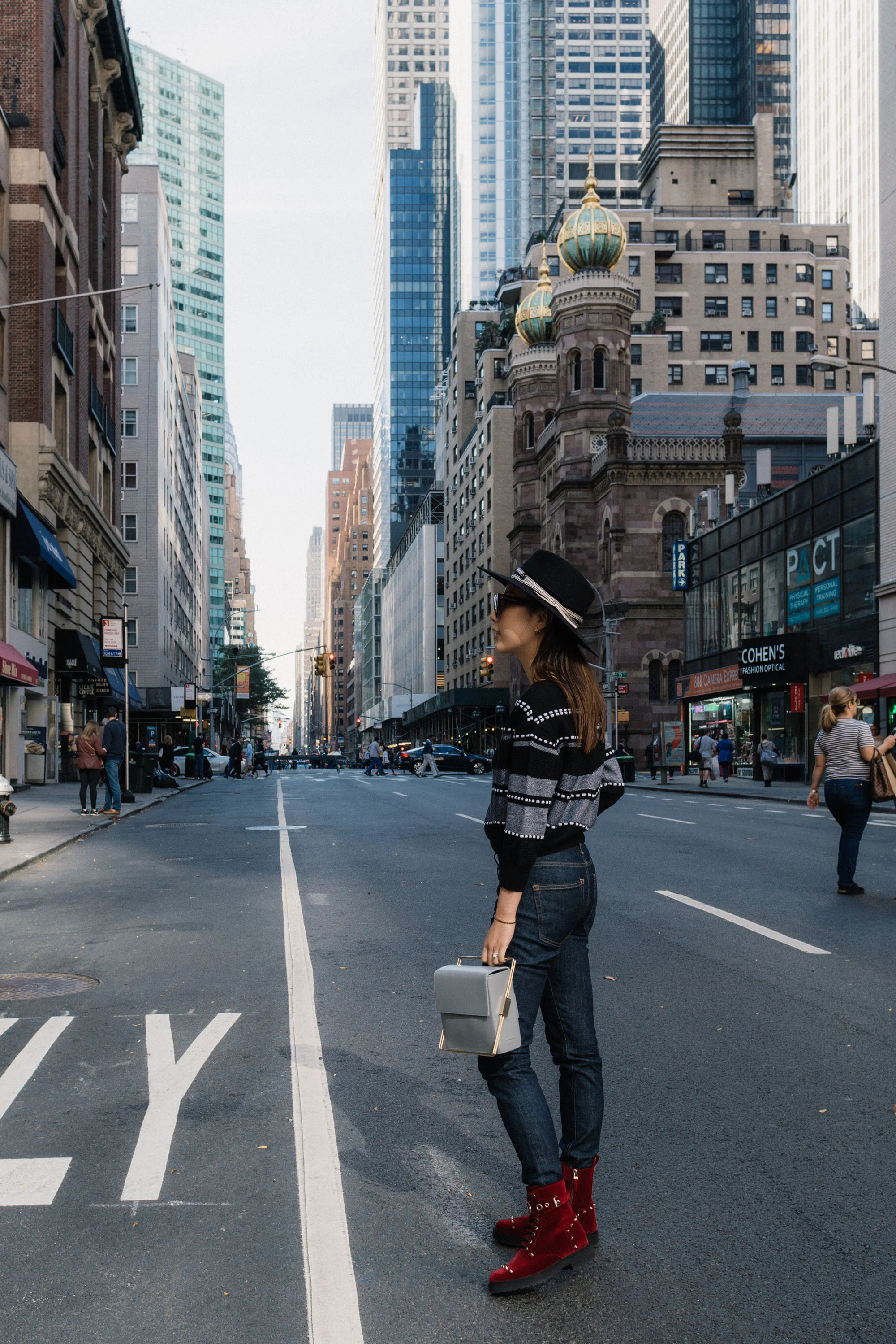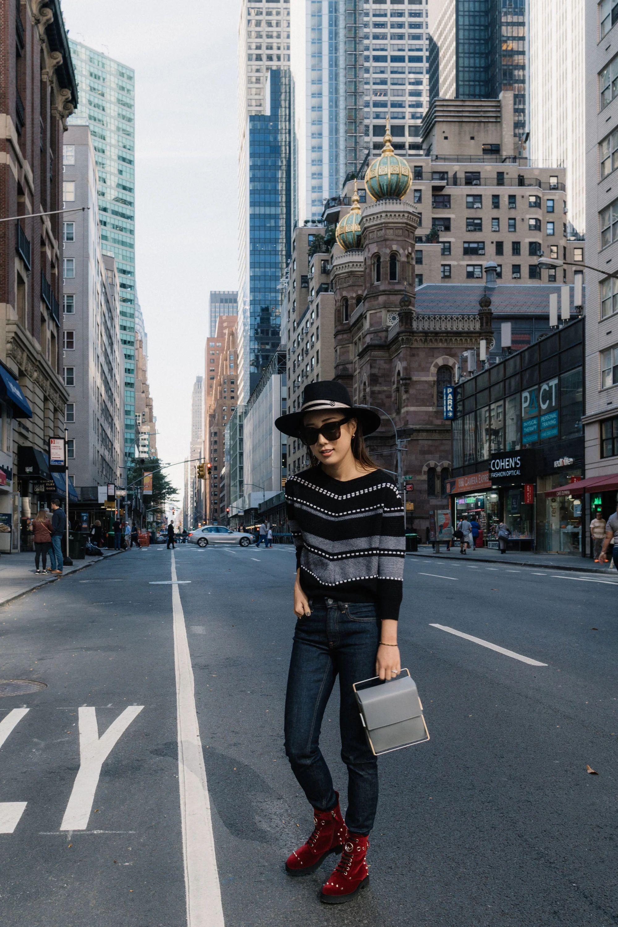 Where Mountains Meet Top, Everlane Denim, Lautem Bag, Fendi Boots, Maison Michel Hat