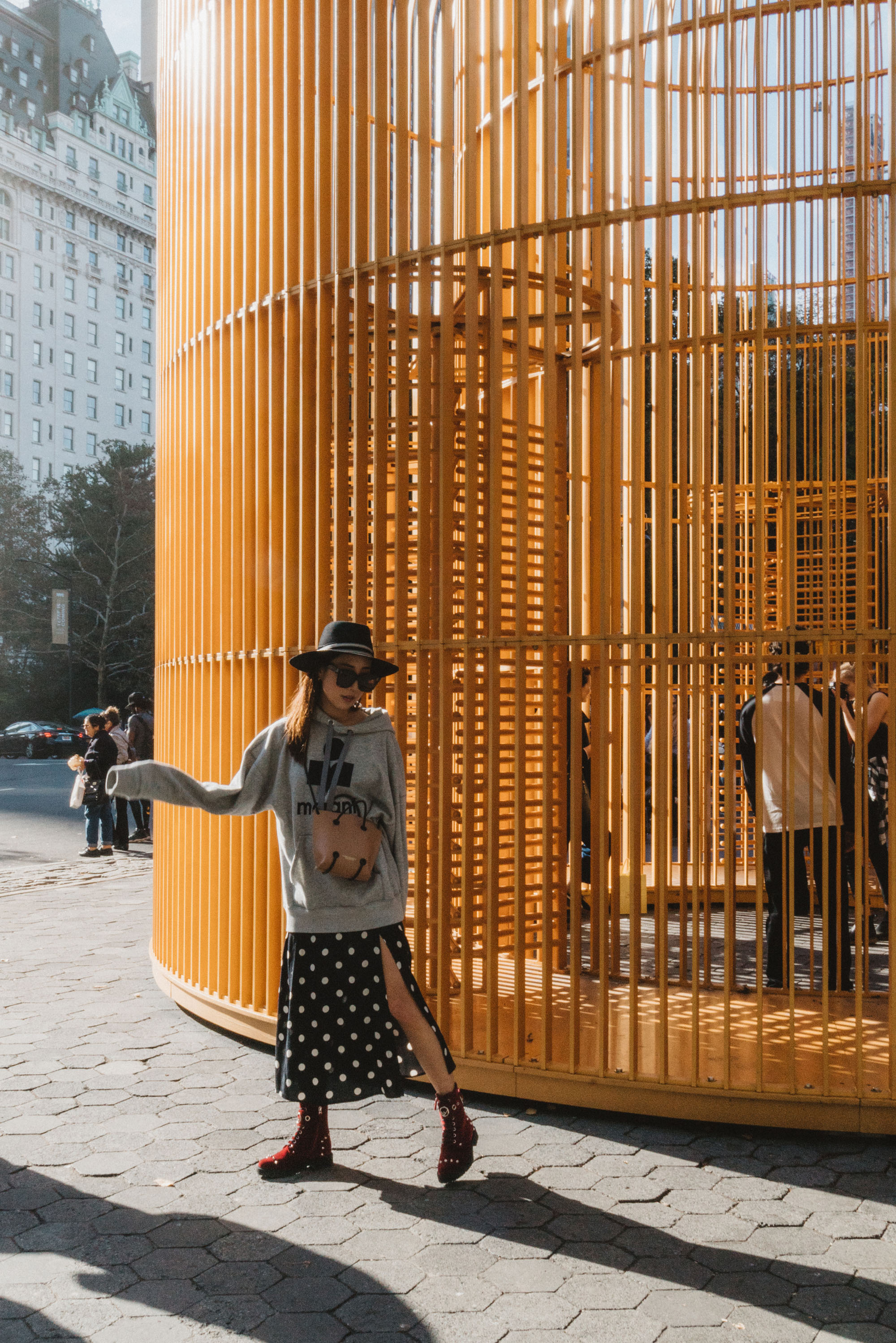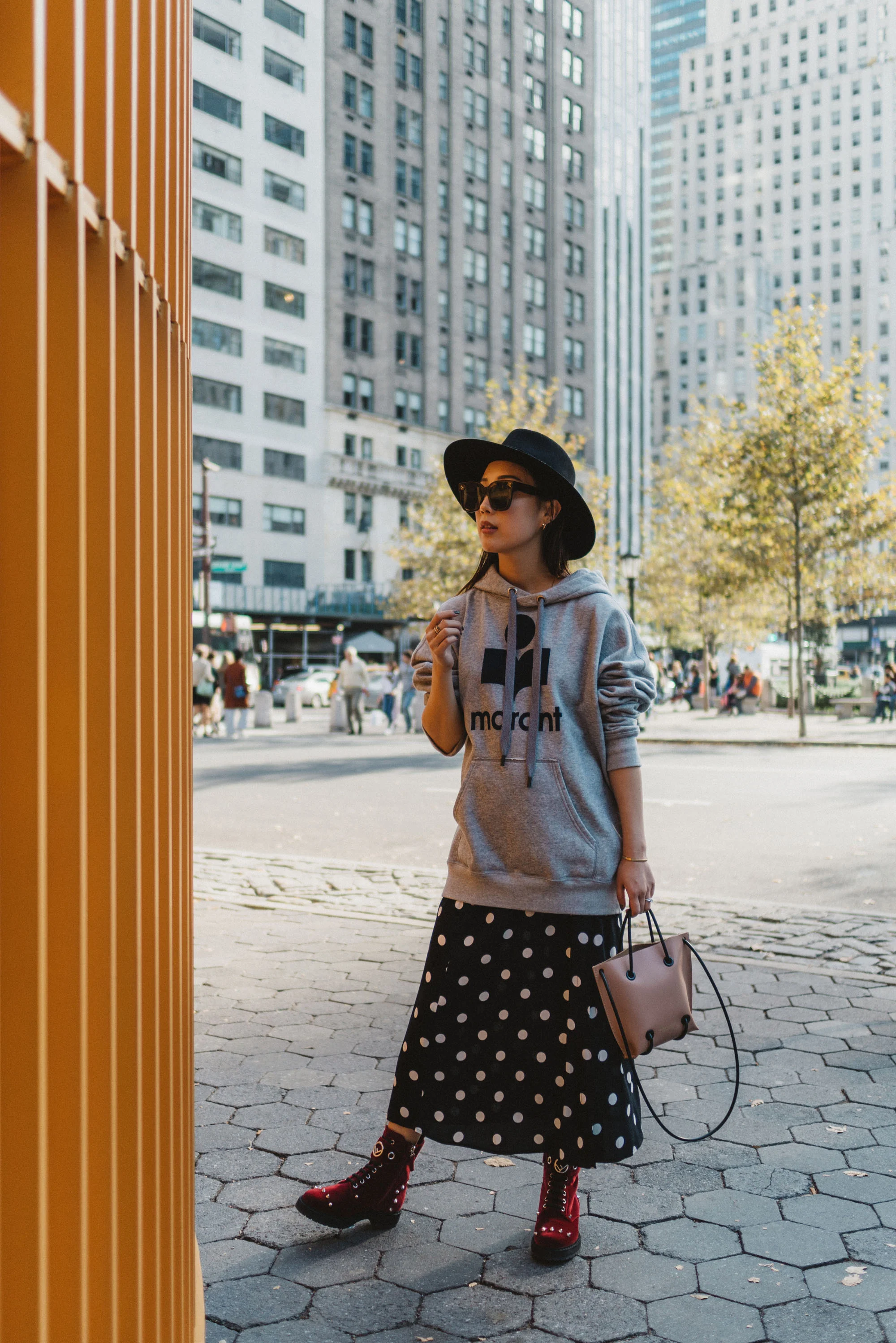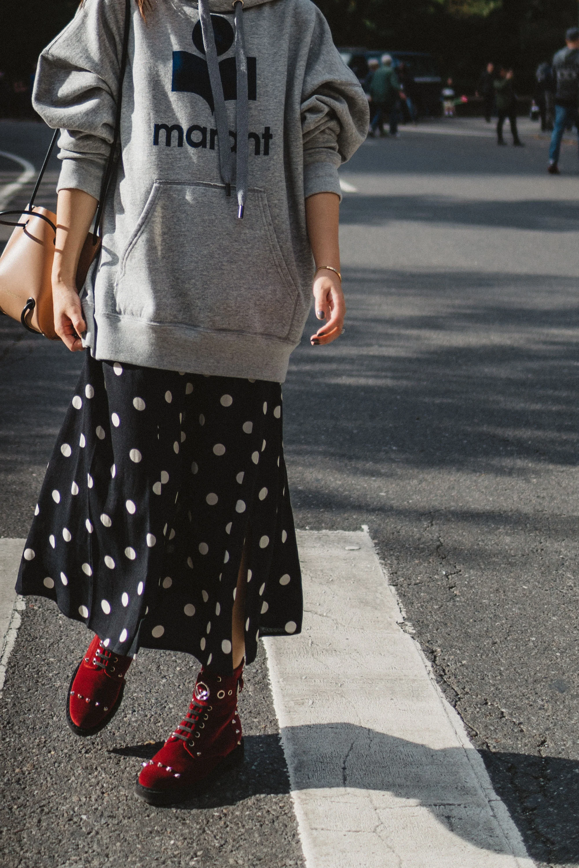 Isabel Marant Hoodie, Reformation Skirt, Fendi Boots, Kozha Numbers Bag