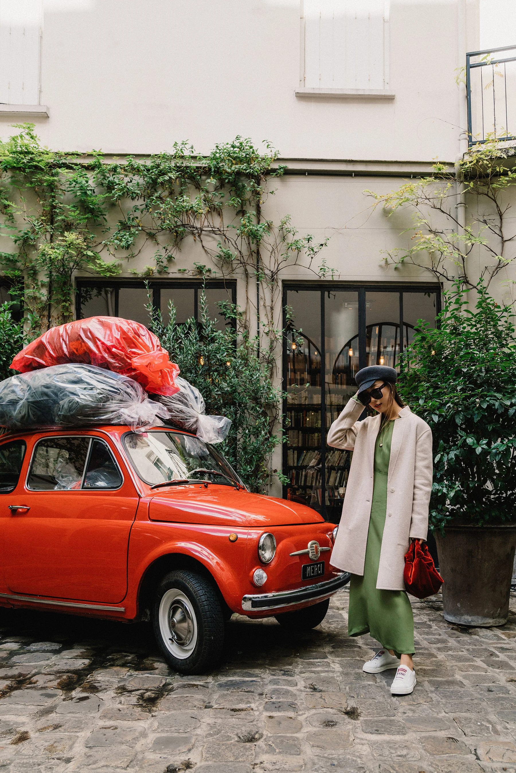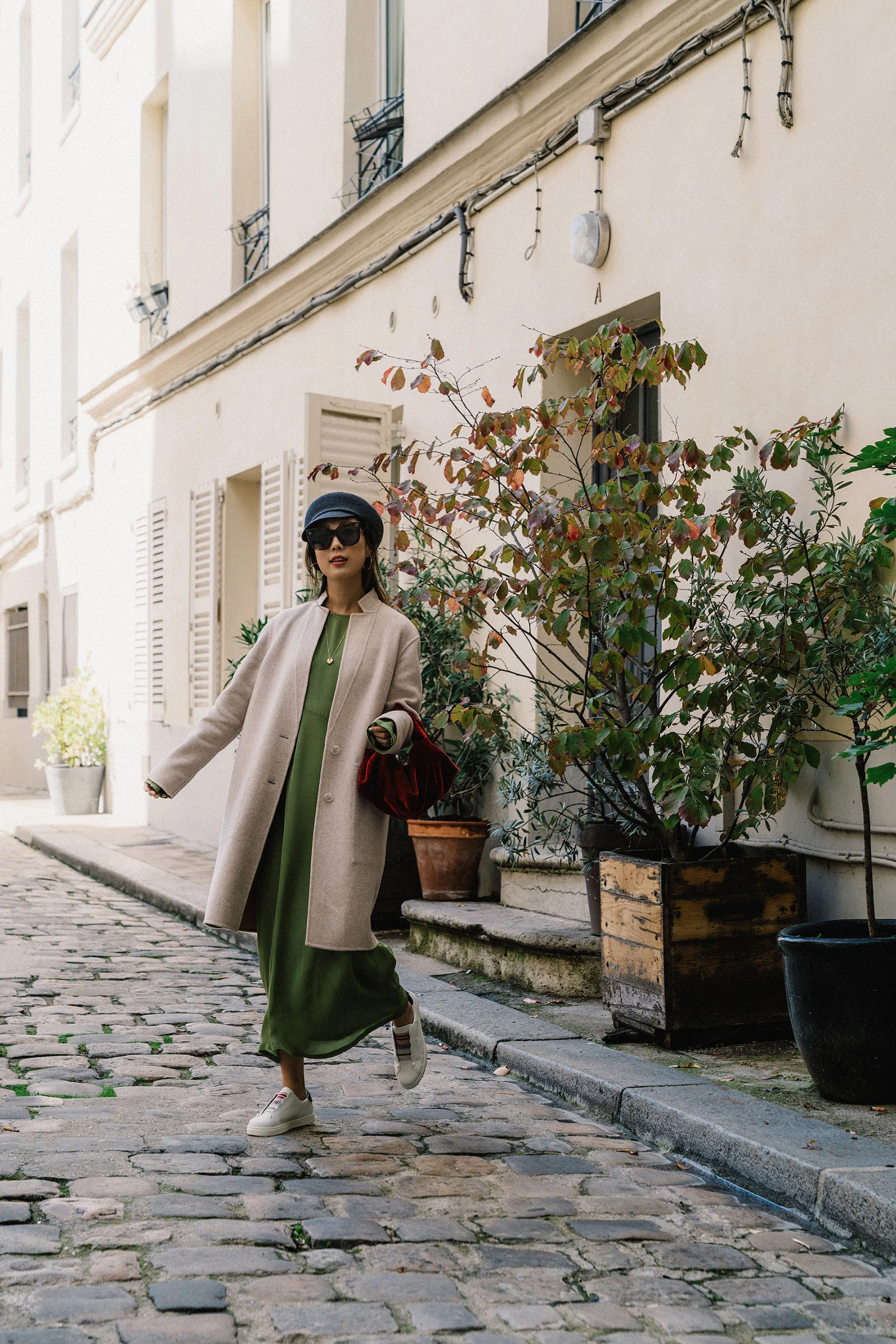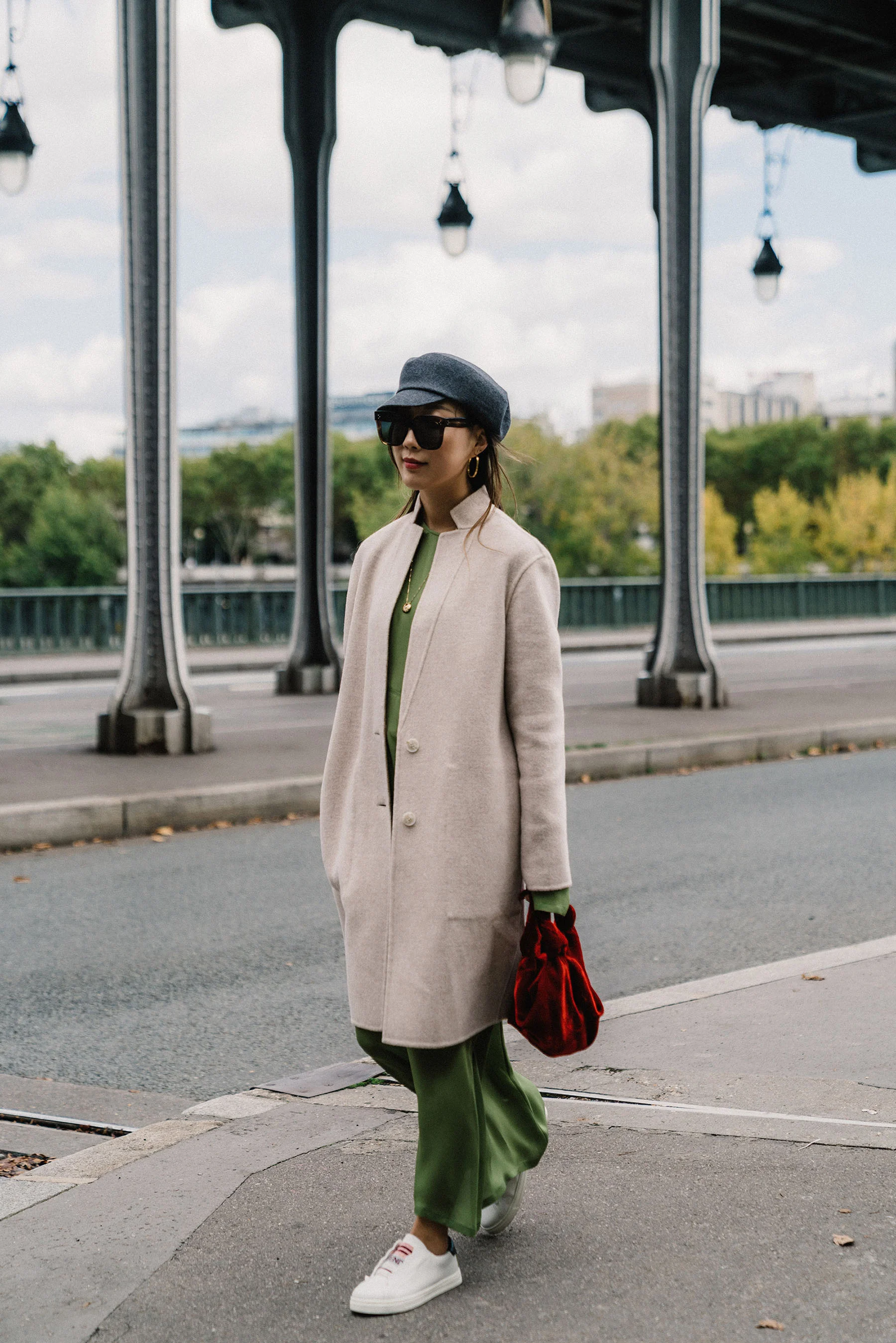 Theory Jacket, Yune Ho Dress, Fendi Sneakers, The Row Bag, Hermes Hat, Céline Sunglasses
