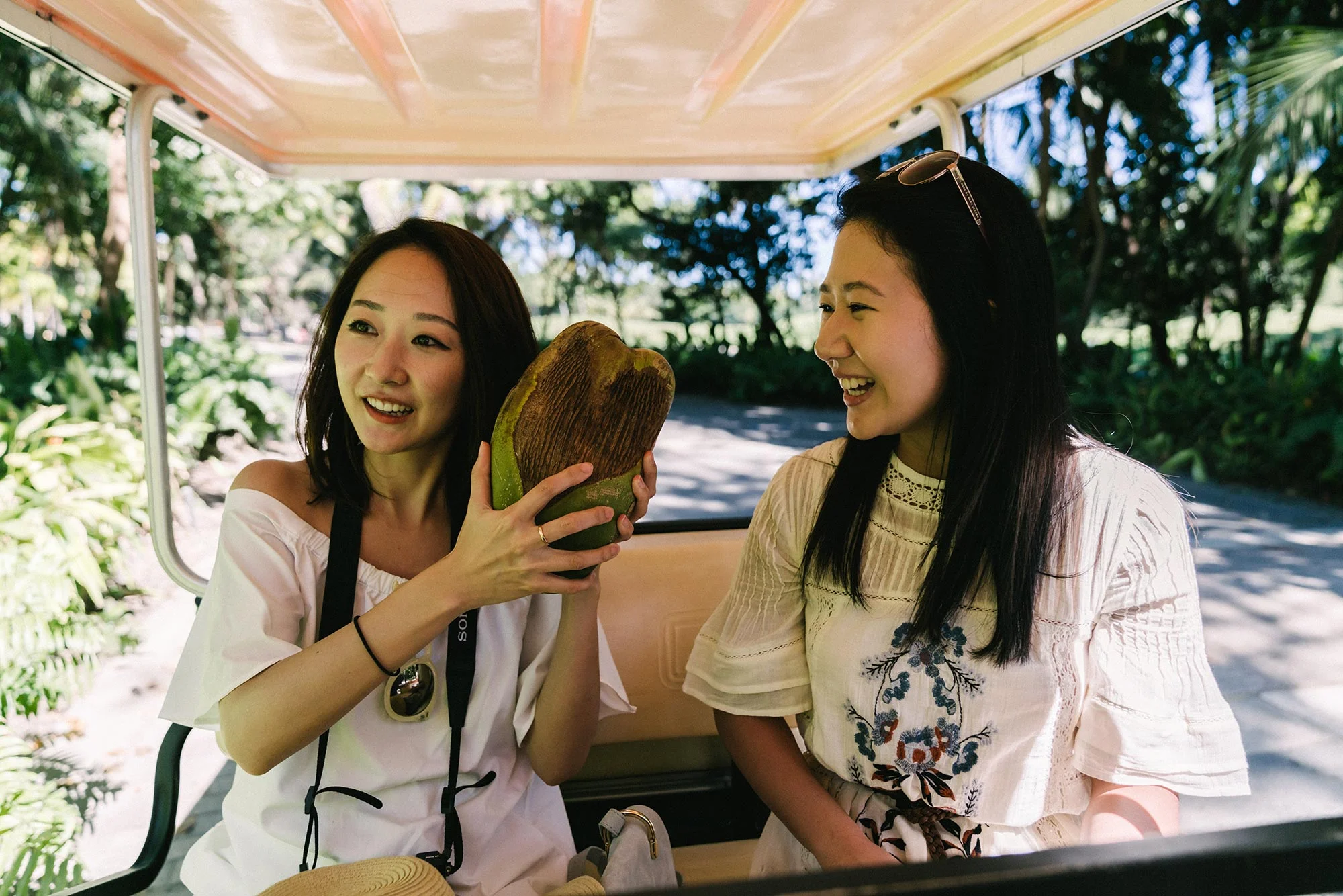 We found a coconut in the woods that was actually fresh and edible! Fran was reallllly excited about it :)