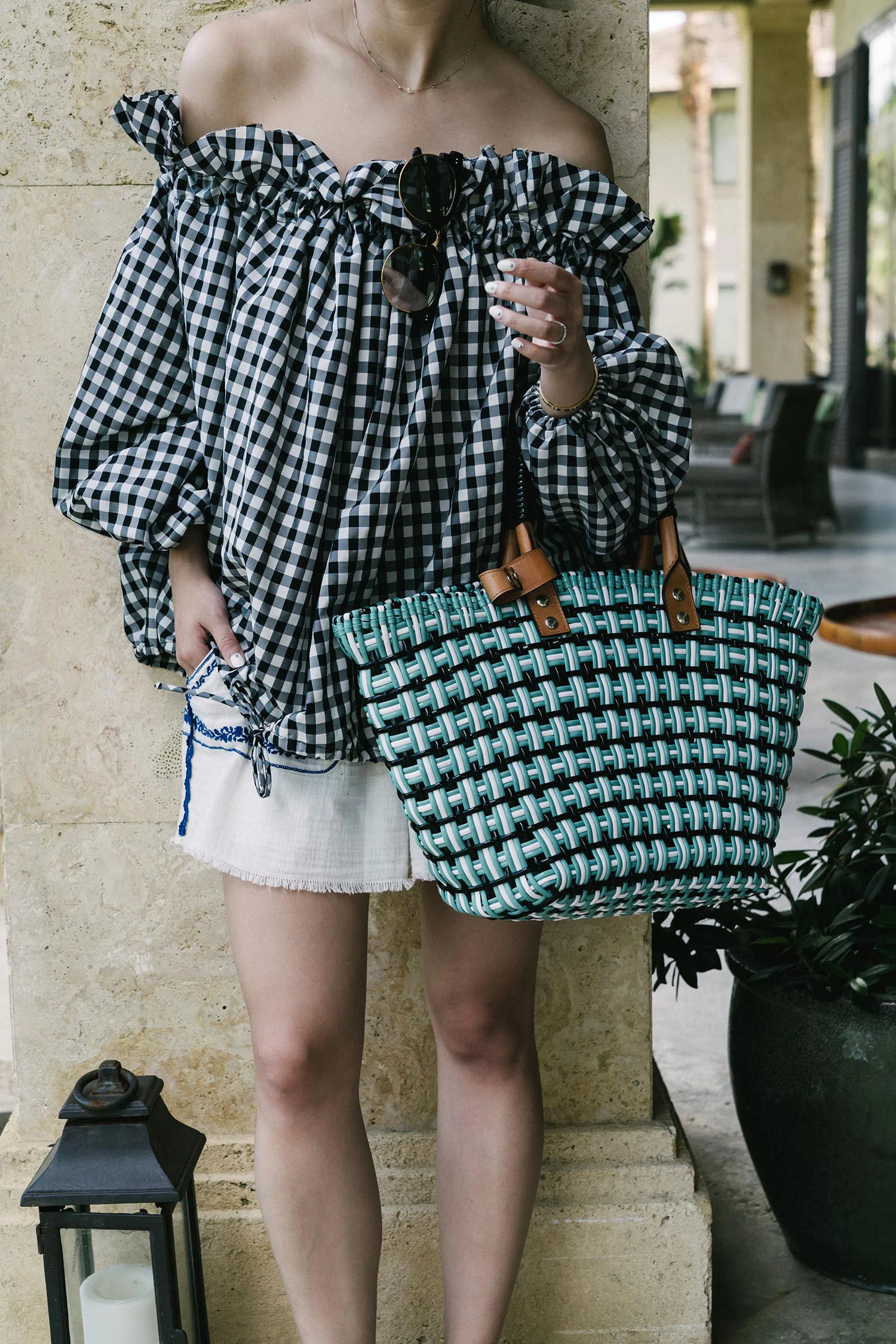 Marques' Almeida Top, Isabel Marant Skirt, Balenciaga Bag, Vince Shoes, Janessa Leone Hat, Gentle Monster Sunglasses, Wwake Necklace