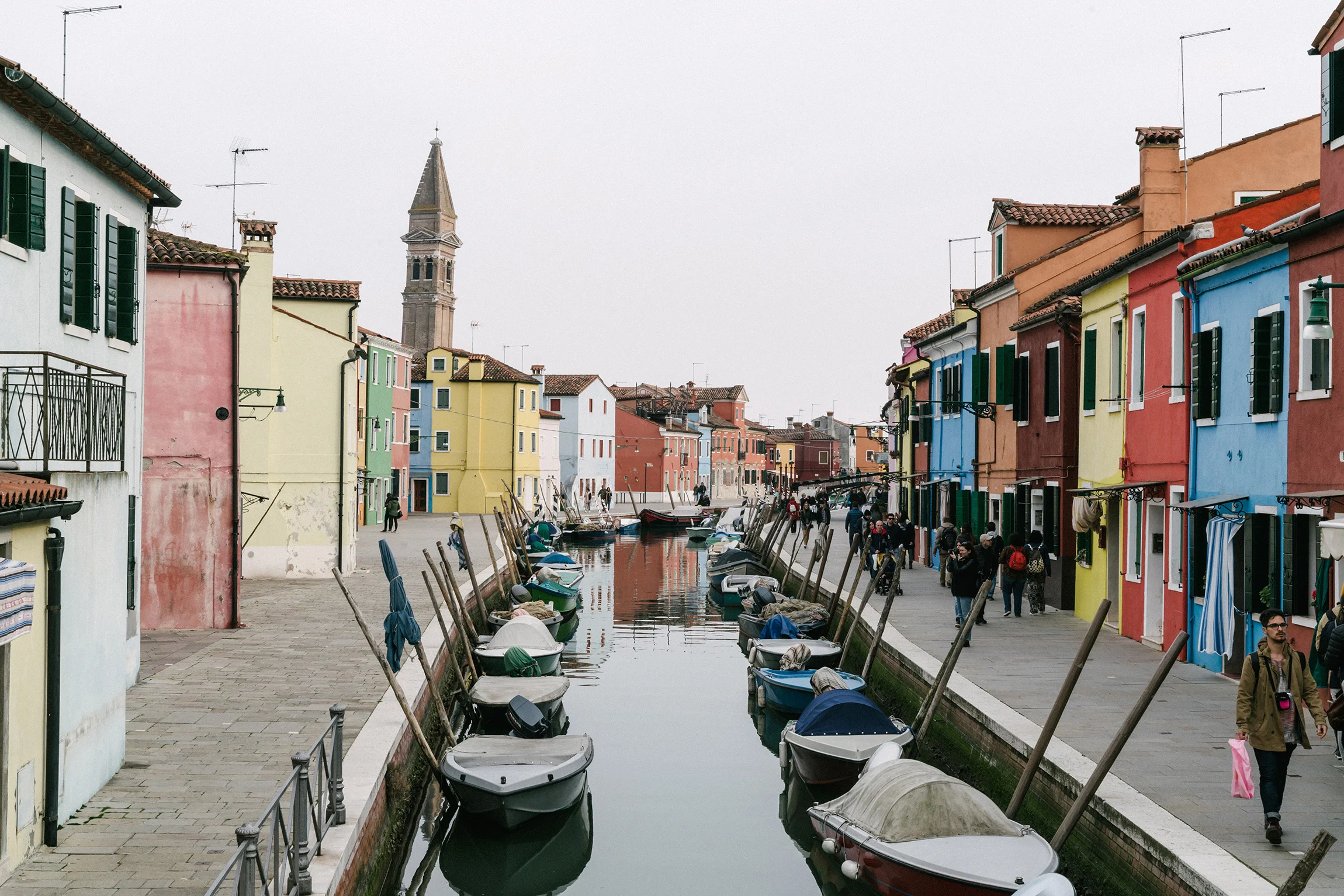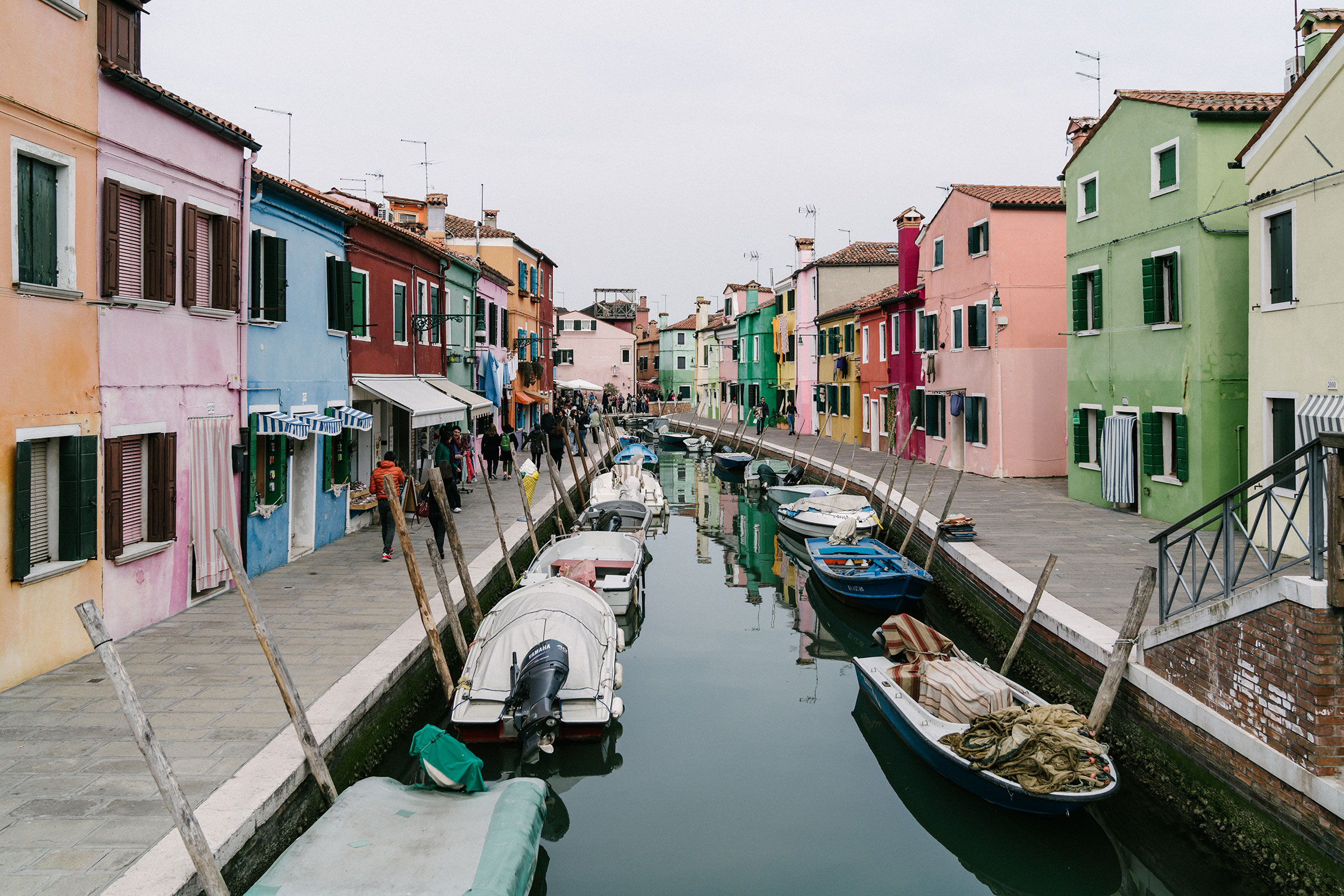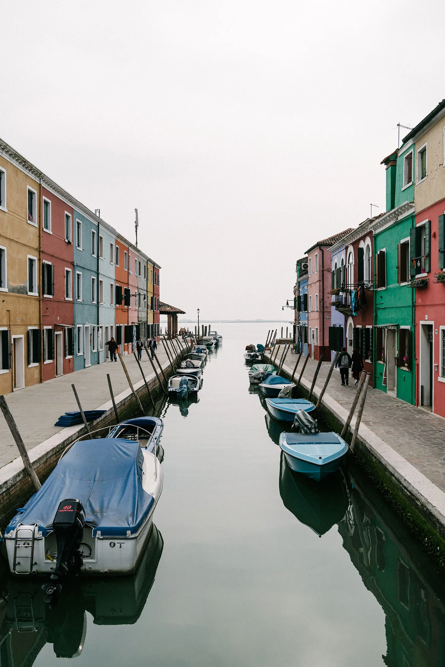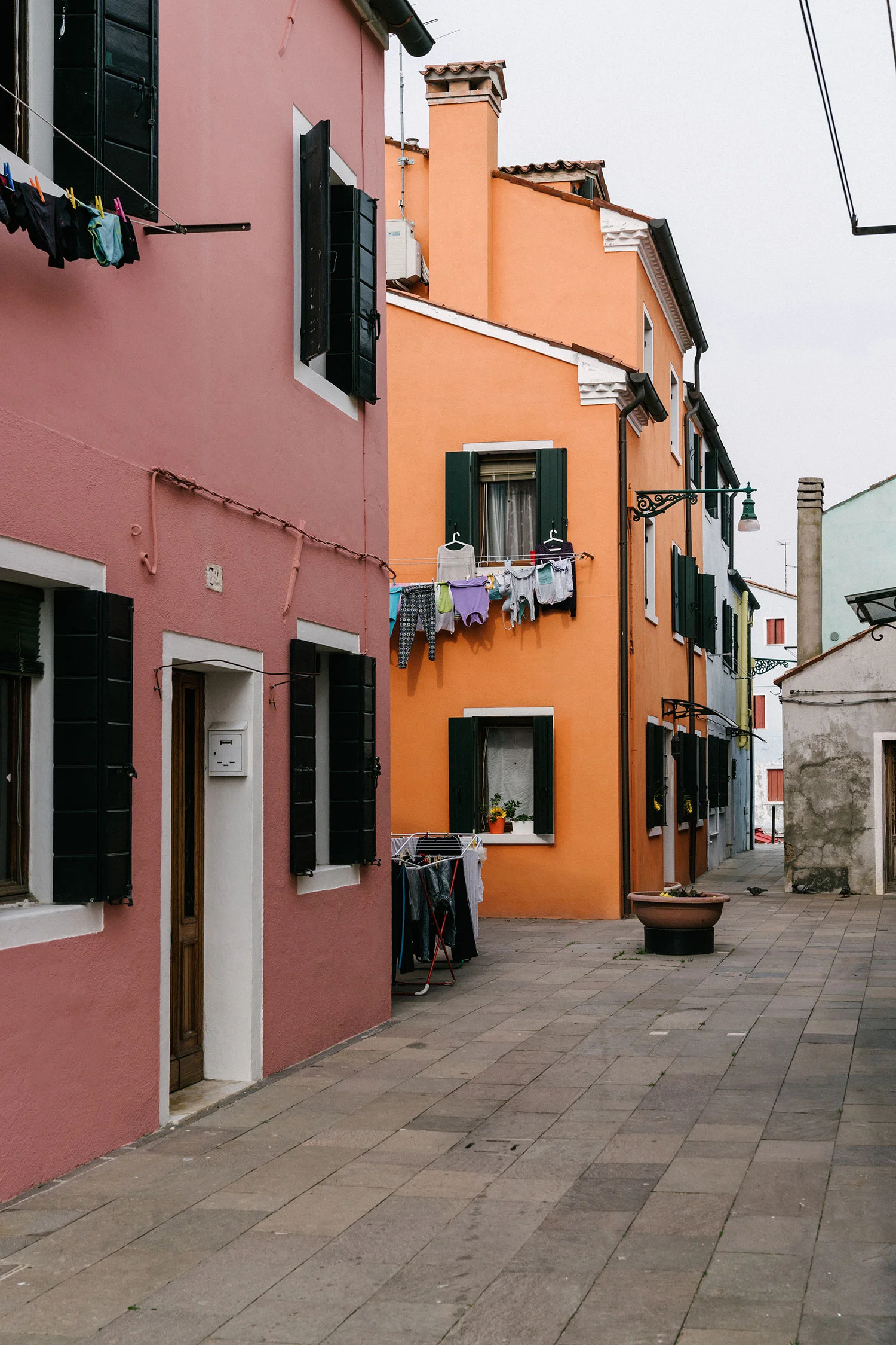 A short ferry ride (about 40 minutes) from Venice to the little island of Burano where we spent a few hours exploring one afternoon. The weather was cloudy, but the bright colors of the town really added a bit of cheer to our day. We didn't have time to stop by Murano (on the same ferry route to Burano, and much closer to Venice), but it's another small colorful island on the canal where glass-making is prominent, and hope to get a chance to visit next time.