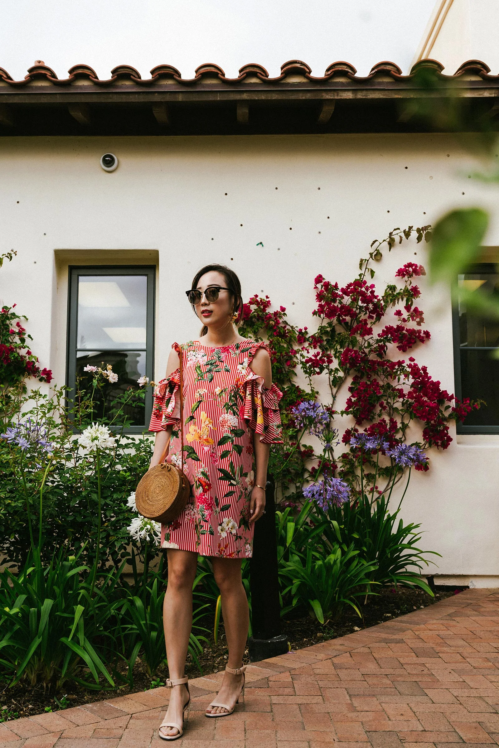 c/meo collective dress, Bembien Bag, Janessa Leone Hat, Dear Frances Sandals