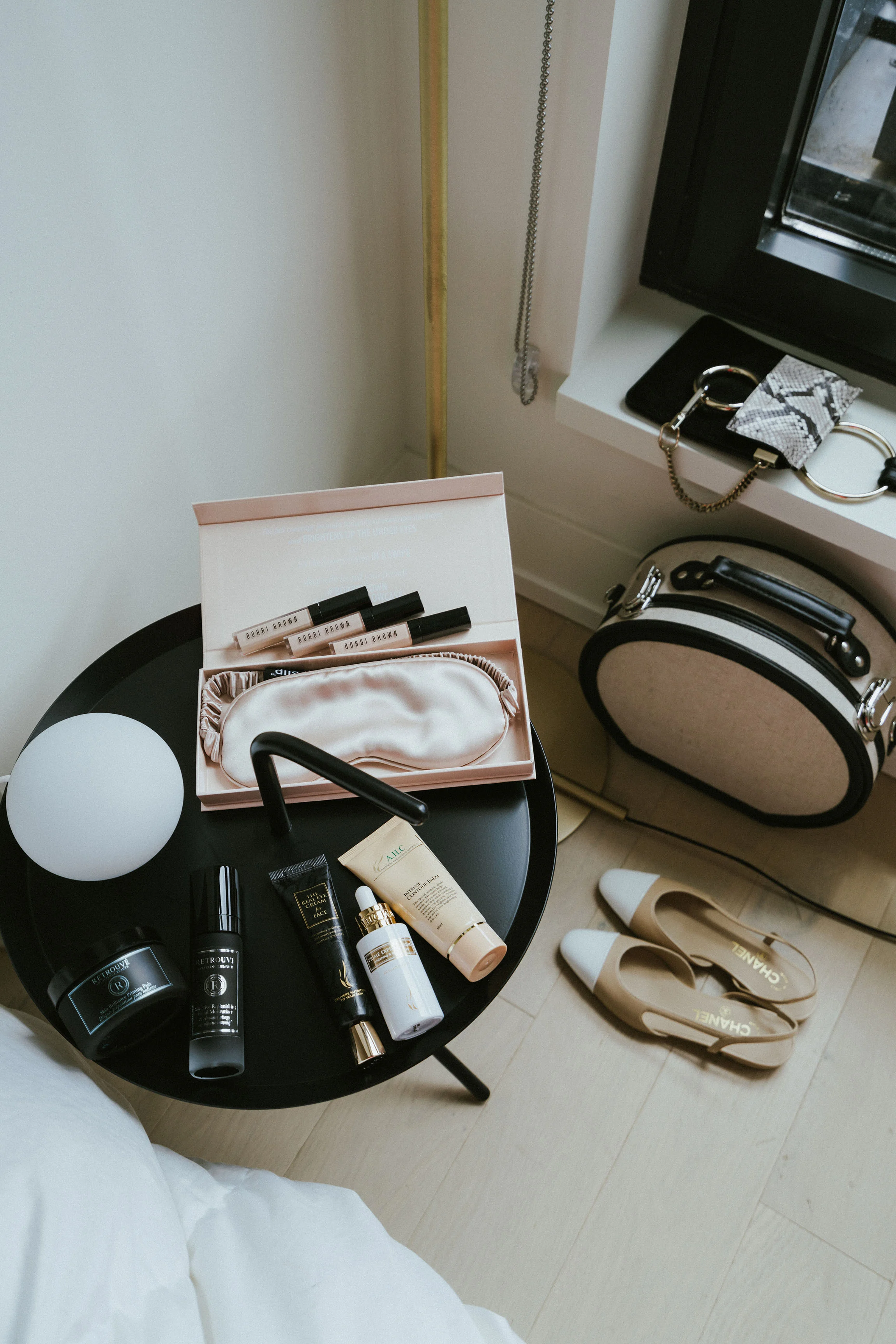 Retrouvé Skincare, A.H.C. Skincare, Bobbi Brown Concealer, Slip Eye Mask, Chanel Sandals, Steamline Luggage, Chloé Bag