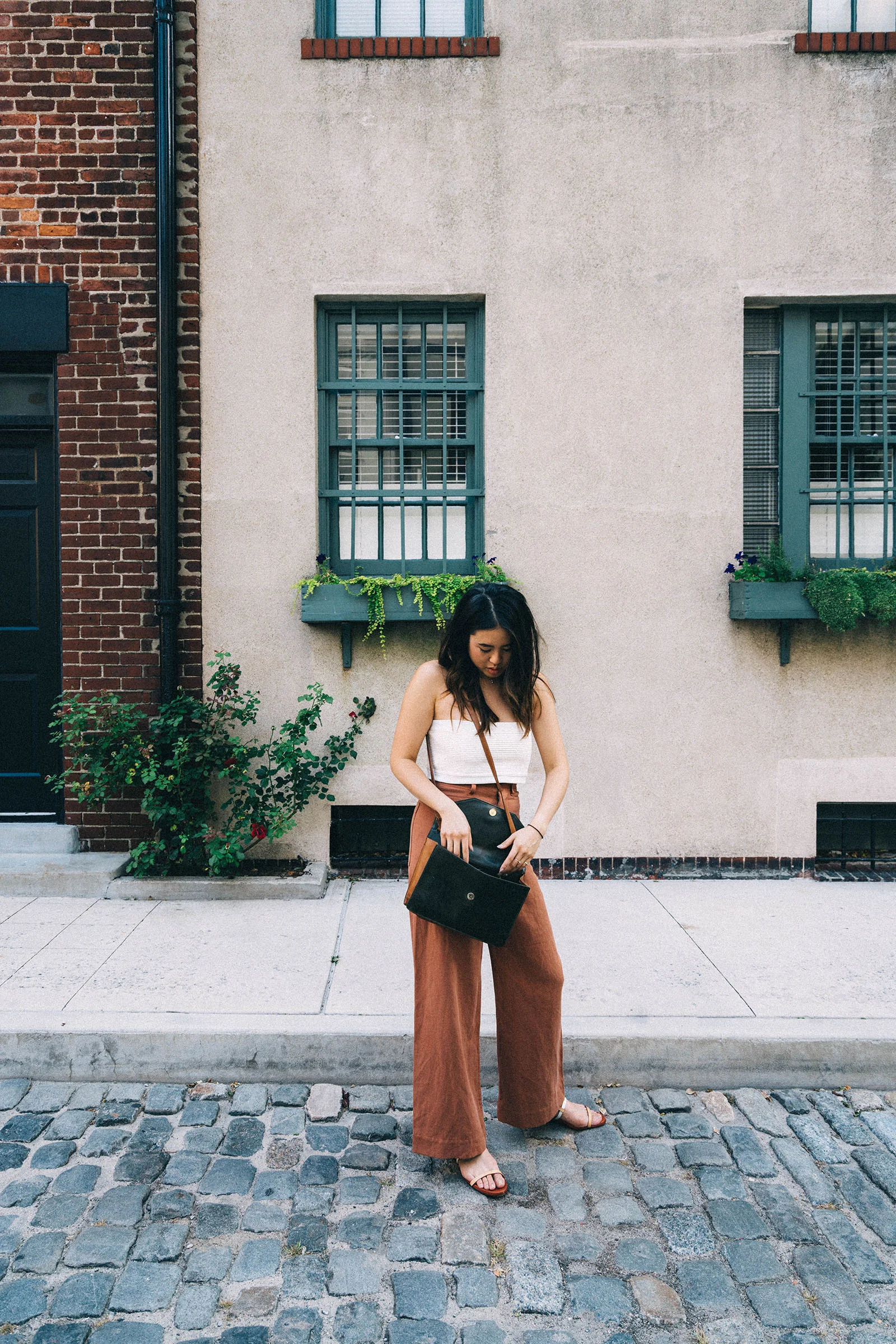 Enfold Top, COS Skirt, Seven All Around Sandals, Loewe Bag
