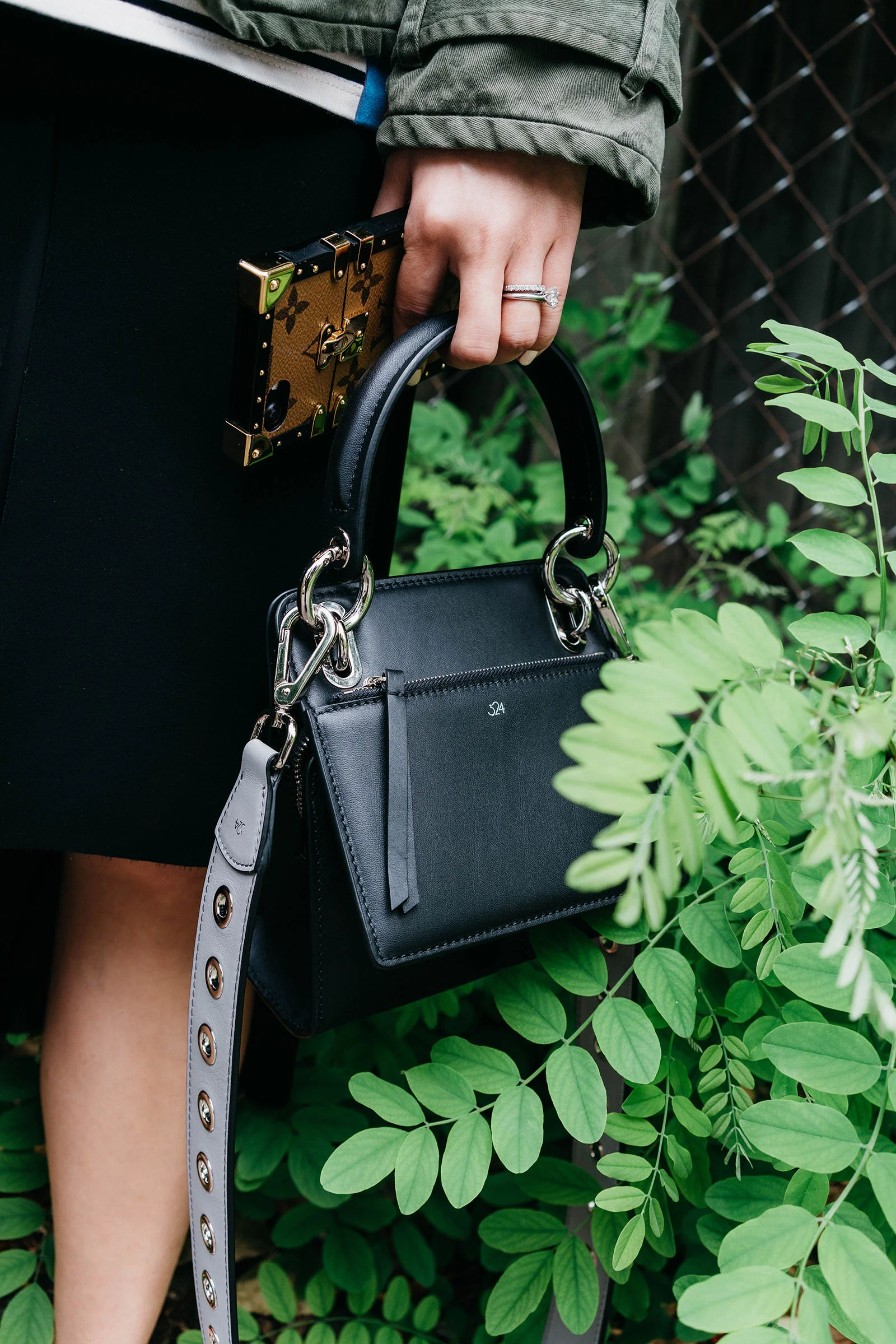 NSF Jacket, Kule Stripes Top, COS Skirt and Shoes, 324 New York Bag and Strap