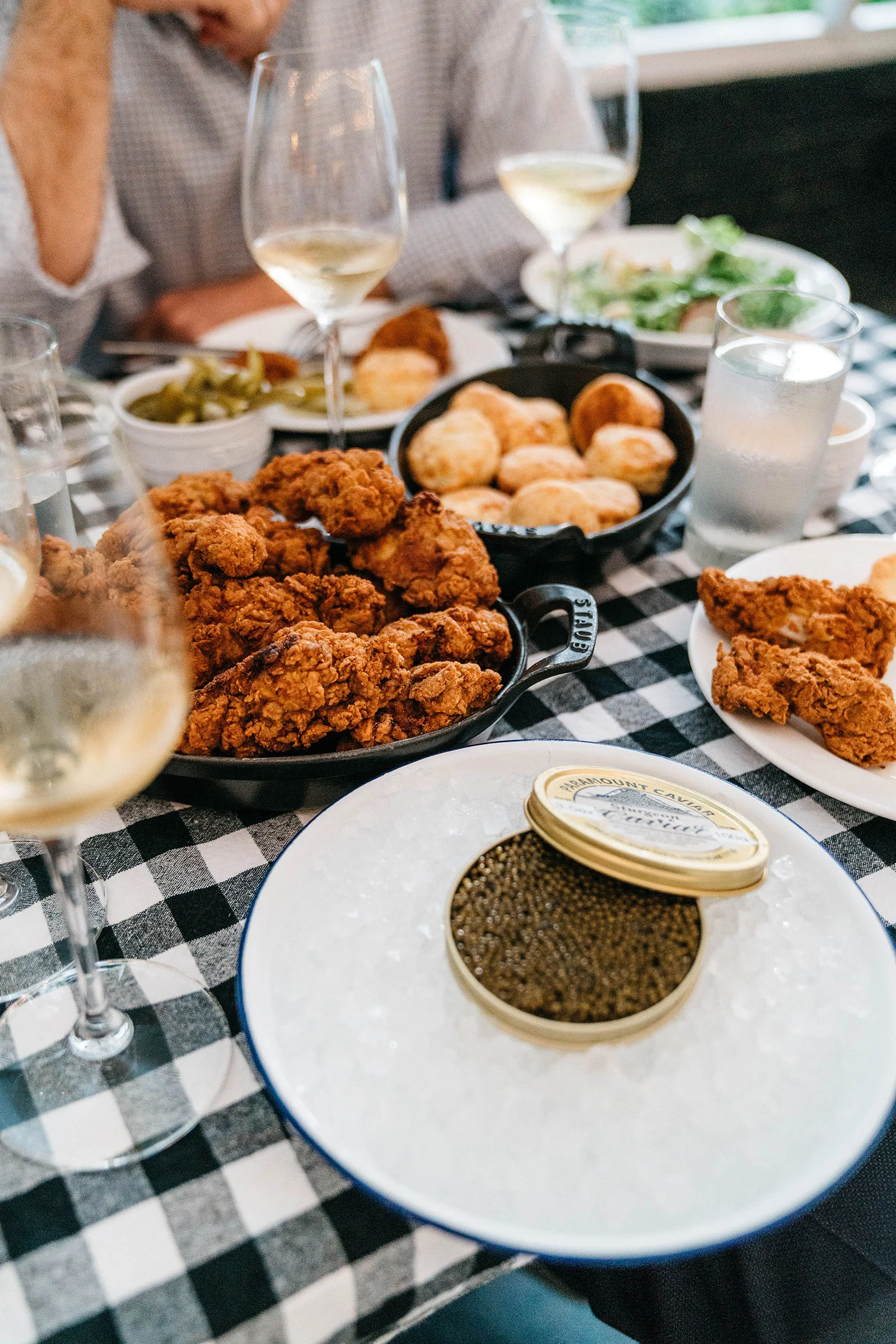 Fried chicken and caviar dinner w/ Dom Perignon