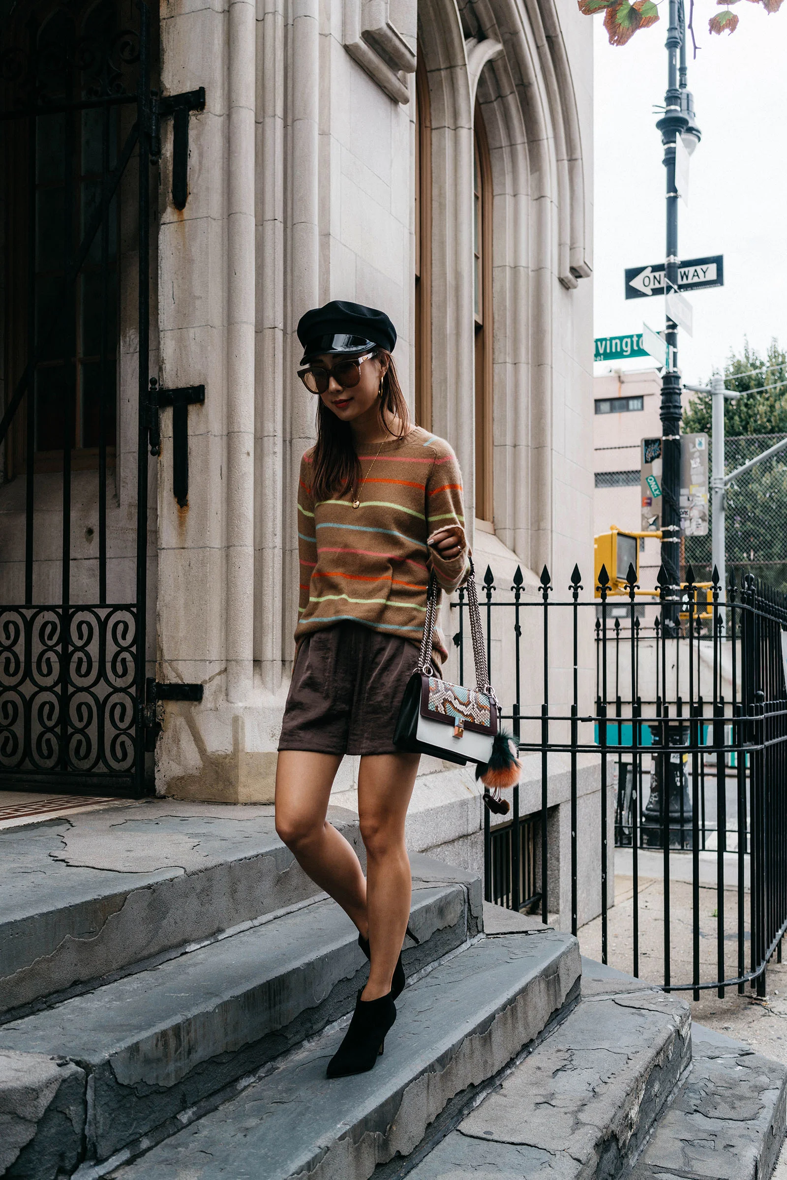 Sies Marjan Sweater, H&M Shorts, Yvonne Kone Boots, Fendi Bag and Keychain, Gentle Monster Sunglasses