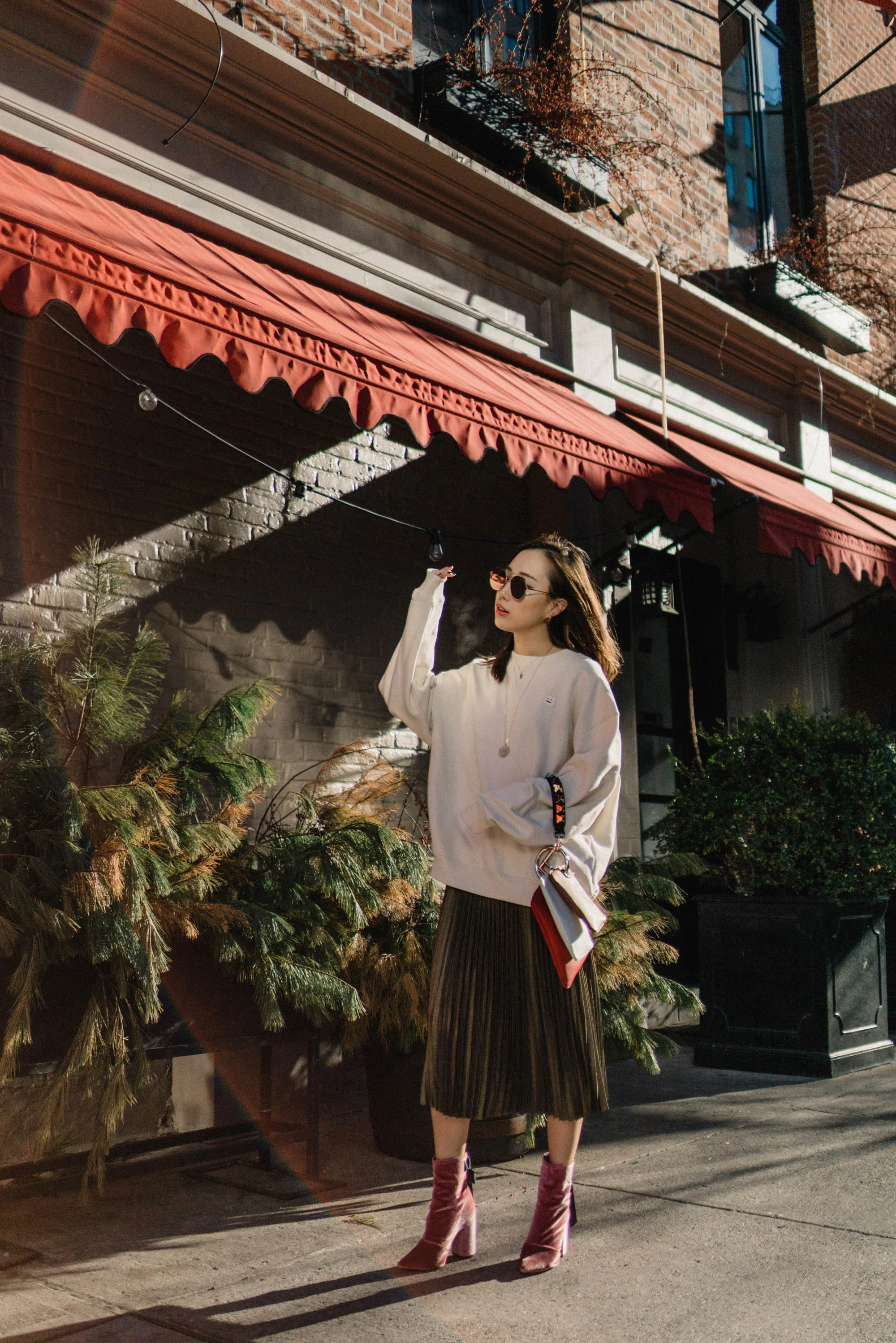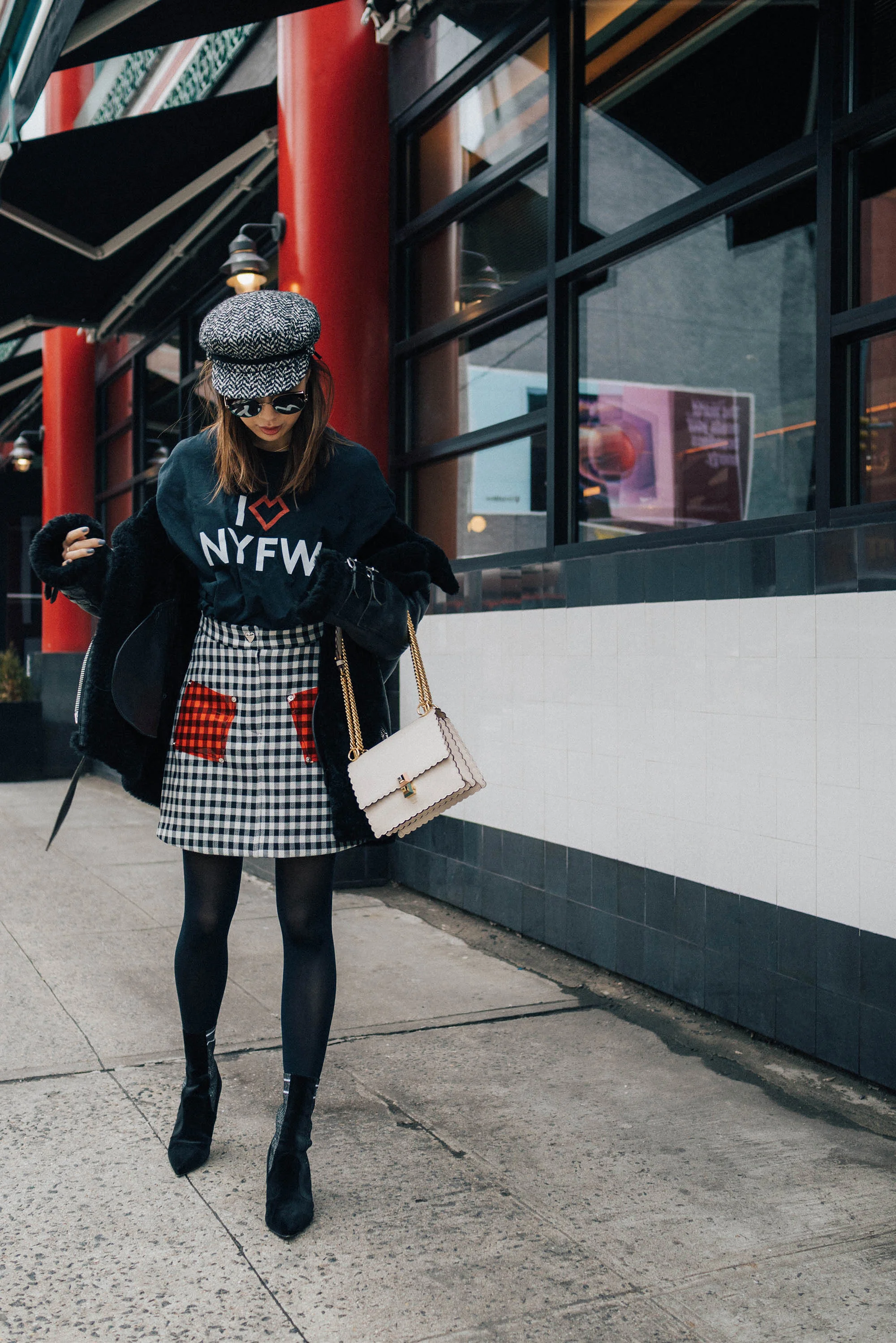 Acne Studios Sweatshirt, Sezane Skirt, Clergerie Boots, Fendi Bag, Fendi Sunglasses