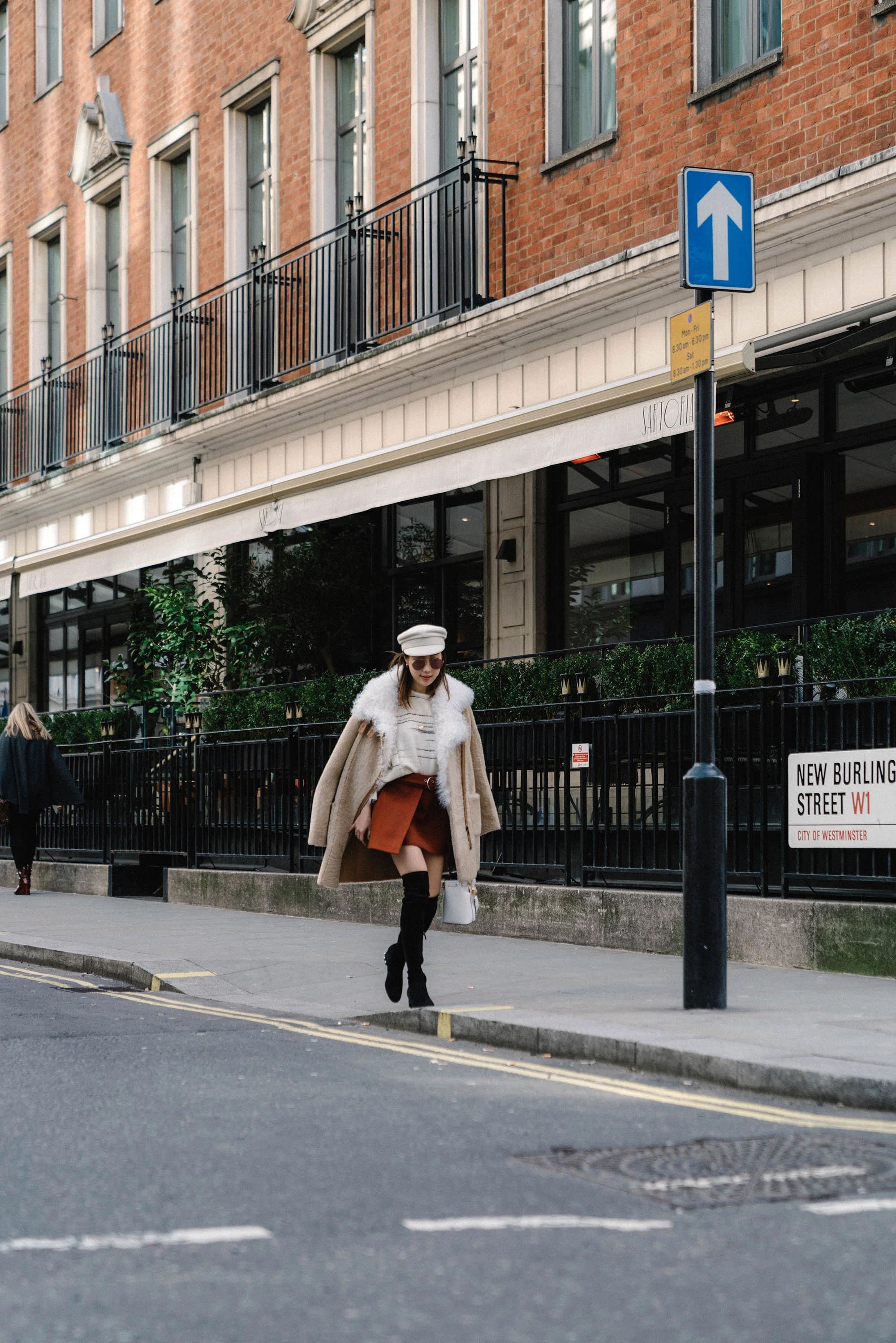 Ulla Johnson Coat, ba&sh Sweater, Petite Studio Skirt, Fendi Bag, Valentino Boots, Fendi Sunglasses, Ruslan Baginskiy Hat