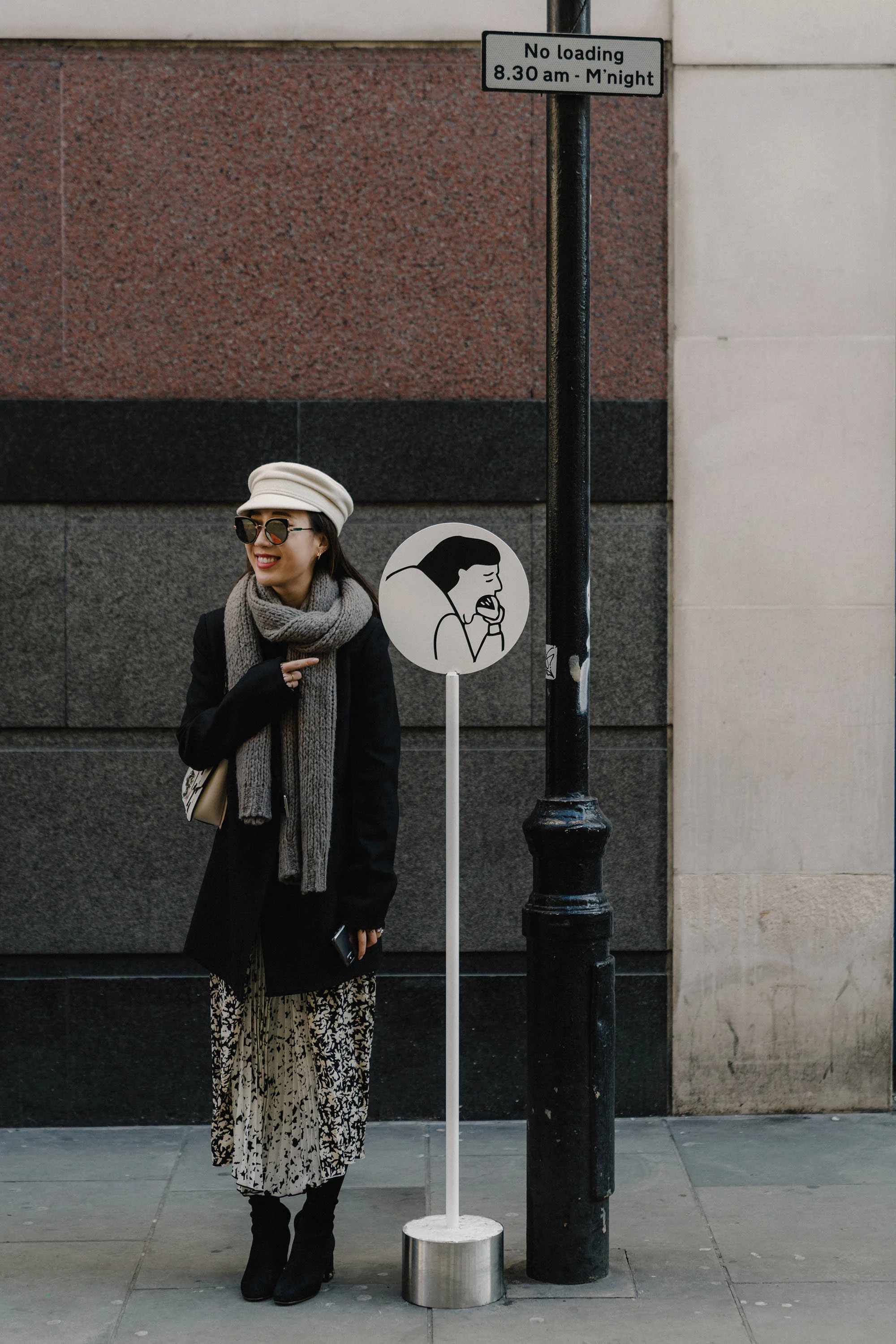 Yune Ho Sweater, COS Skirt, The Row Shoes, Givenchy Bag, Cartier Necklace, Celine Sunglasses, Maison Michel Hat