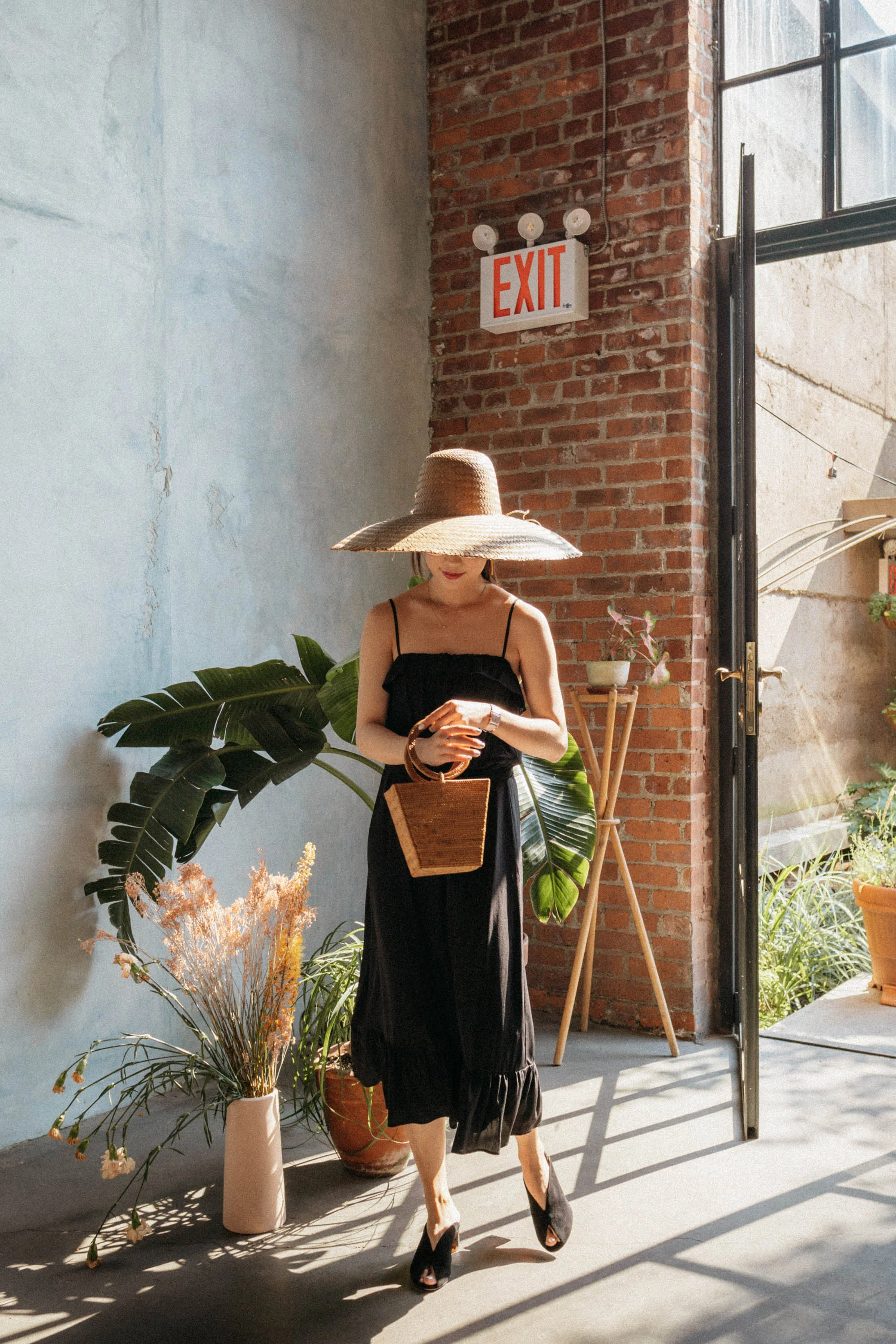 Reformation Dress, Derek Lam Shoes, Saint Laurent Bag, Loewe Hat
