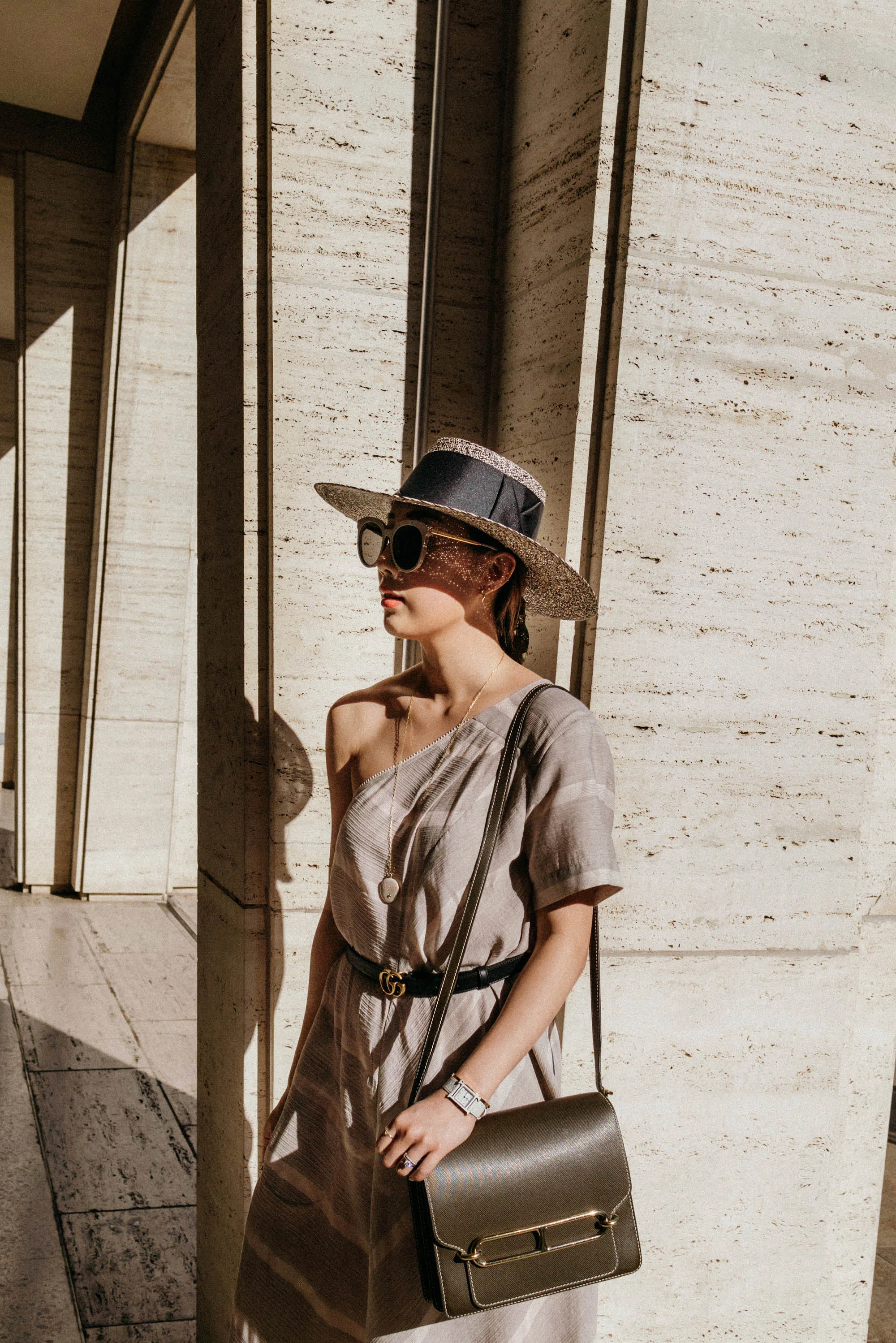 Przhonskaya Dress, Gucci Belt, Saint Laurent Shoes, Hermes Bag, Sensi Studio Hat, Gentle Monster Sunglasses, Hermes Watch, CVC Stones Necklace