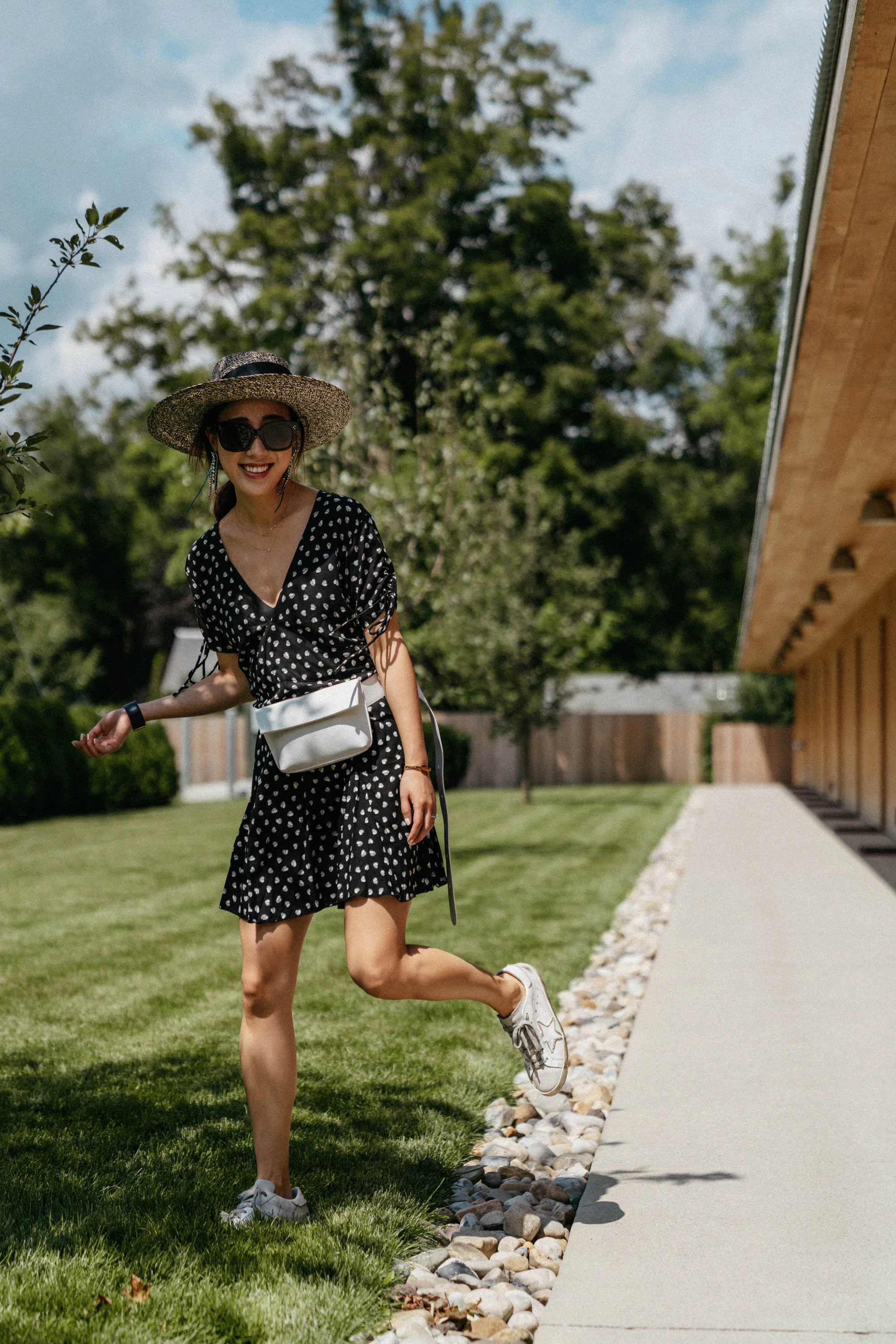 Petite Studio Dress, Golden Goose Sneakers, Yvonne Kone Bag, Sensi Studio Hat