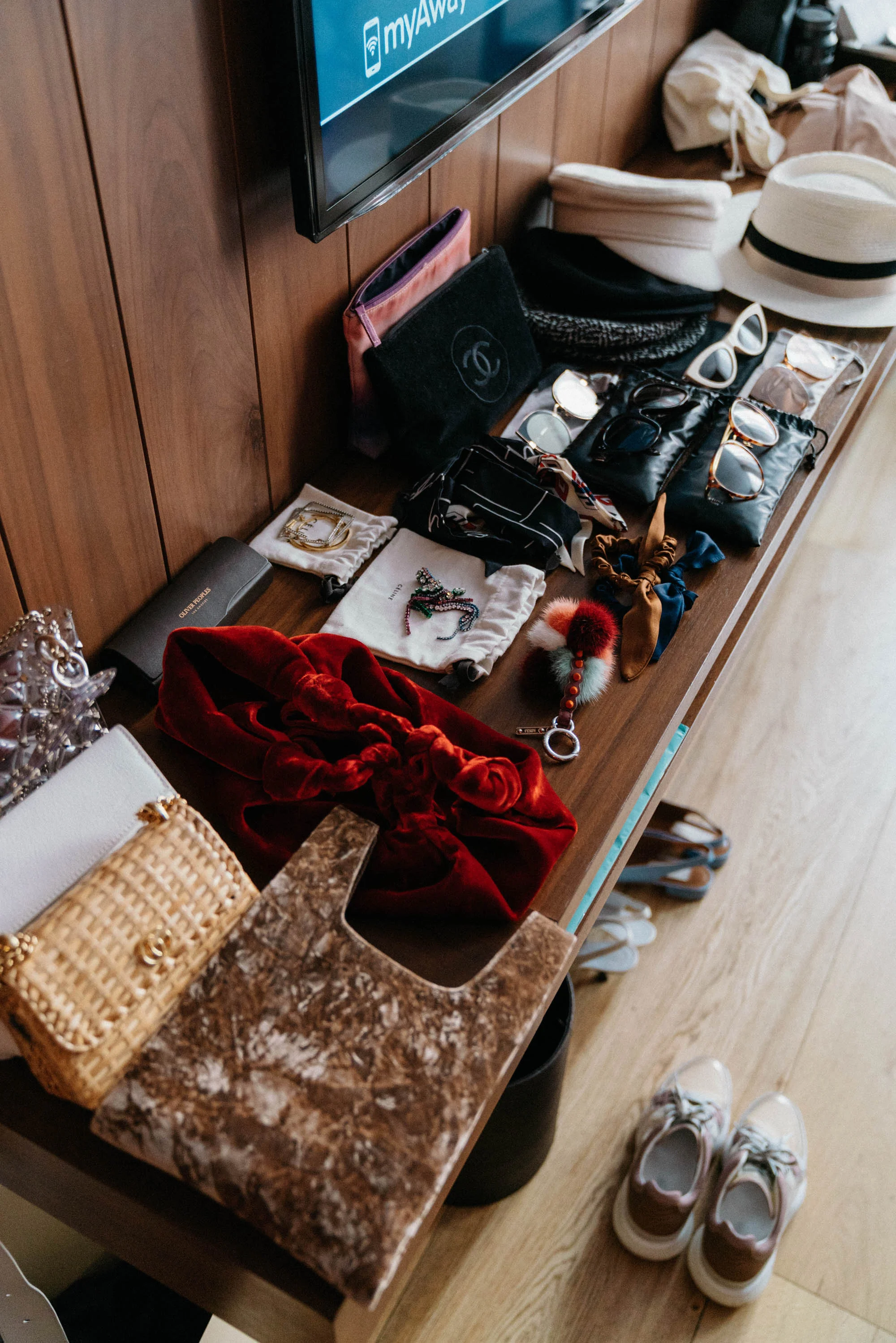 Doen Dress, The Row Shoes, Valentino Bag, Fendi Keychain, Celine Sunglasses, Area Earrings