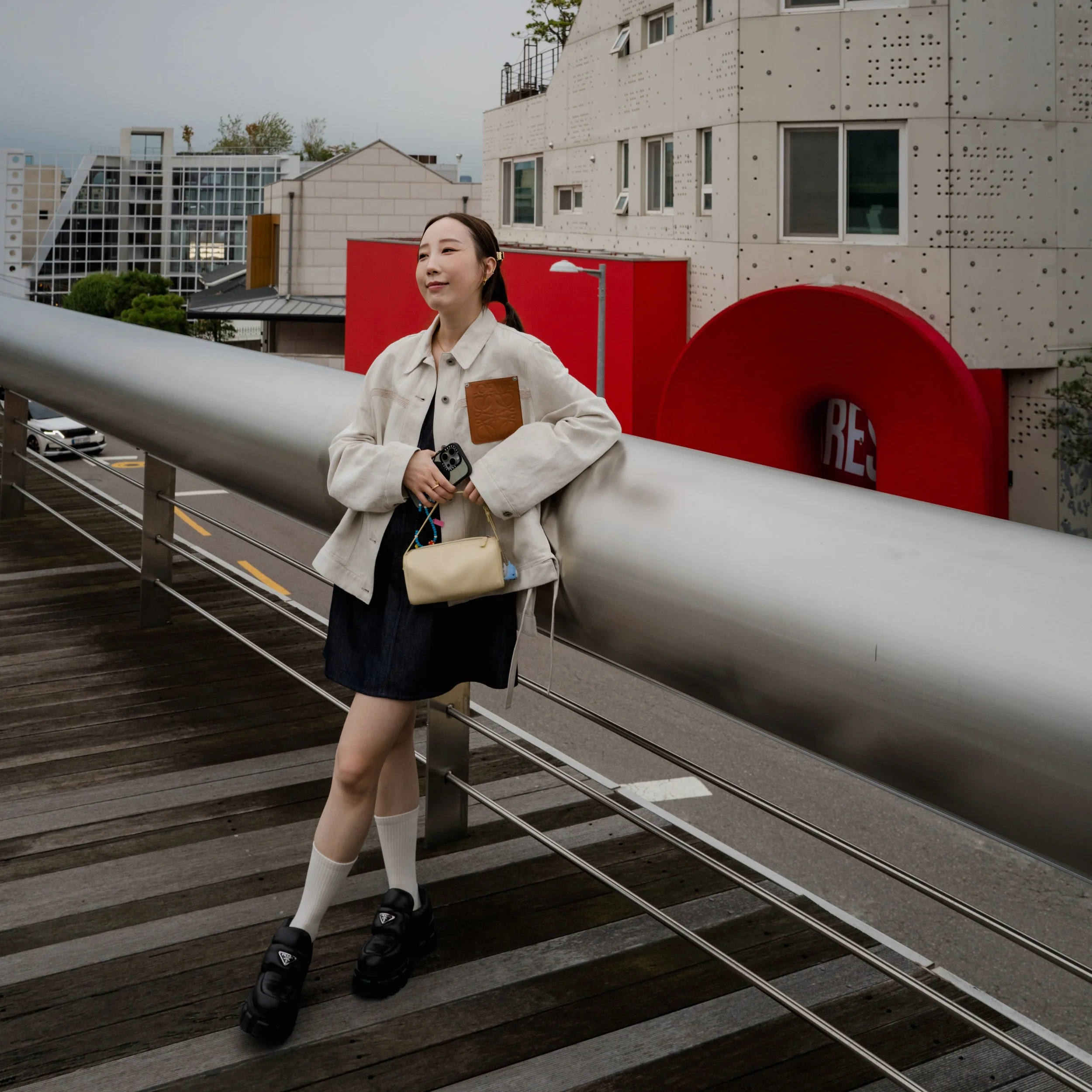 I love my Adidas Sambas for their style, versatility, and comfort. I always keep an eye out for special collections and collaborations, and I snagged this pair at Kith, which often has unique styles. The vintage look and the soft, malleable leather make these especially comfortable. I also added a little shoe accessory from the Korean brand Monday Edition to spice them up a bit!